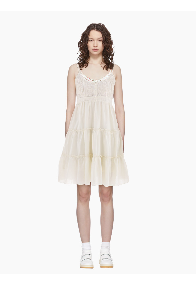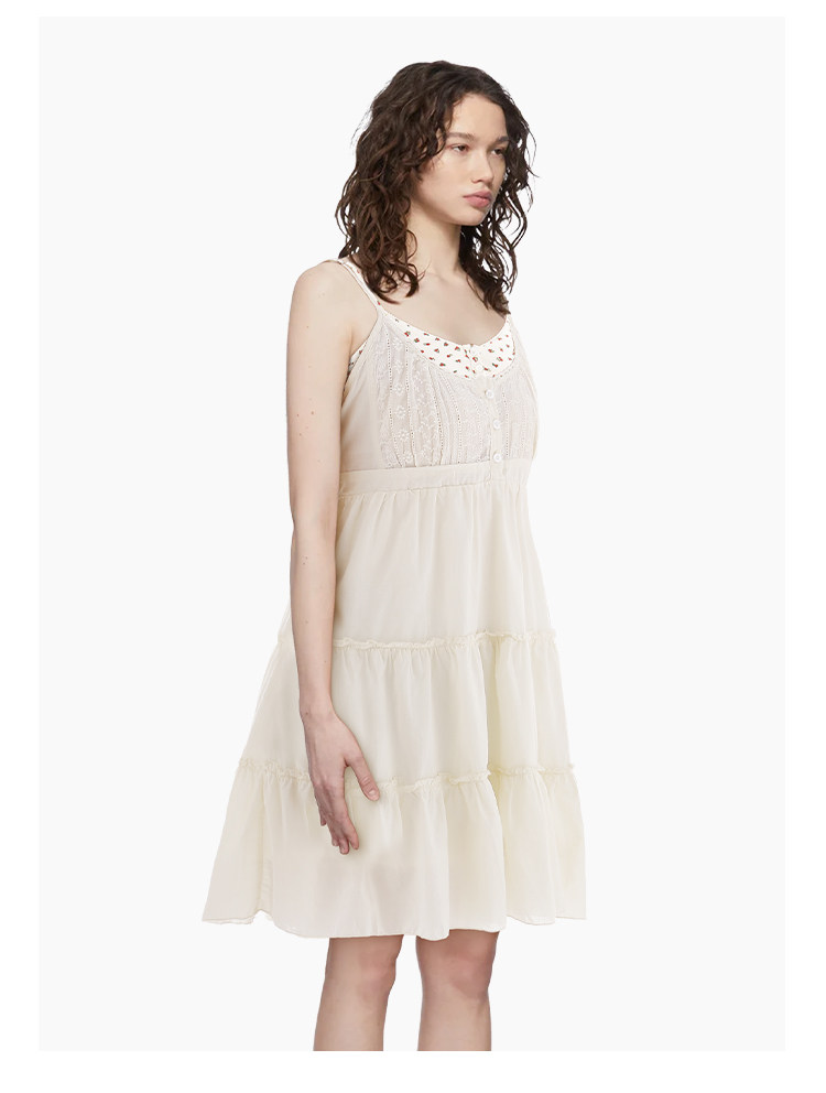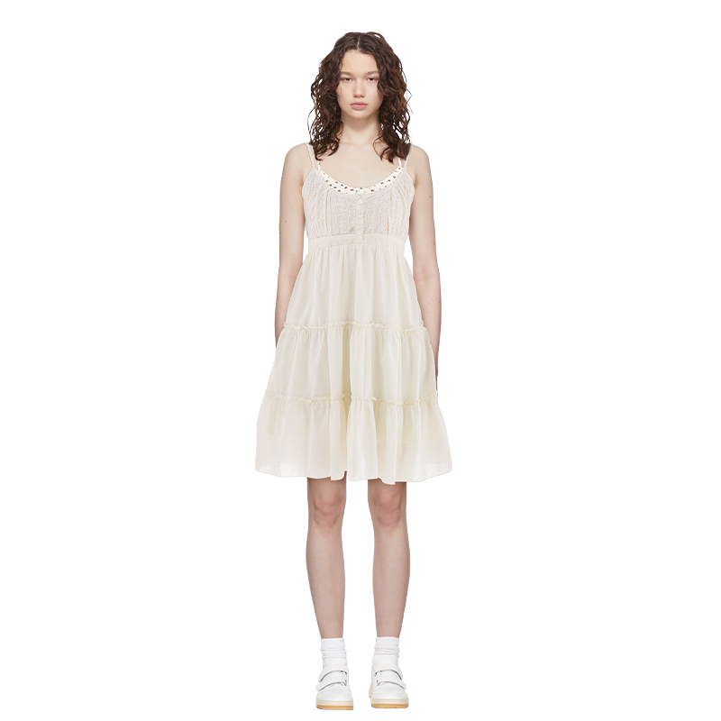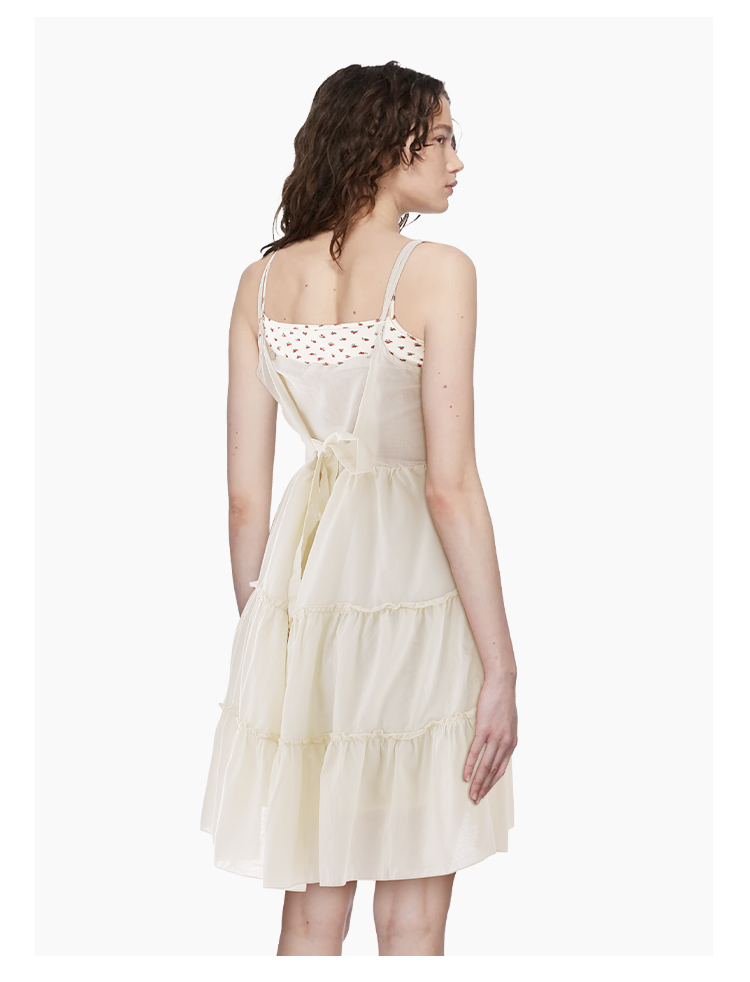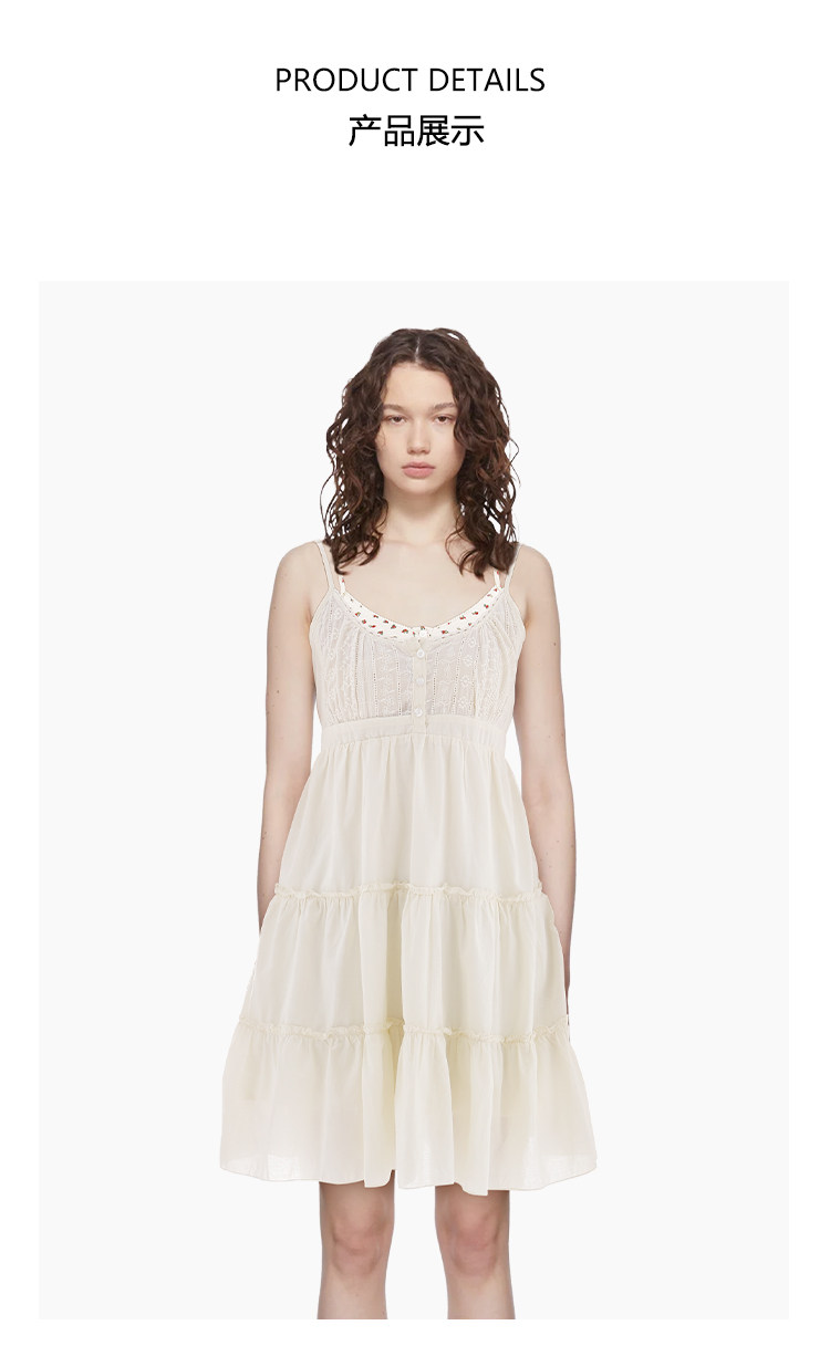 鞠婧禕BM吊帶裙白色2023新款少女風蛋糕裙子純欲風收腰顯瘦小個子
