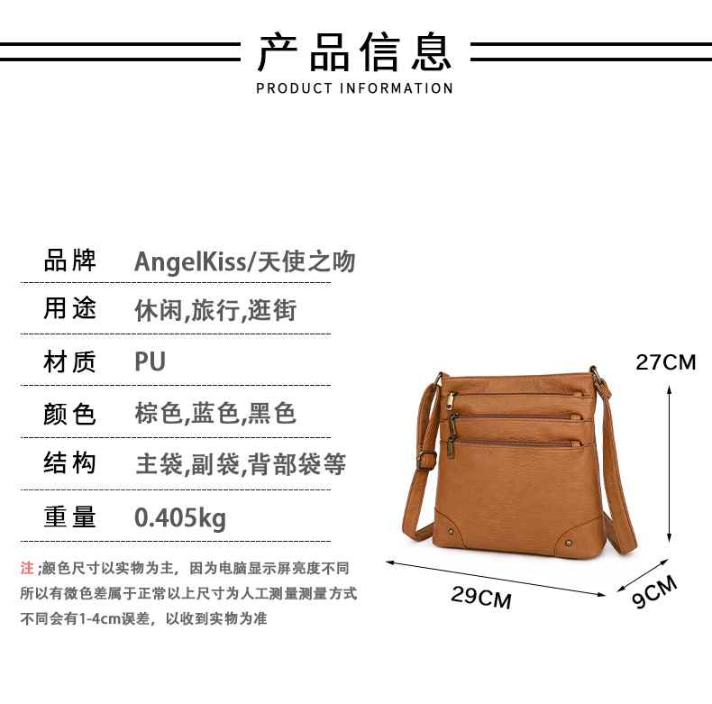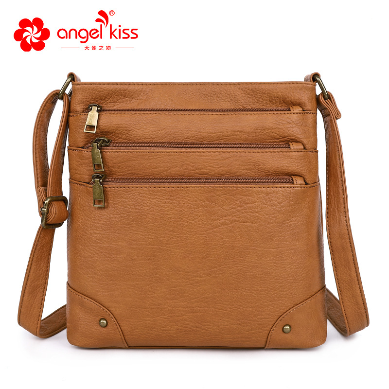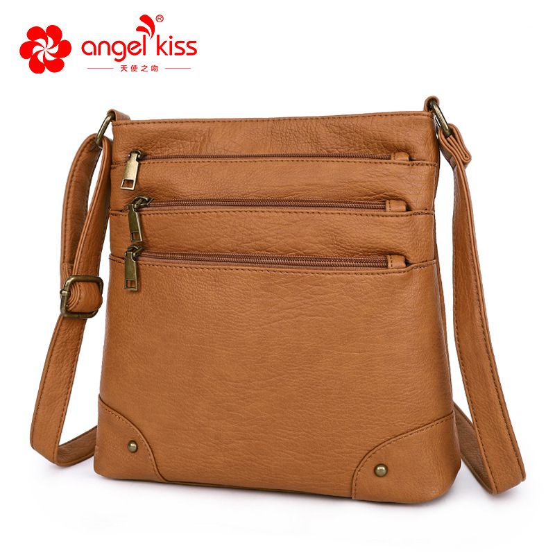 Angel kiss新款复古托特包女多口袋休闲零钱单肩包斜挎托特包批发