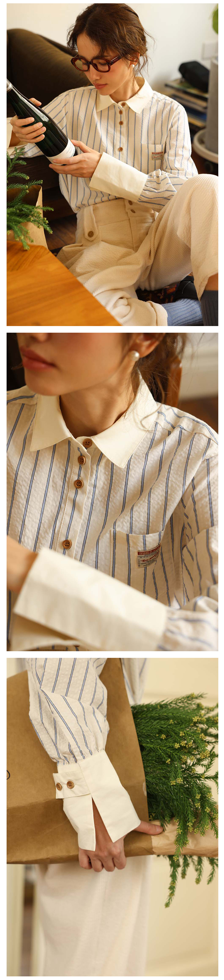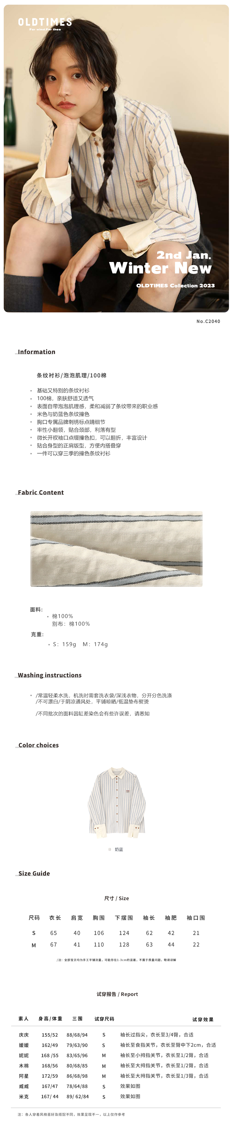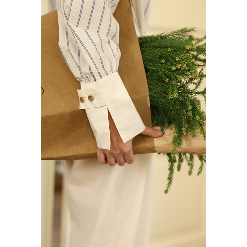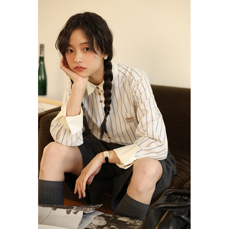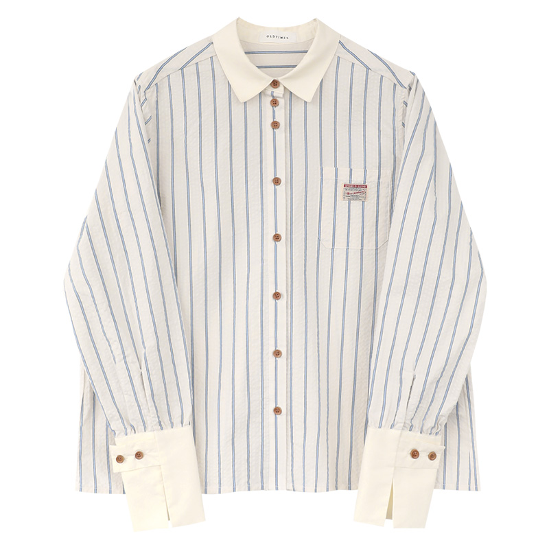 敘舊OLDTIMES 氣泡肌理感100棉撞色條紋襯衫【旭日海鷗】C2040