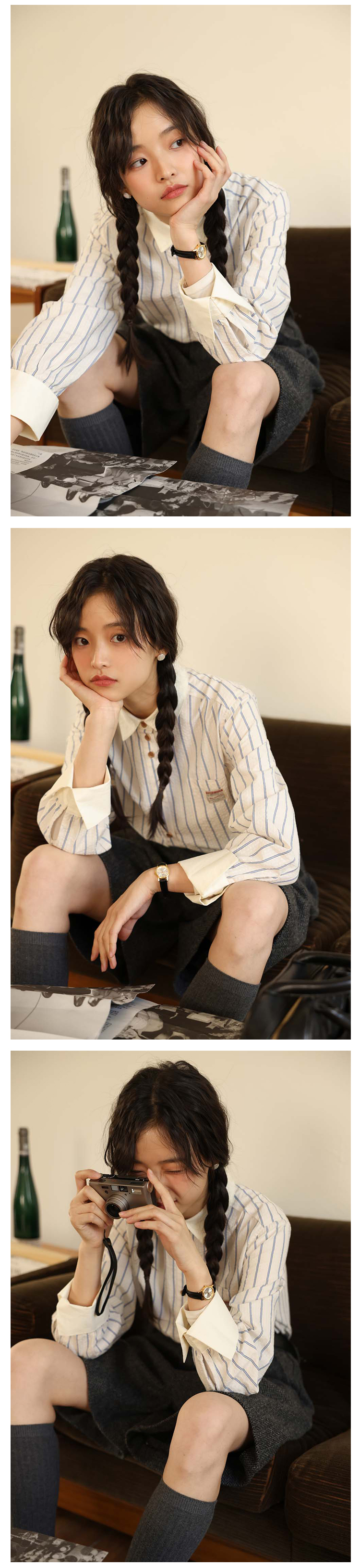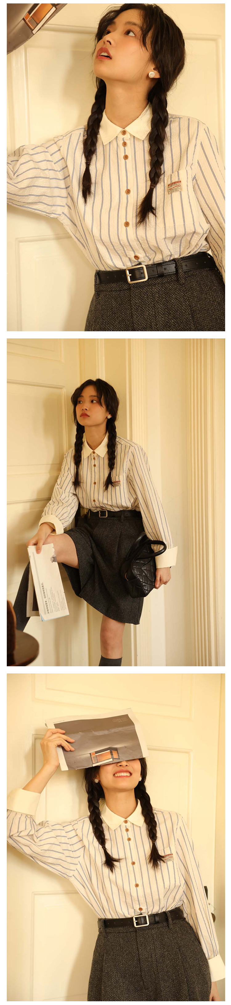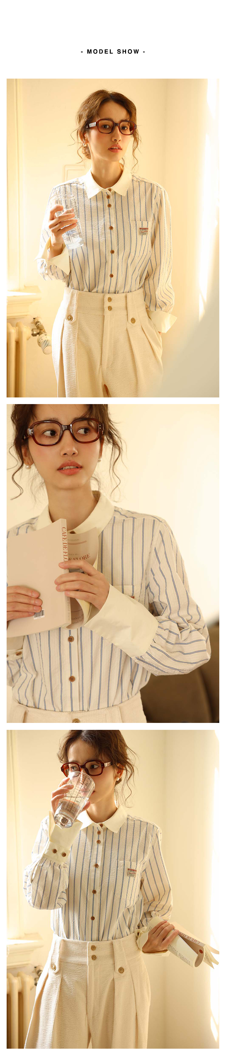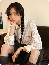 敘舊OLDTIMES 氣泡肌理感100棉撞色條紋襯衫【旭日海鷗】C2040