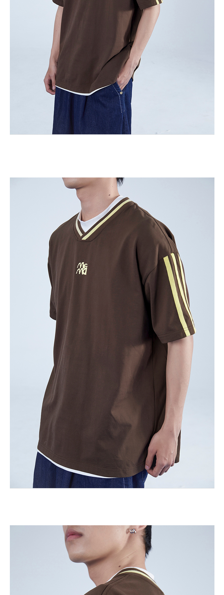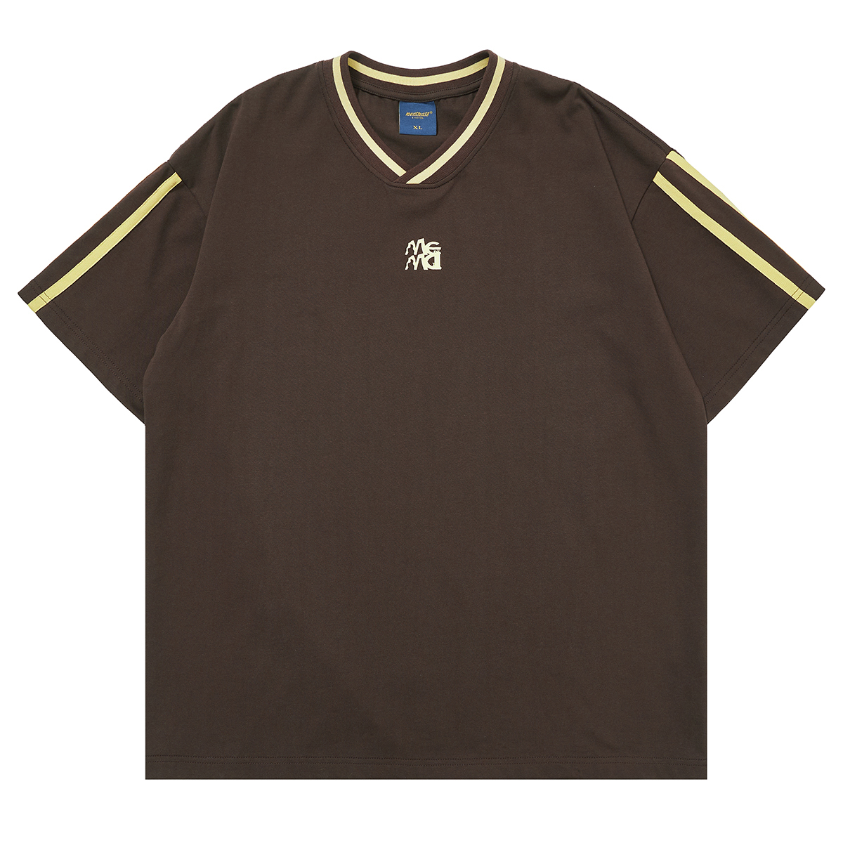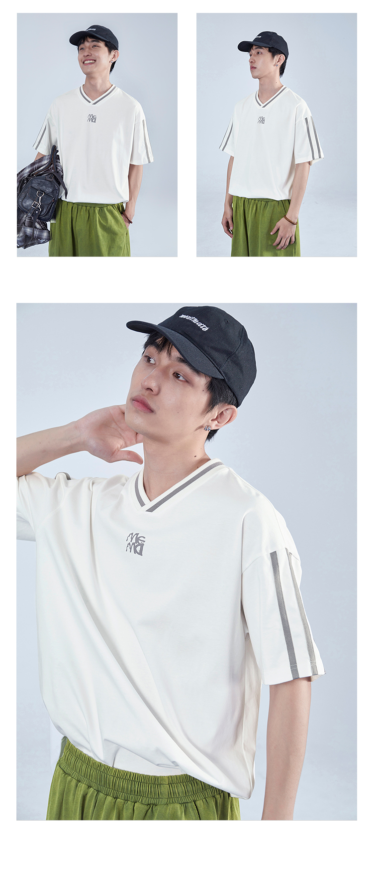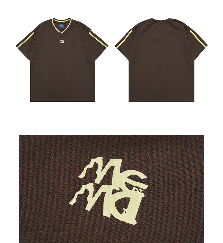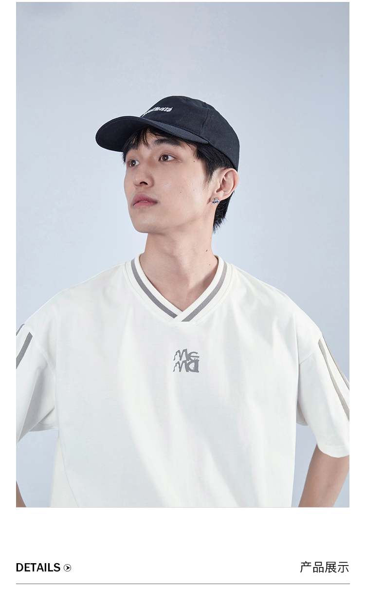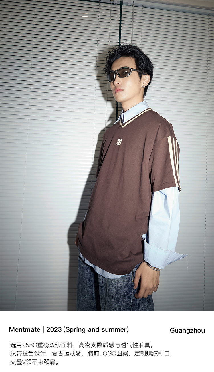 Mentmate 23SS 運動學院風條紋插肩袖V領短袖男 夏季百搭復古T恤
