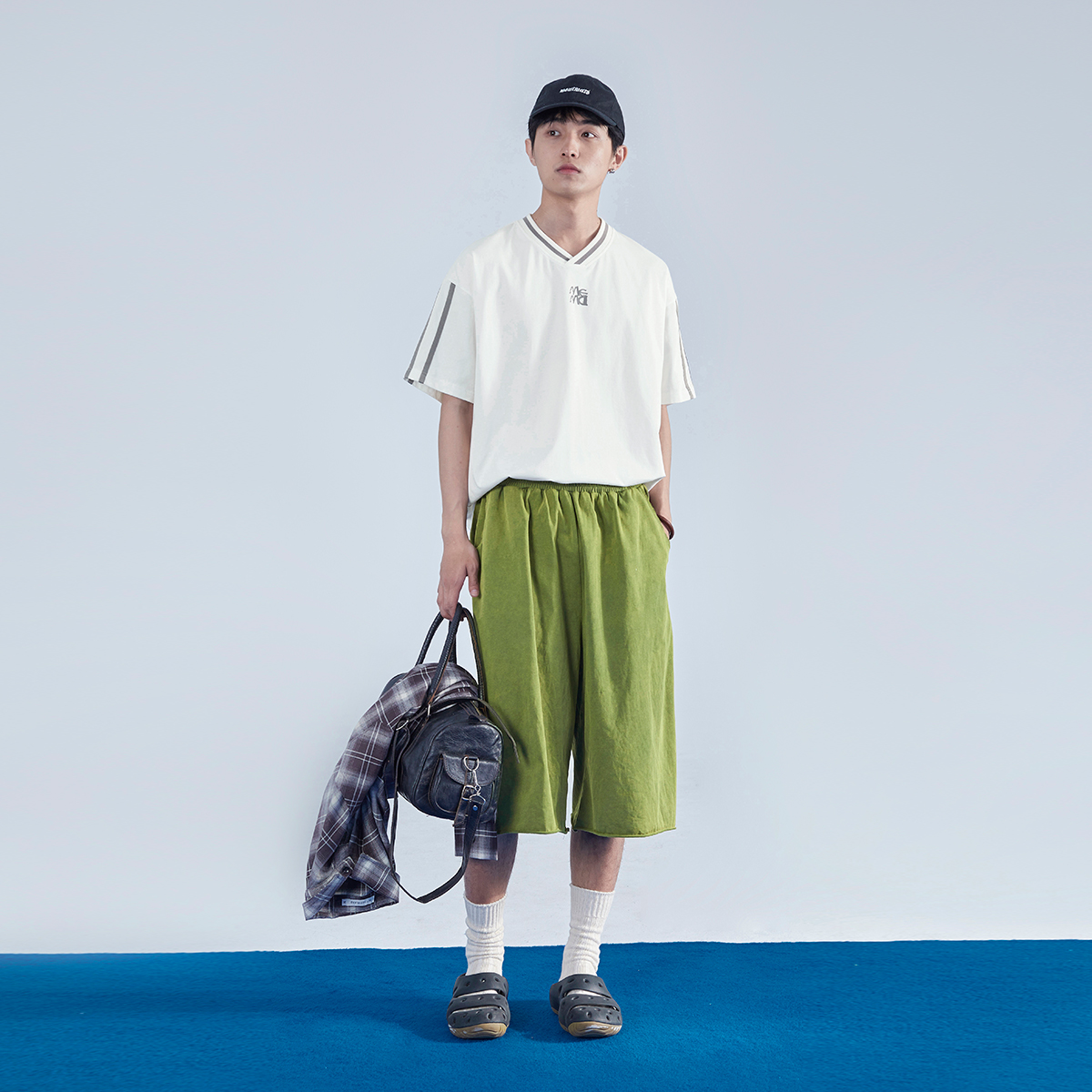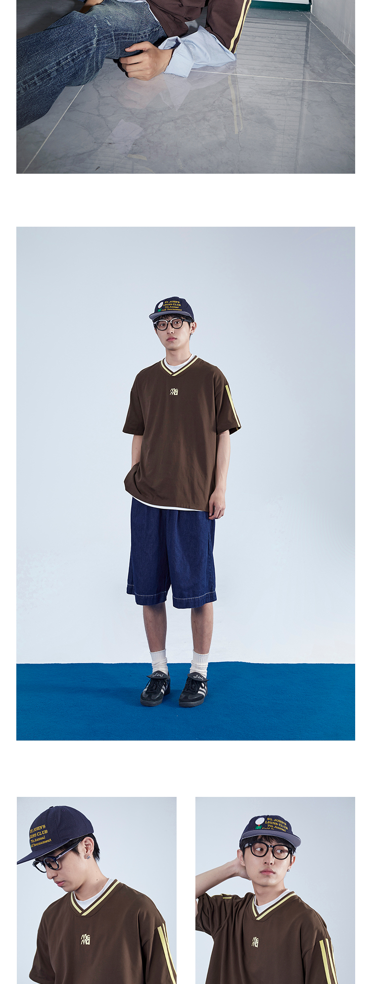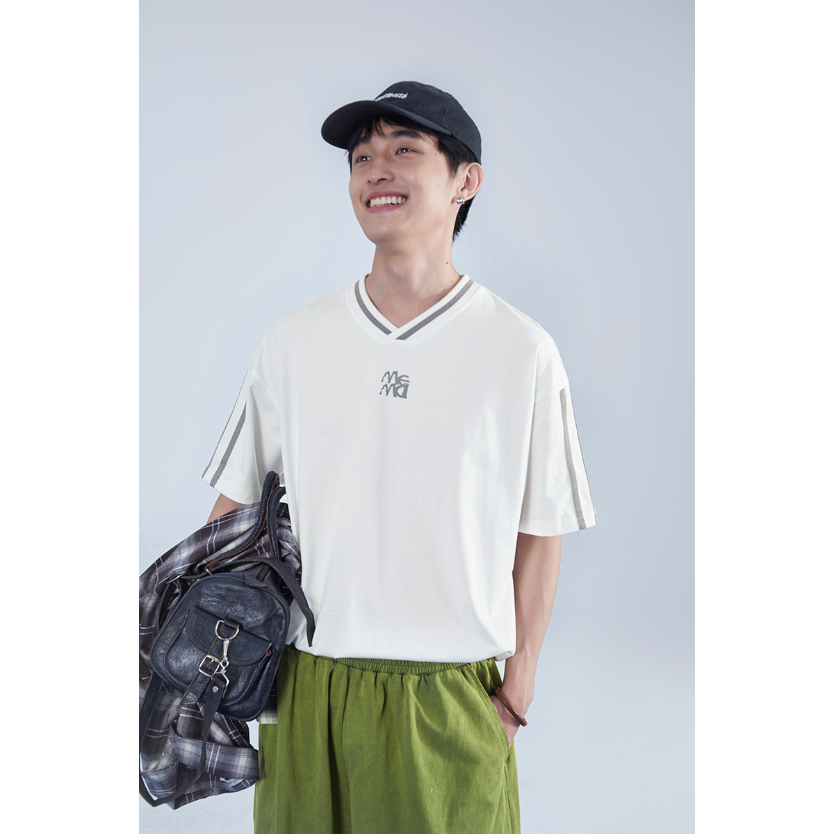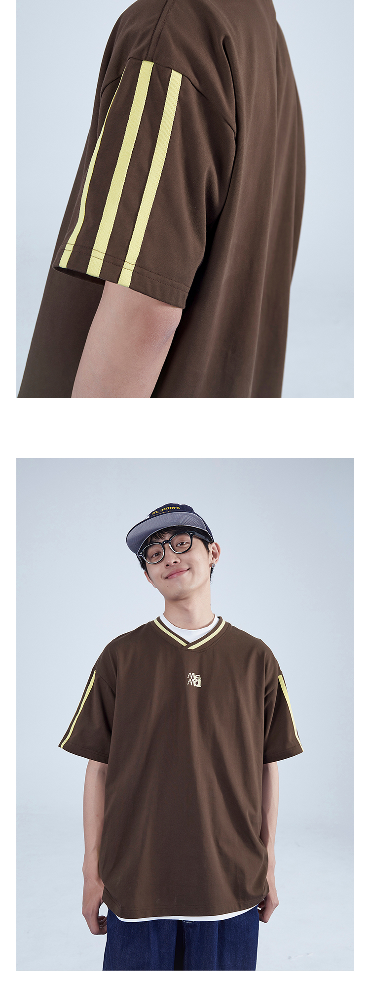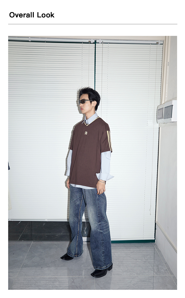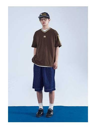 Mentmate 23SS 運動學院風條紋插肩袖V領短袖男 夏季百搭復古T恤