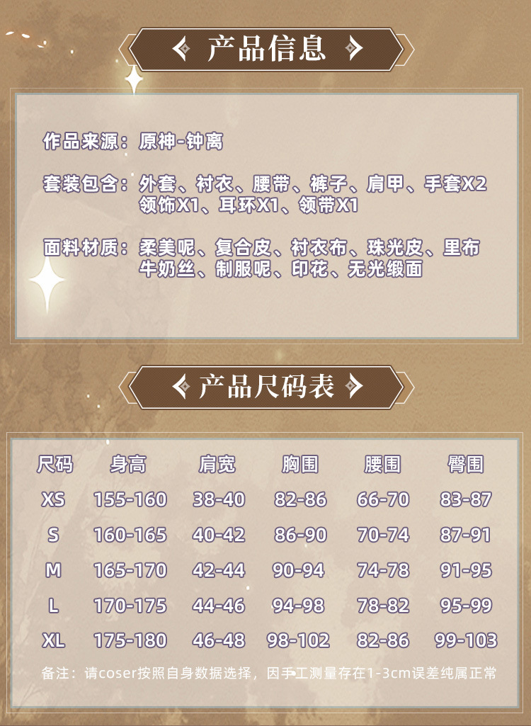 点雅Genshin原神cos钟离cos服游戏动漫套装cosplay服装男C服全套