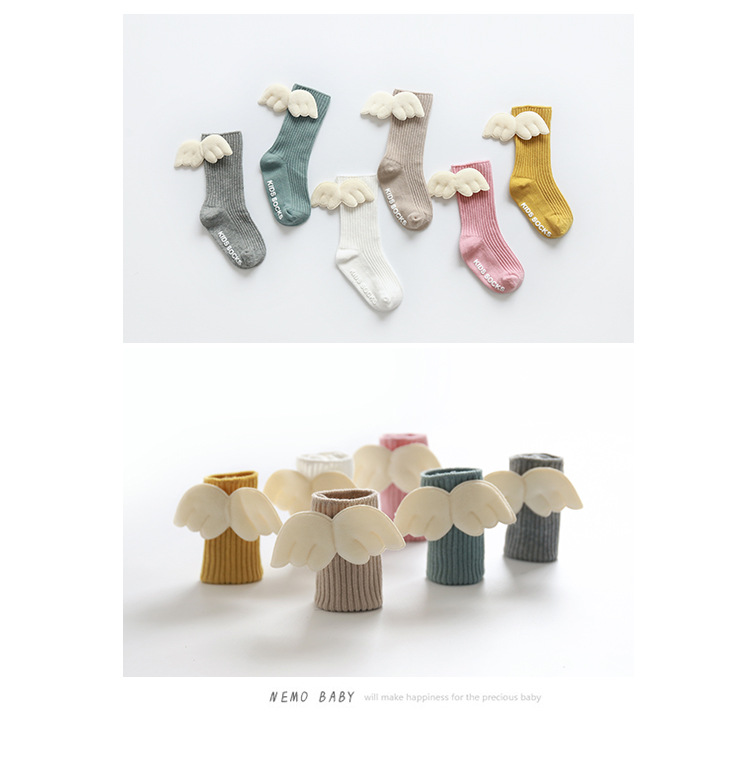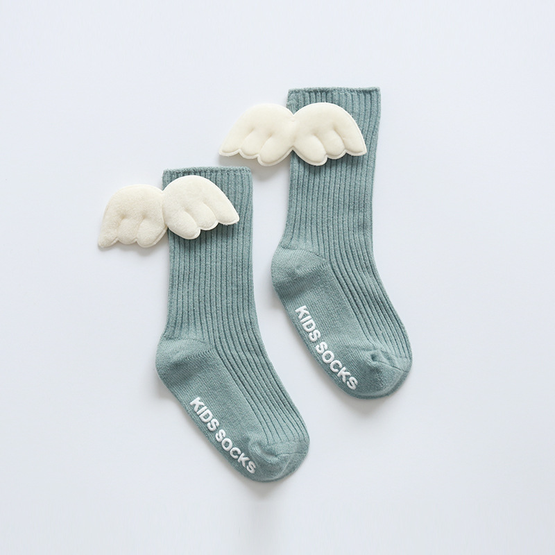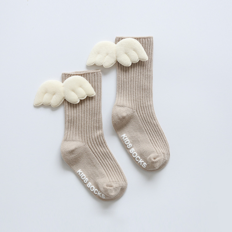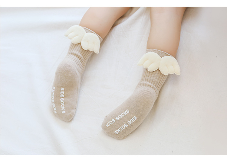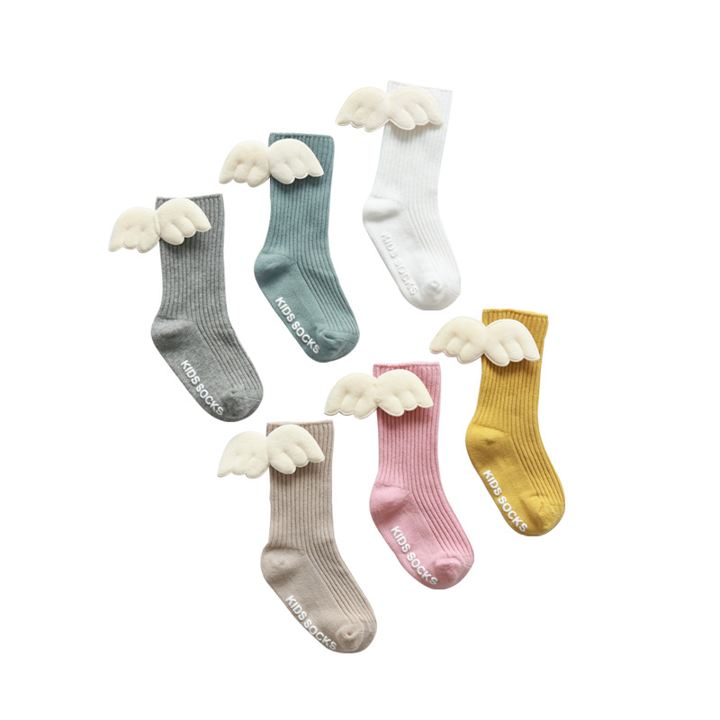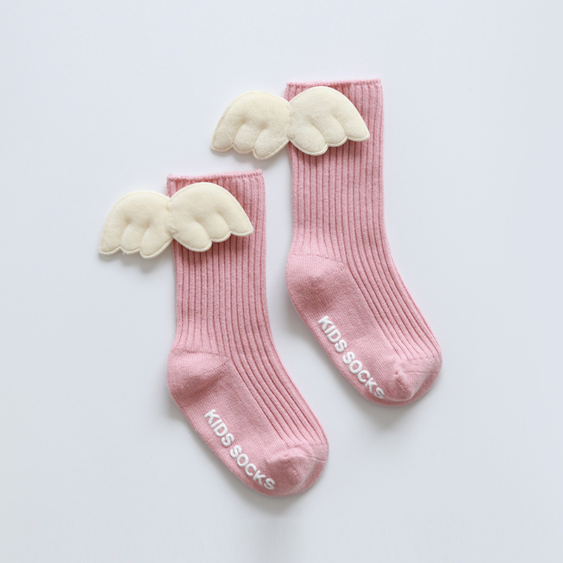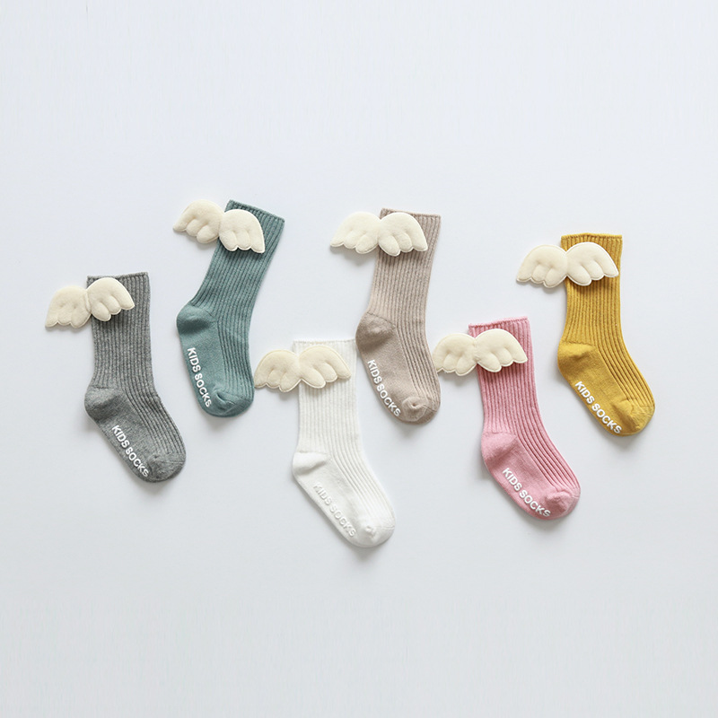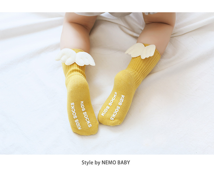 儿童袜子春秋韩版男女童中筒潮袜翅膀堆堆袜宝宝防滑地板袜学步袜
