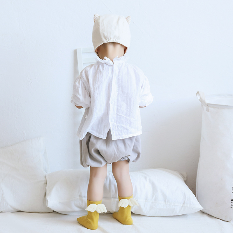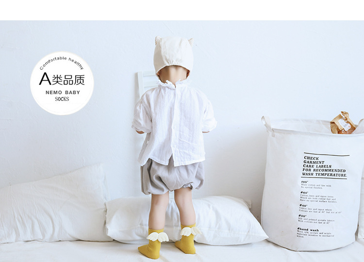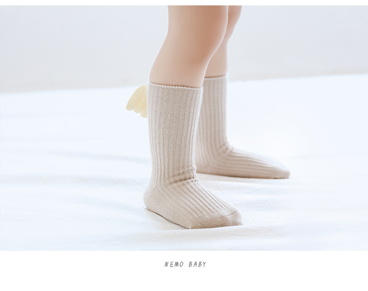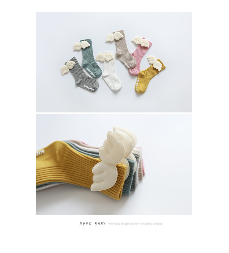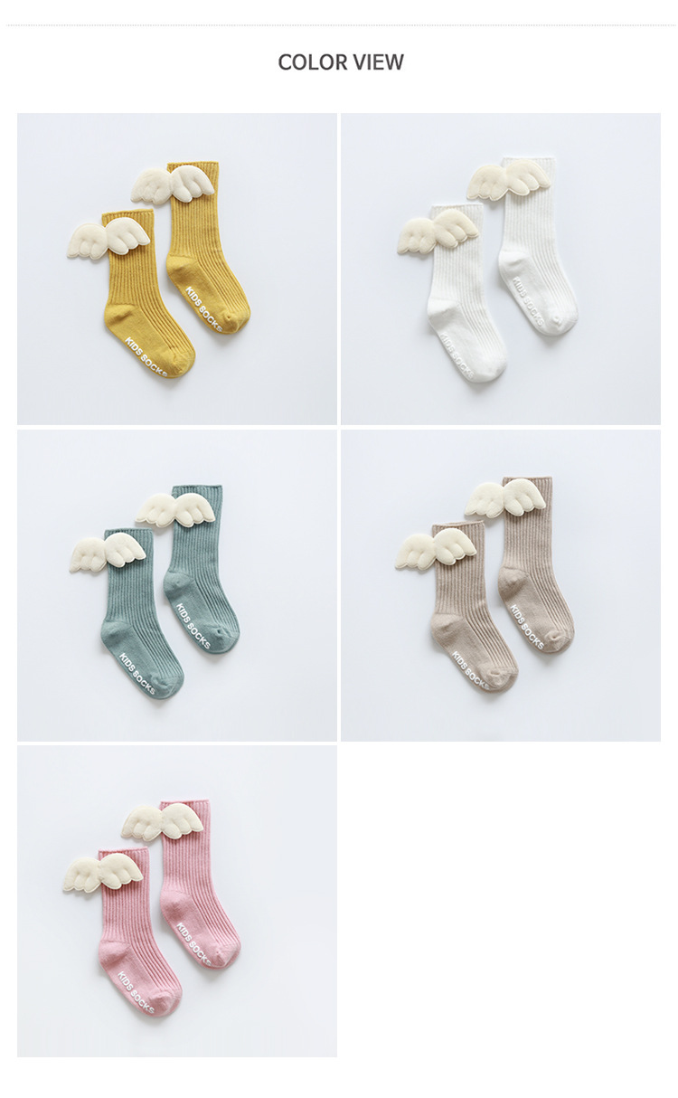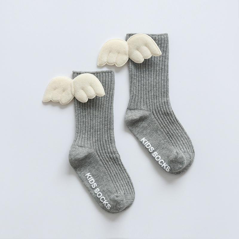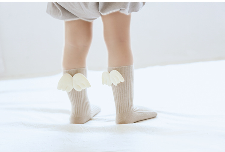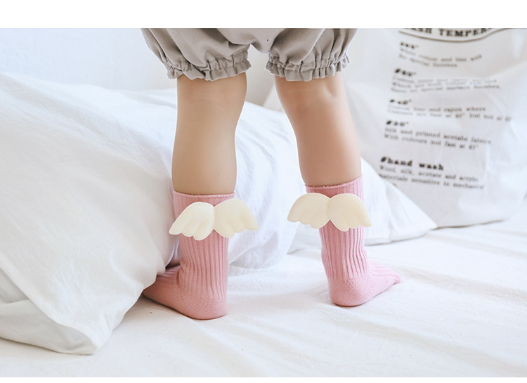 儿童袜子春秋韩版男女童中筒潮袜翅膀堆堆袜宝宝防滑地板袜学步袜