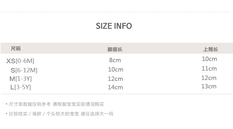 童袜尺码 XS 0-6个月,S 6-12个月,M 1-3岁,L 3-5岁