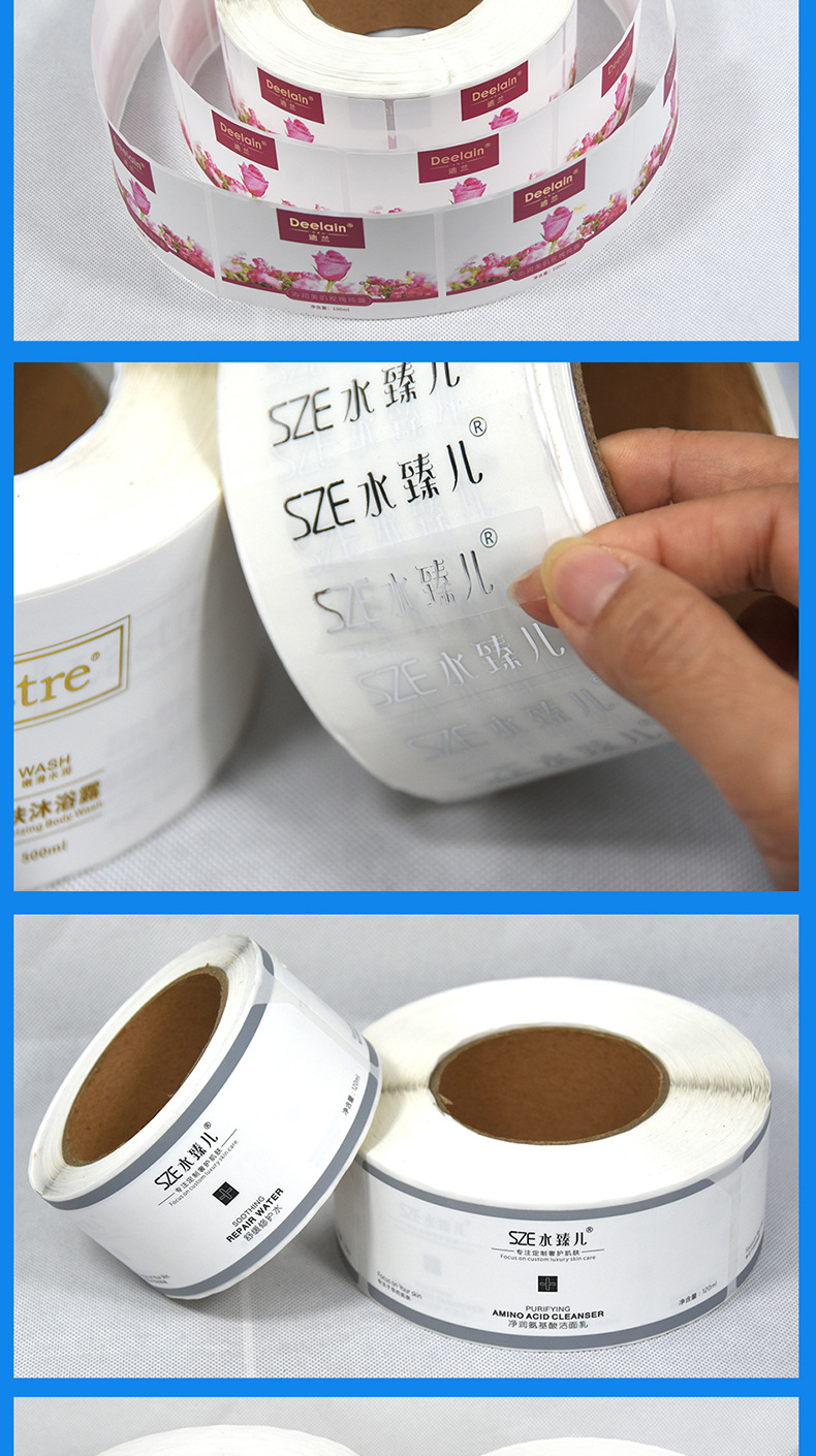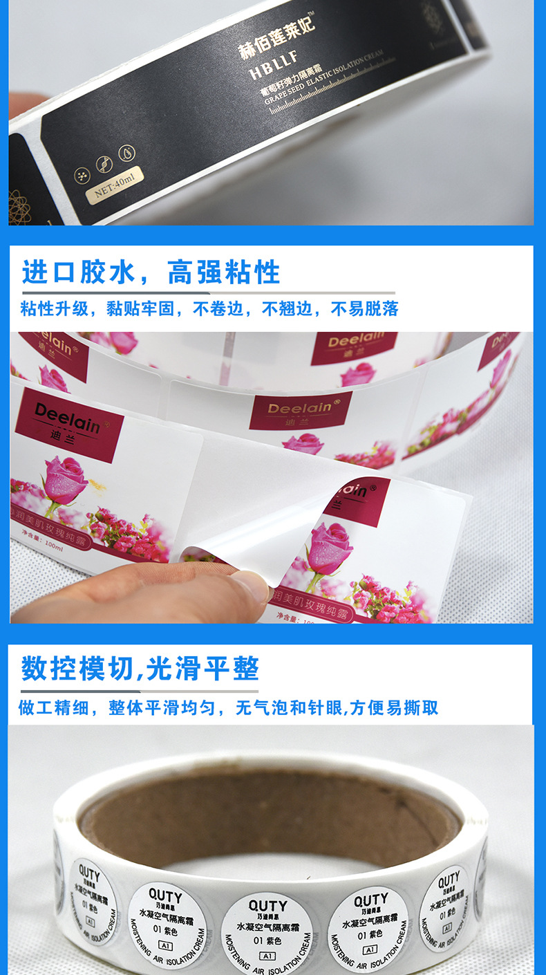 广告LOGO小贴纸印刷透明PVC化妆品标签贴纸镜面铜版纸不干胶标签
