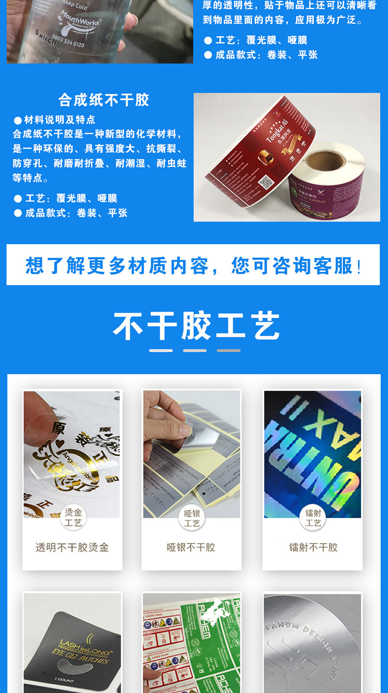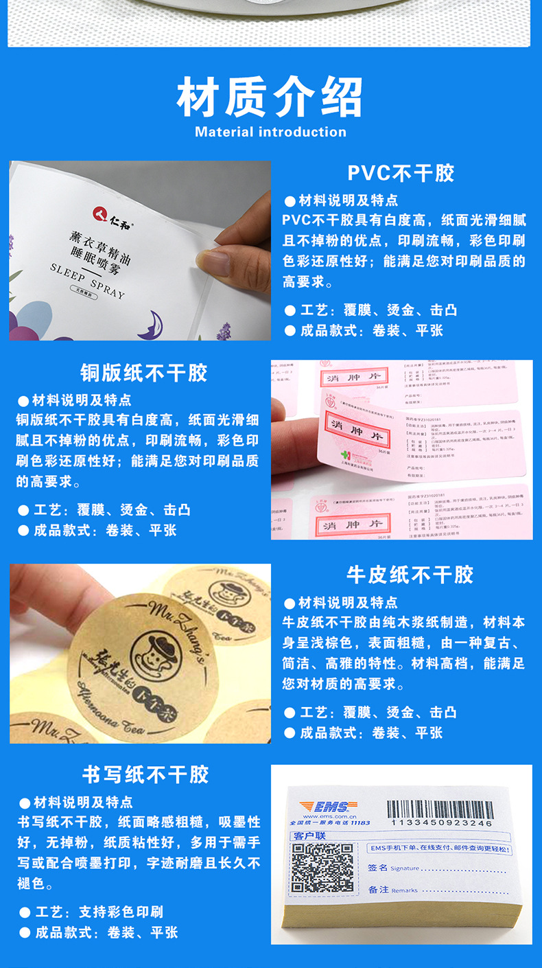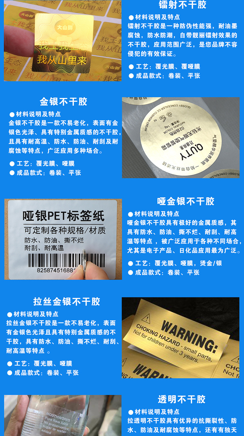 材质 PVC不干胶,镜面不干胶,铜板不干胶