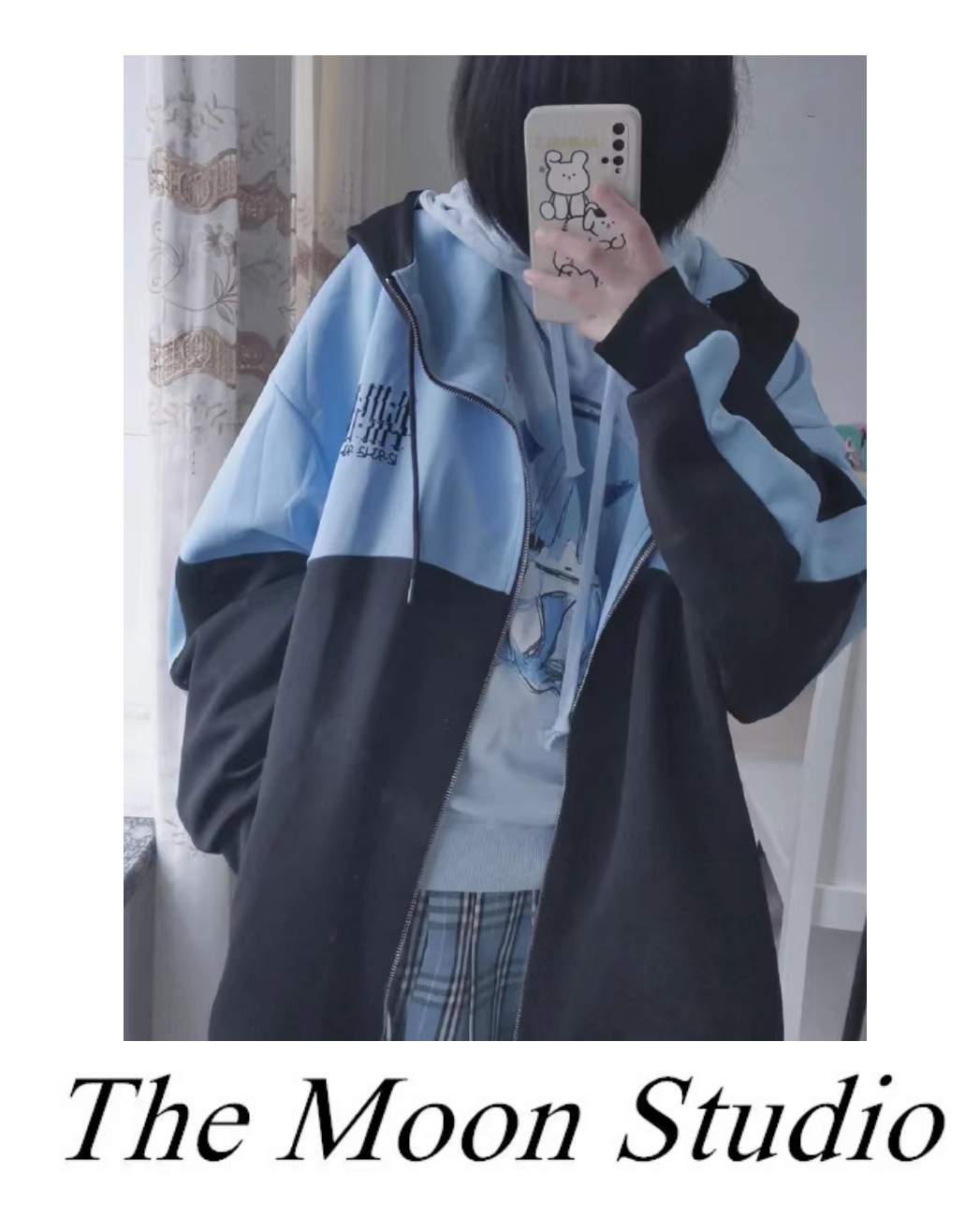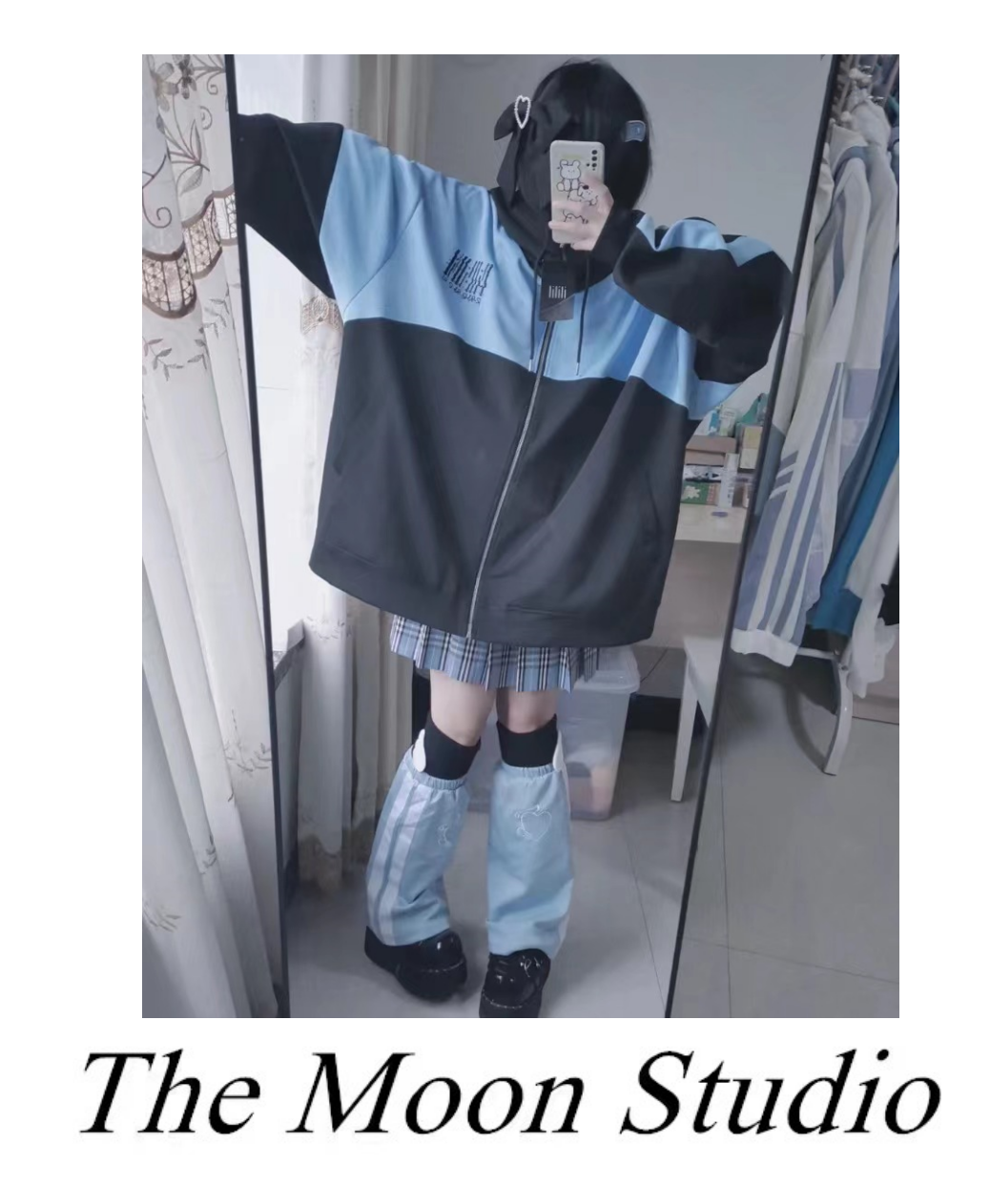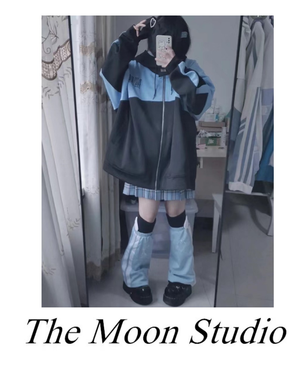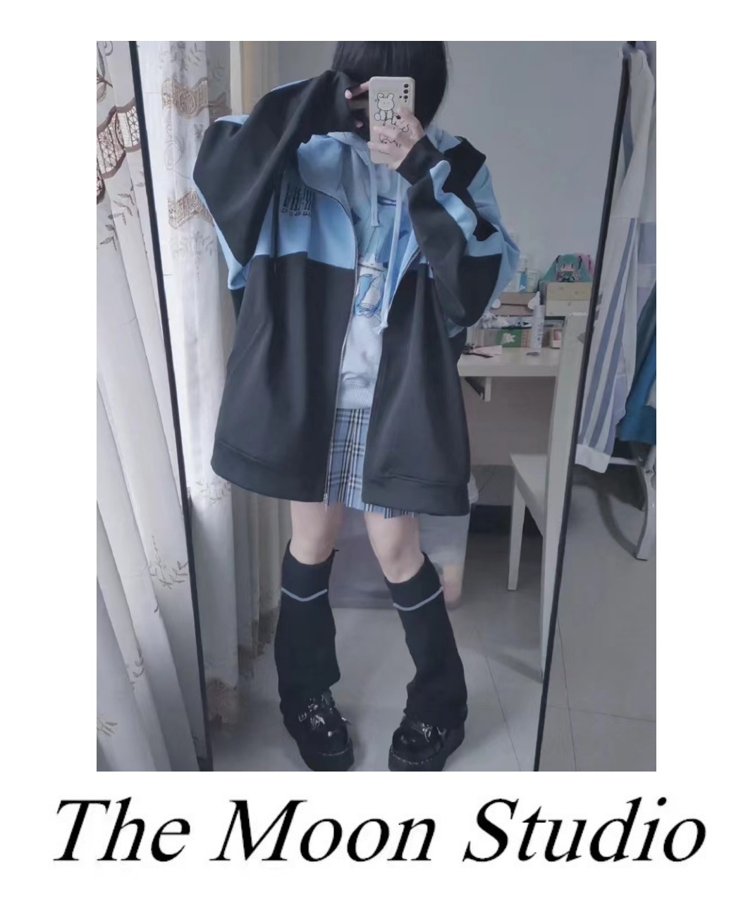 亞文化朋克藍色地雷系運動風拉鍊連帽運動衫女Y2K千禧寬鬆外套軟妹