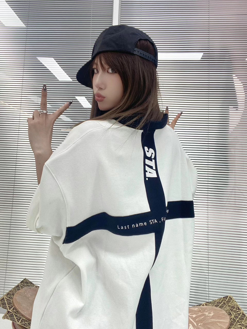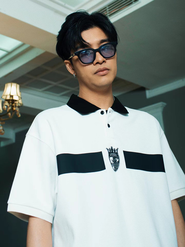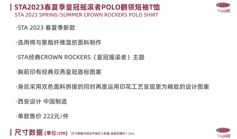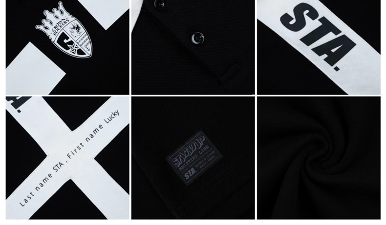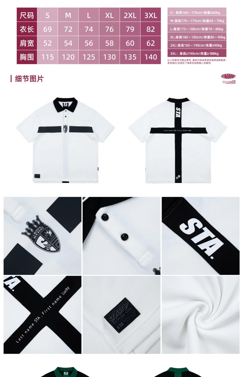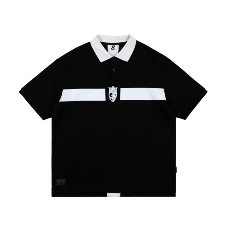 國潮STA2023春夏季皇冠搖滾者寬鬆休閒印花拼接POLO杉翻領短袖T恤