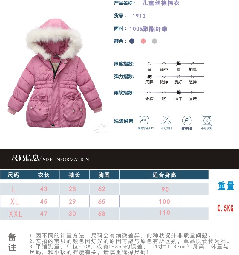跨境外贸 2023新款儿童棉衣女童加厚外套 1912