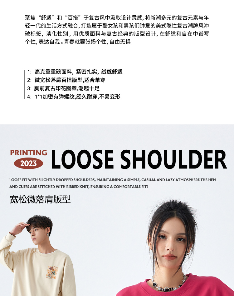 加絨情侶厚T恤特別的2023新款高級感冬款復古情侶裝秋冬款國潮小眾