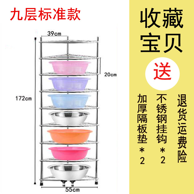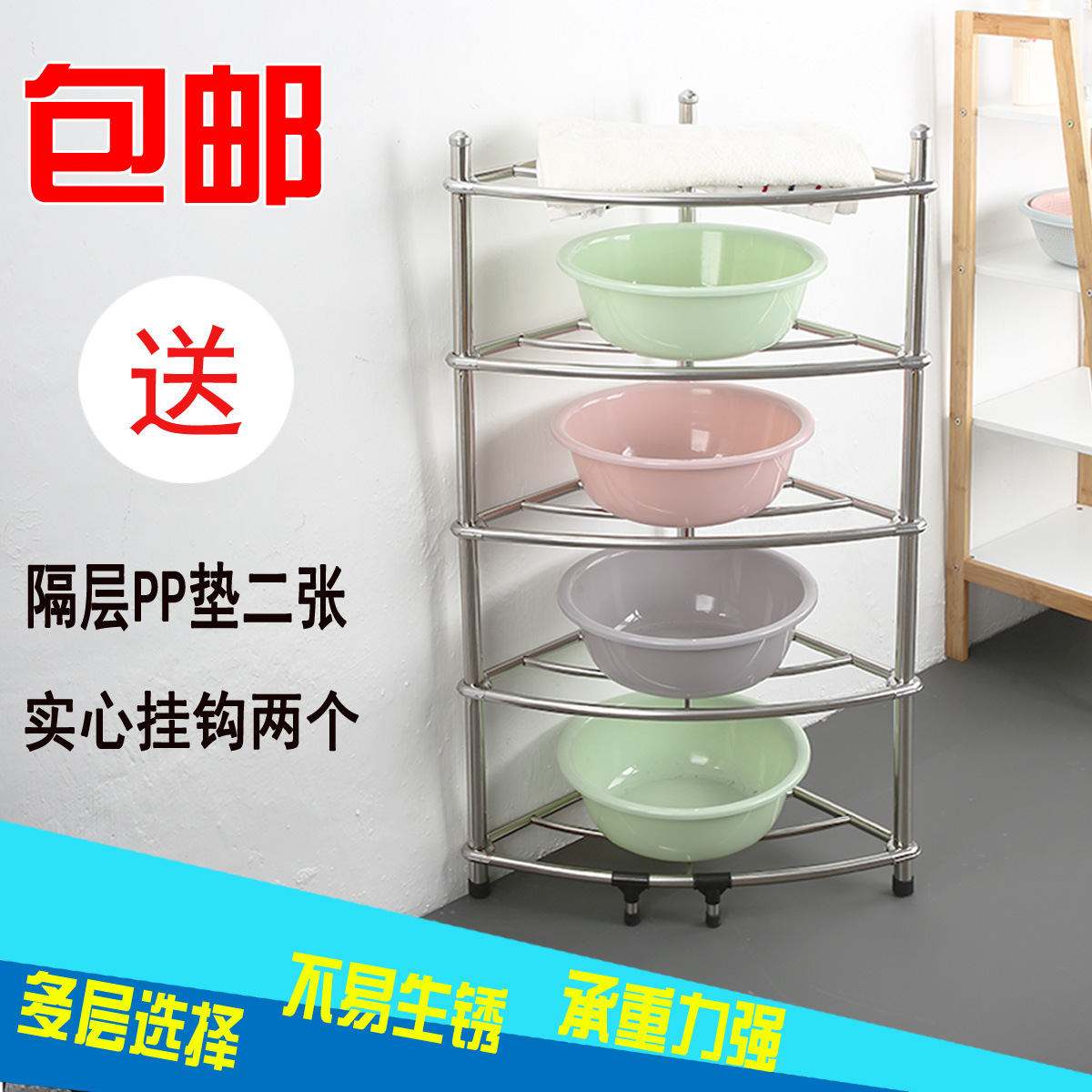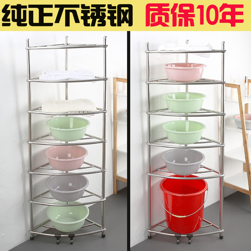 304加厚多层不锈钢洗脸盆架子三角架厨房卫生间落地置物架面盆架