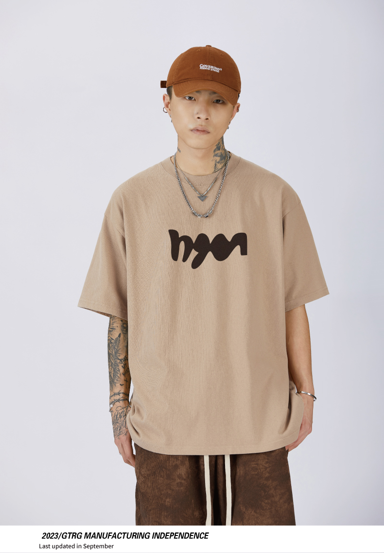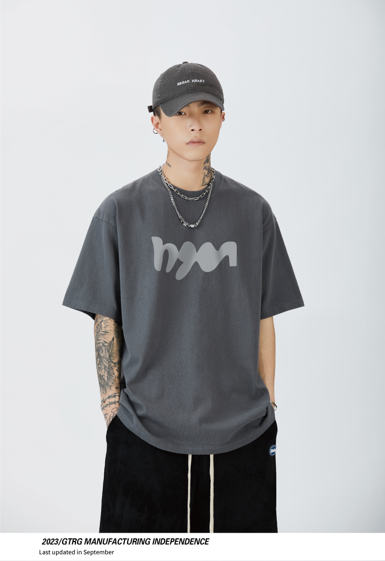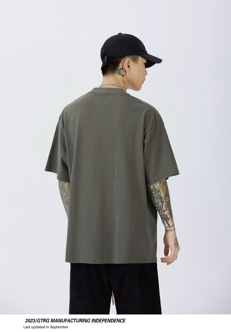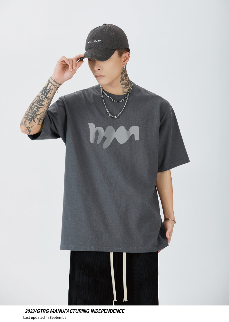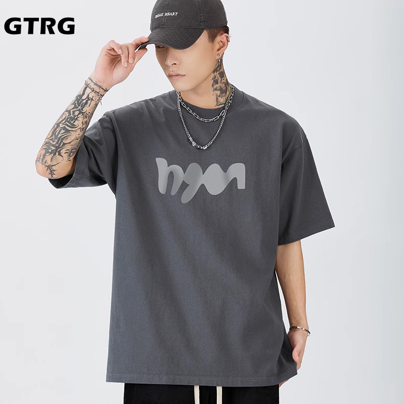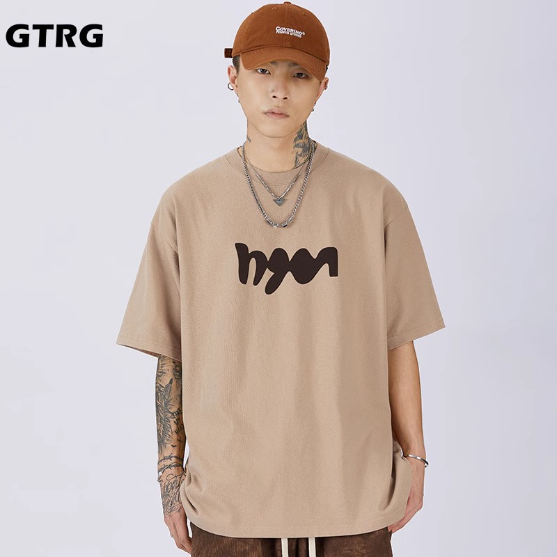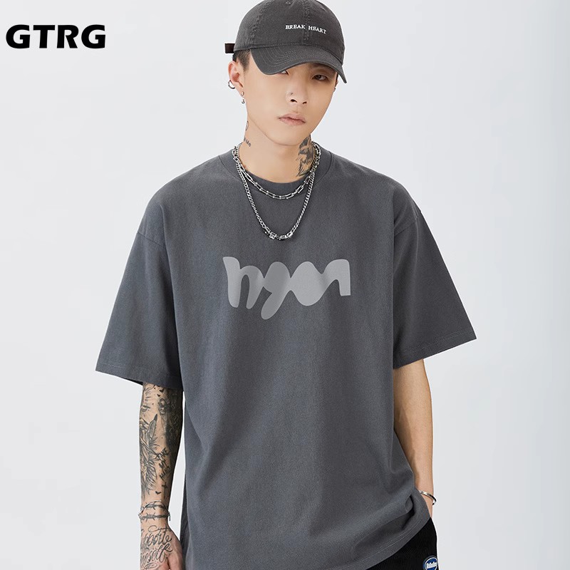 GTRG短袖個性簡約重磅310克純棉ins潮流痞帥日系印花落肩款T恤男