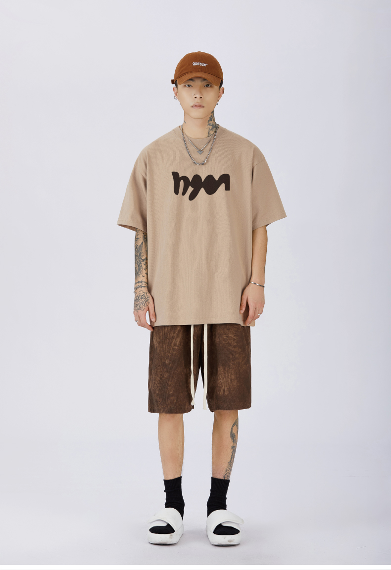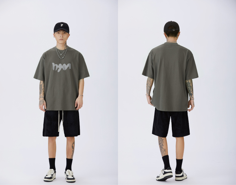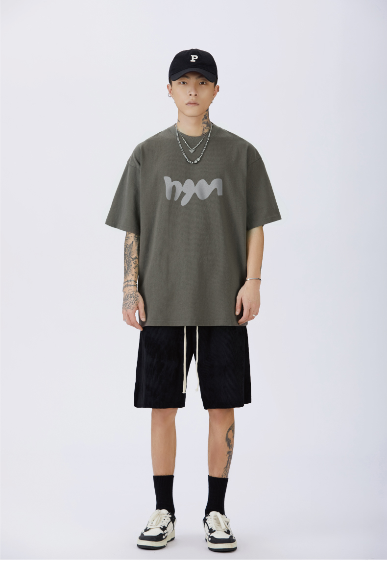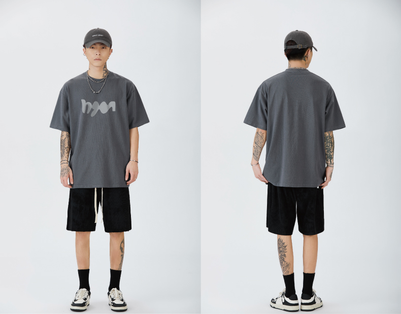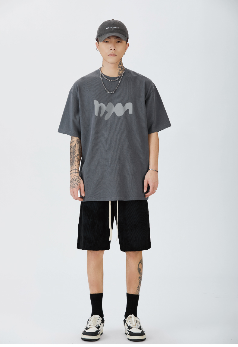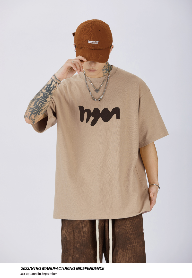 GTRG短袖個性簡約重磅310克純棉ins潮流痞帥日系印花落肩款T恤男