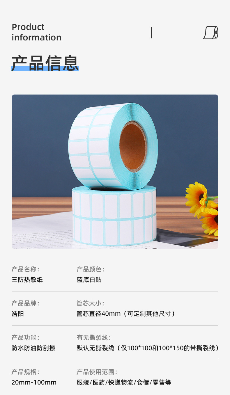 三防热敏纸标签纸不干胶标签贴纸打印纸印刷100 80 50 40 20卷筒