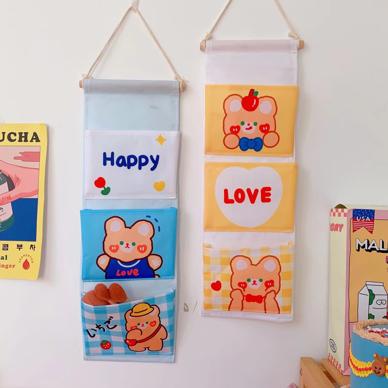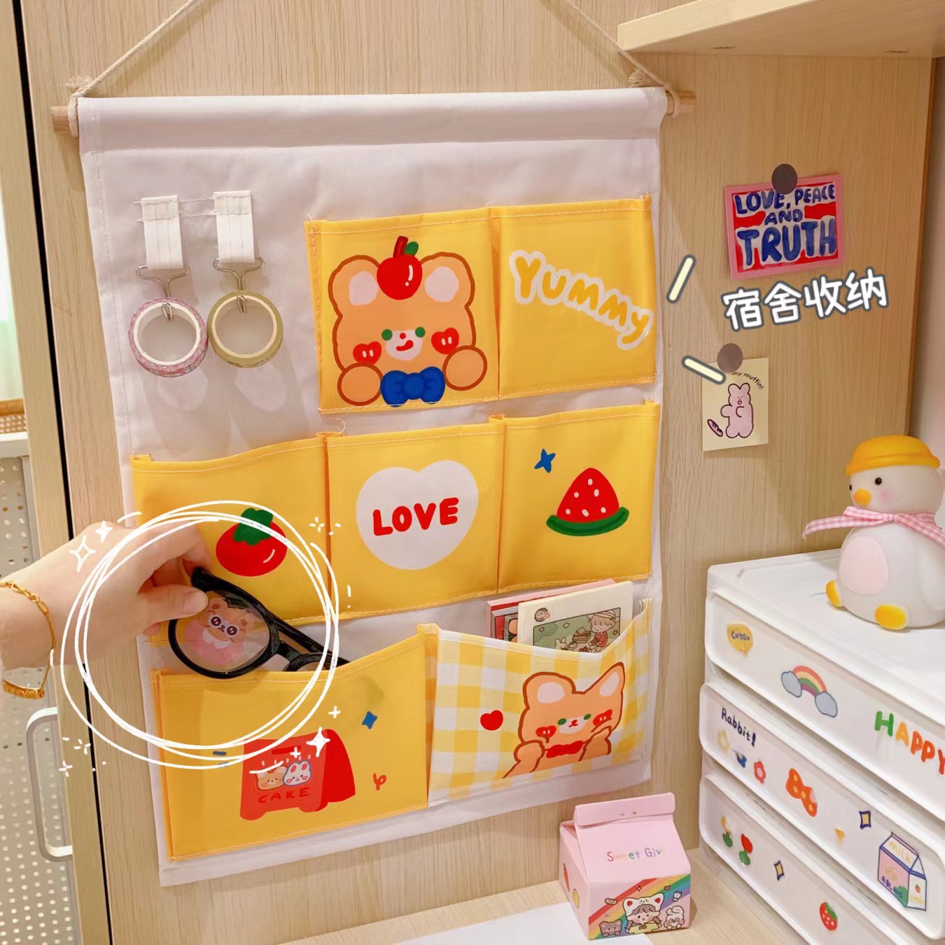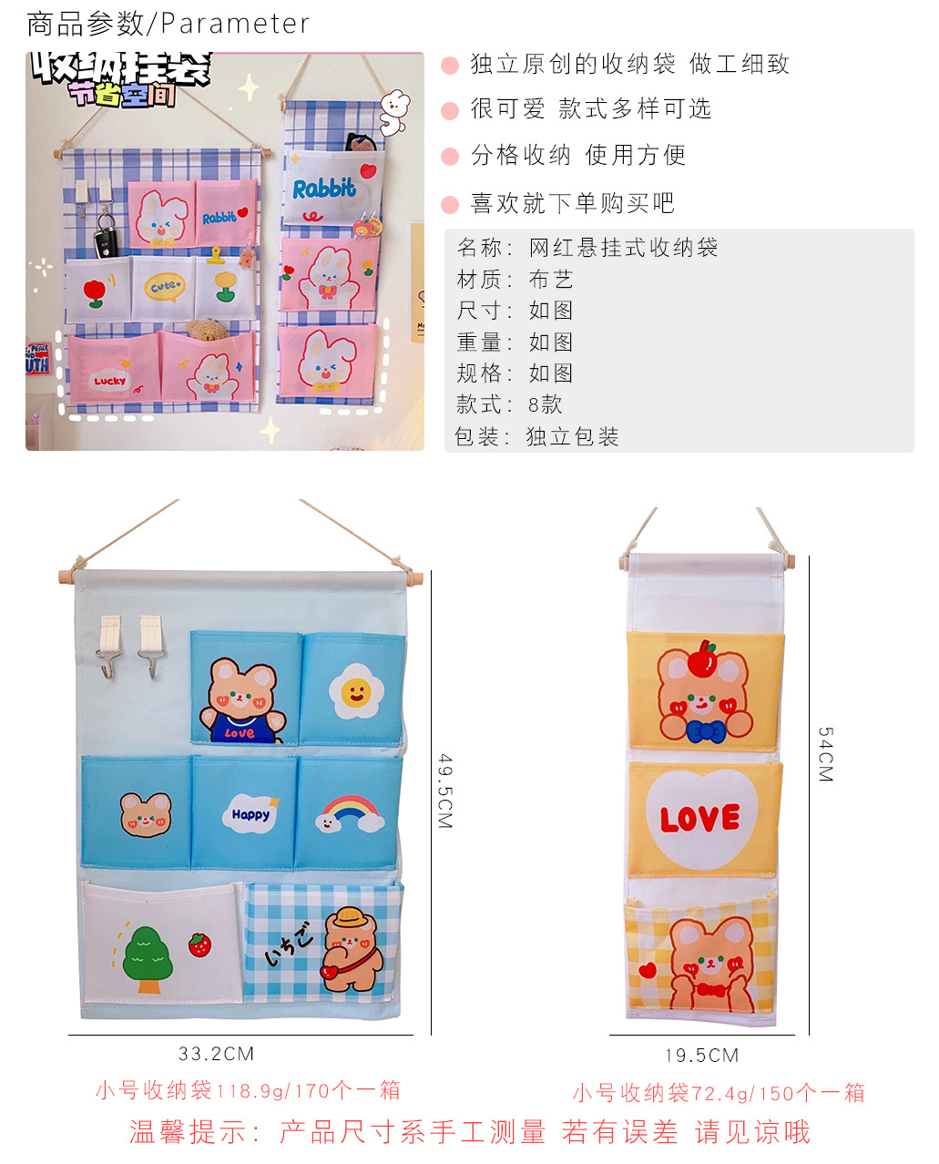 寝室布艺挂袋收纳袋墙上可爱床头门后柜子网红悬挂式收纳挂储物袋