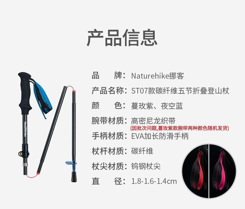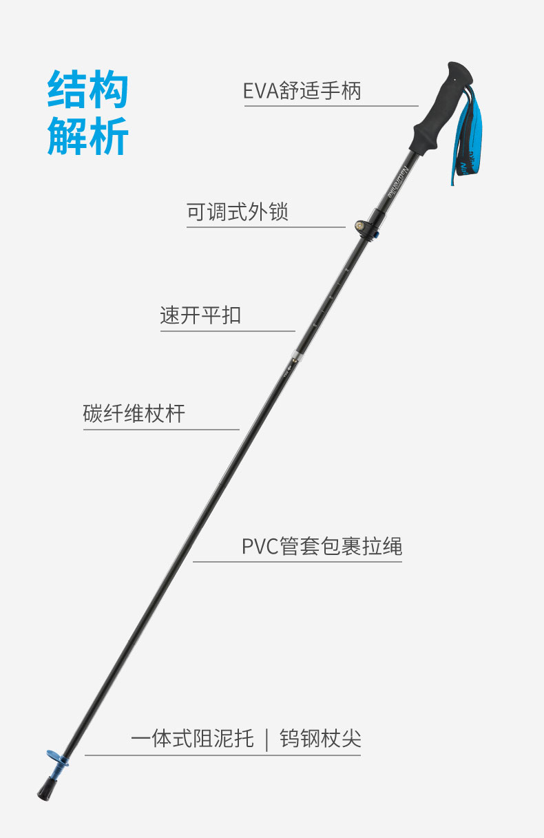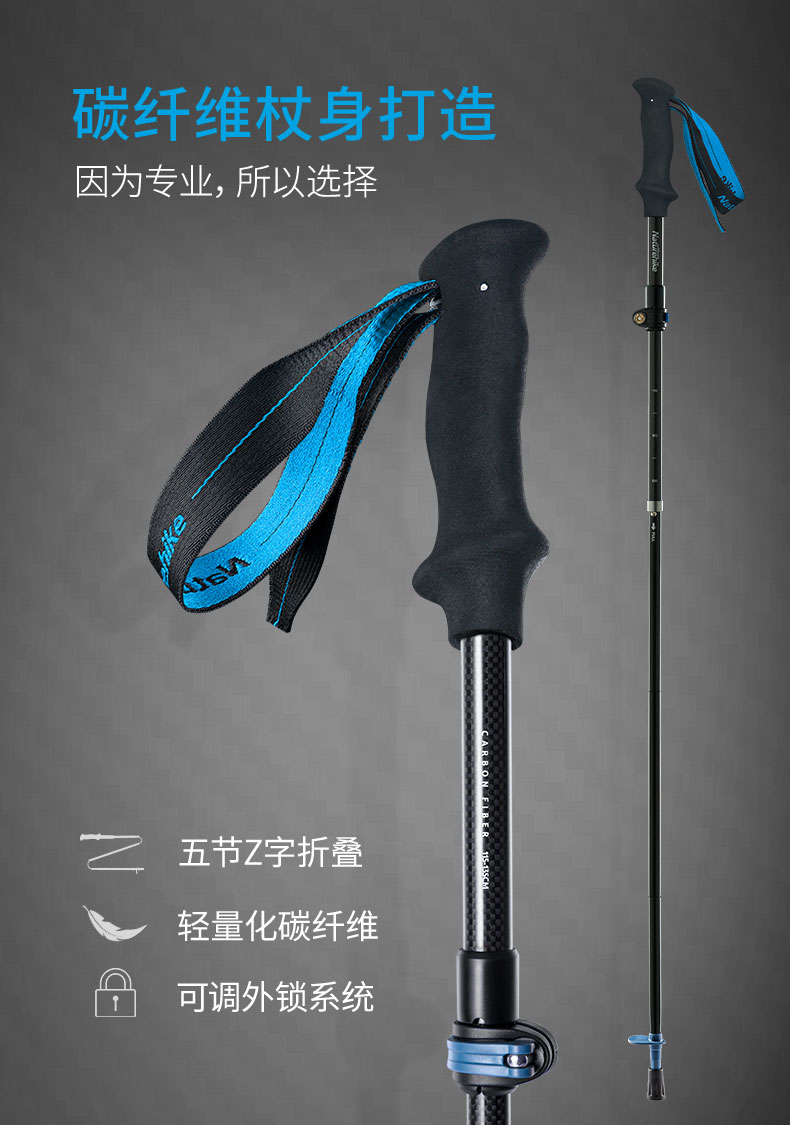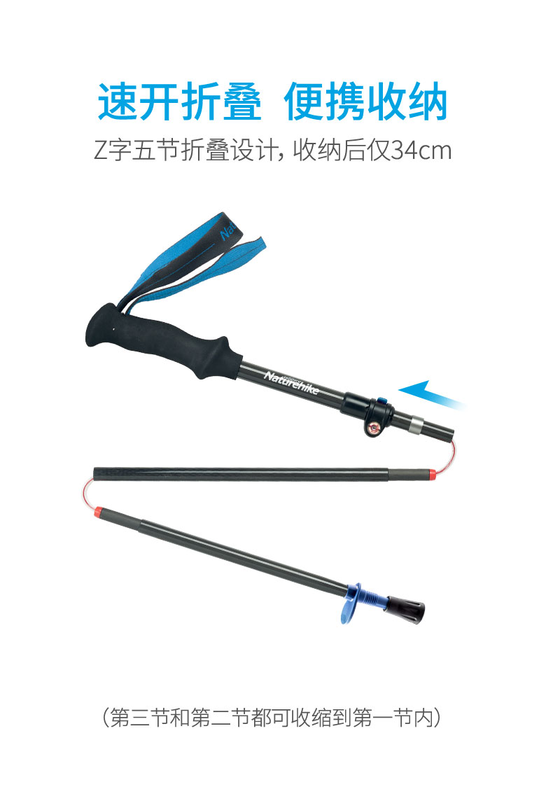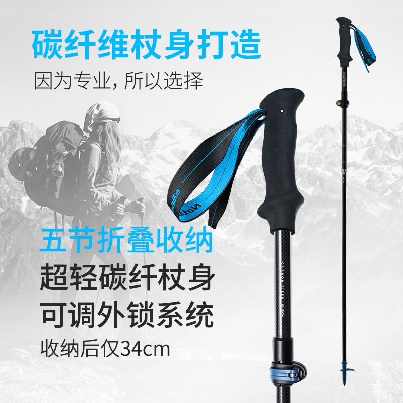 Naturehike挪客碳纖維摺疊登山杖碳素超輕伸縮手杖男女戶外爬山杖