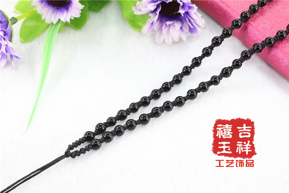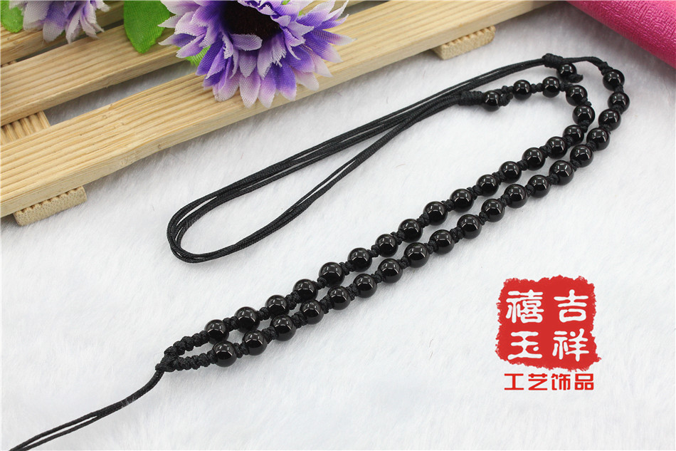 【材质】:台湾玉线5MM珠子【规格】:项链挂绳长短可以调节,可调节:约30-40cm【用途】:可用于挂金器、银器、玉器、陶瓷器、饰品配件等吊坠用【包装】:无单独的包装【说明】:手工编织项链挂绳,出现线头或者毛边的情况实属正常只要用打火机烧一下就能弄好。
