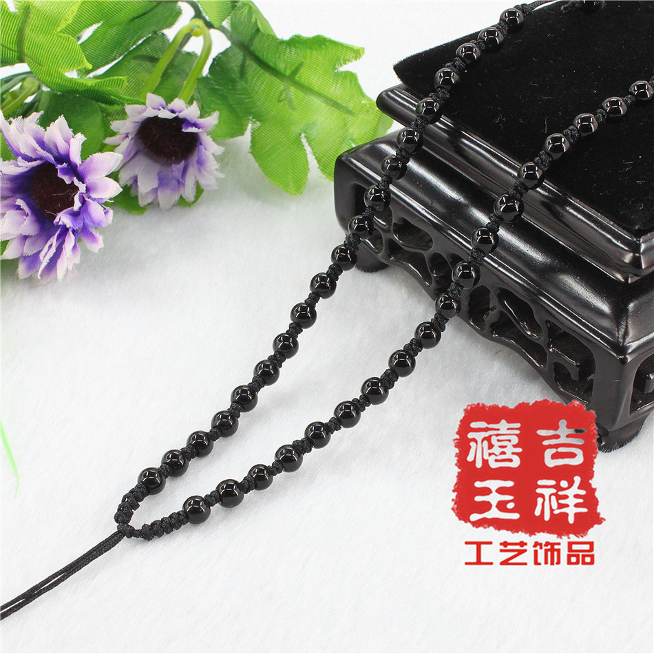 原创六字真言磨砂黑玛瑙全珠项链纯手工编织吊坠挂绳珠链批发6.00