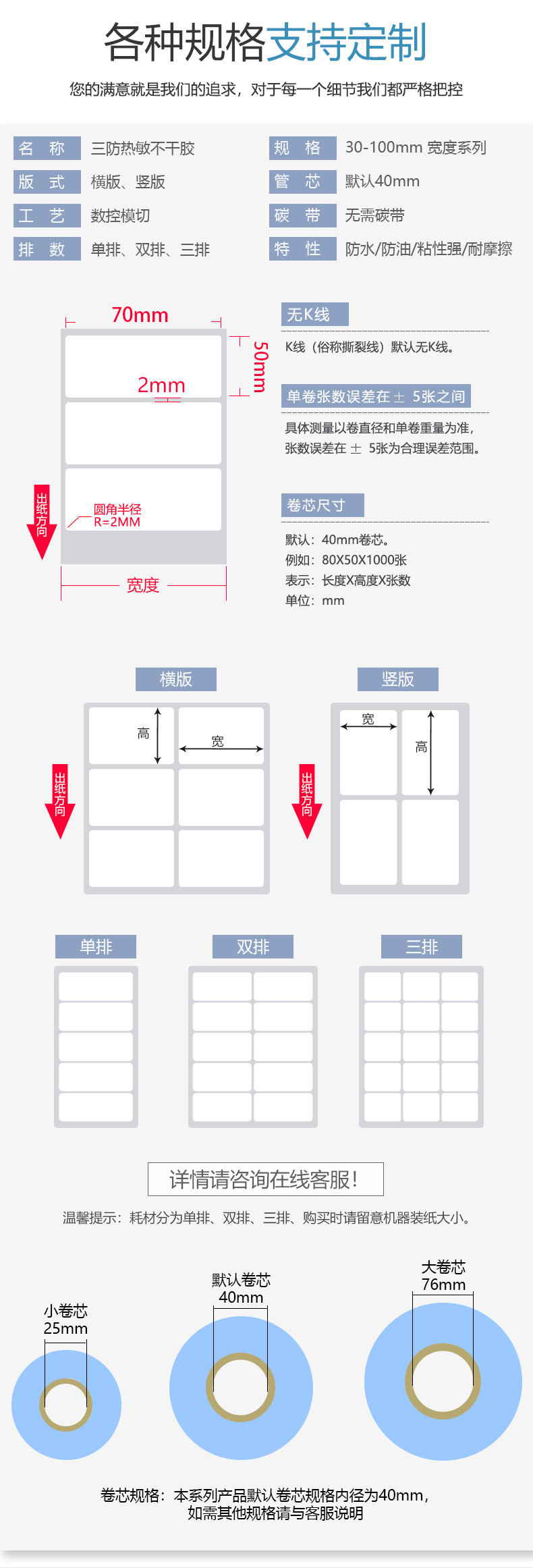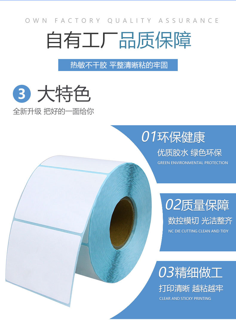 包装唛头贴纸三防热敏不干胶标签纸70*50*1000电子称热敏标签纸