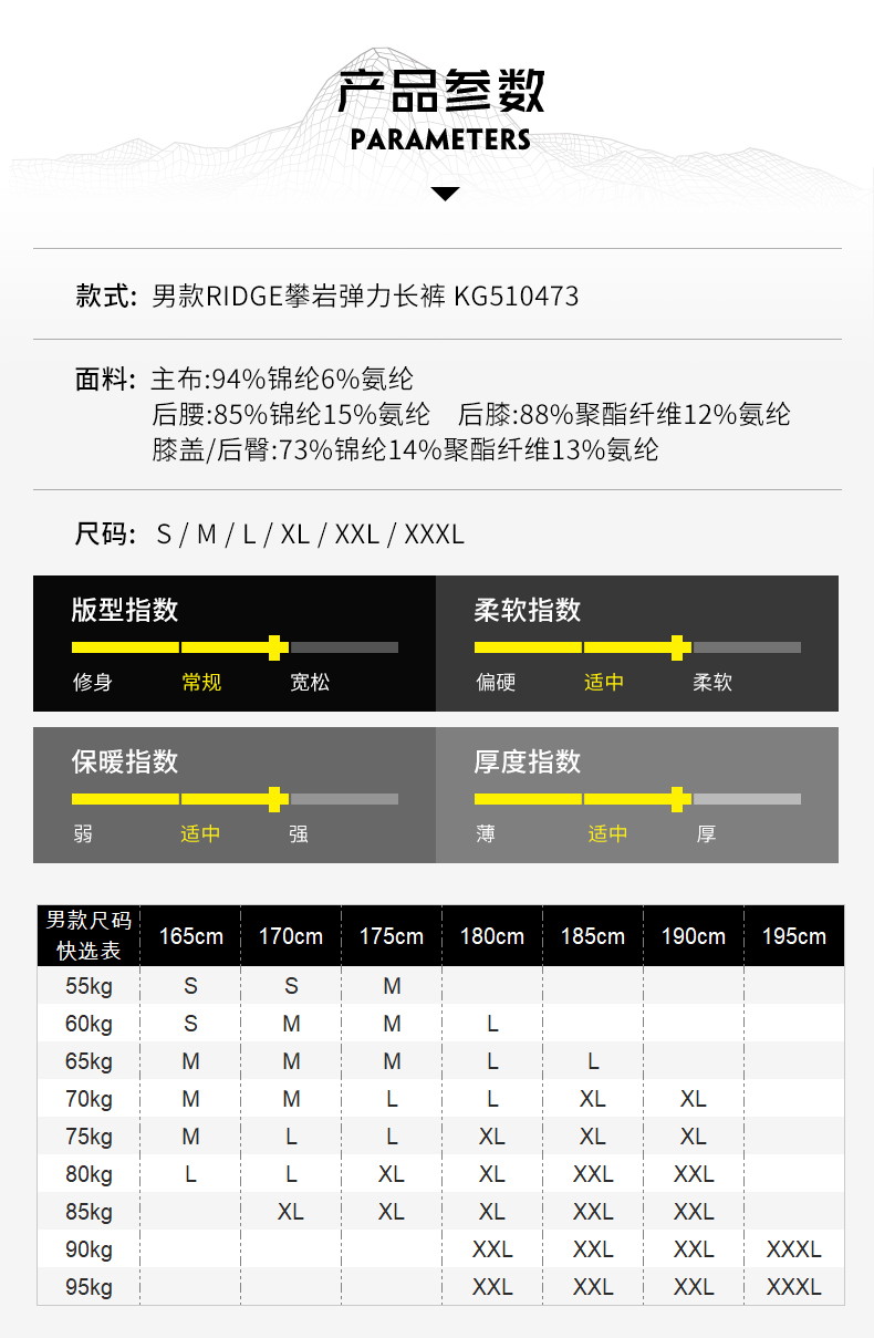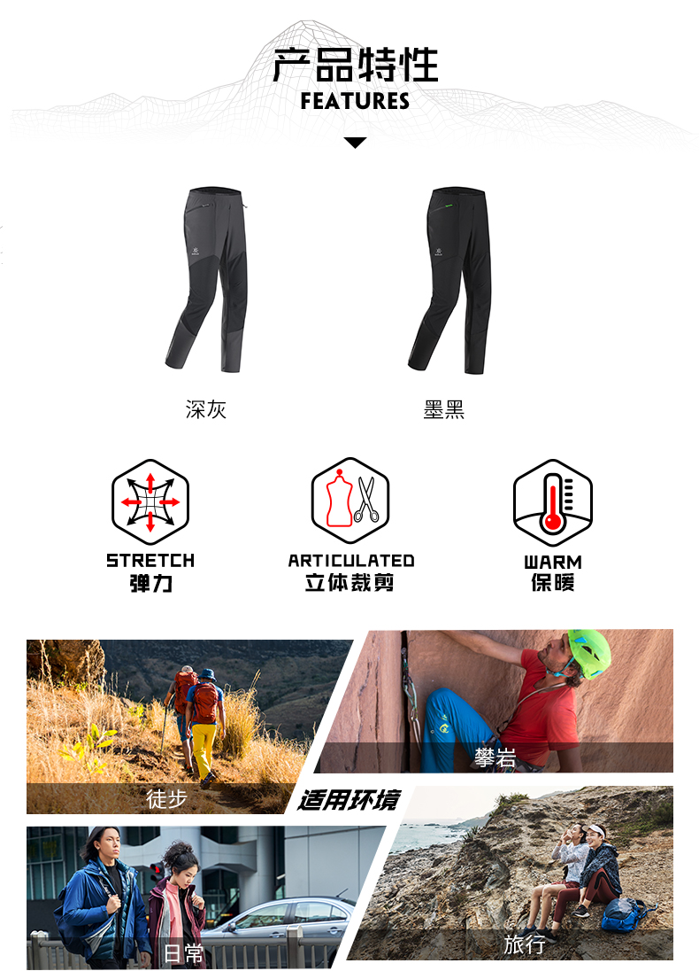 凱樂石攀巖彈力長褲 RIDGE秋冬戶外耐磨加絨男款休閒運動徒步褲子