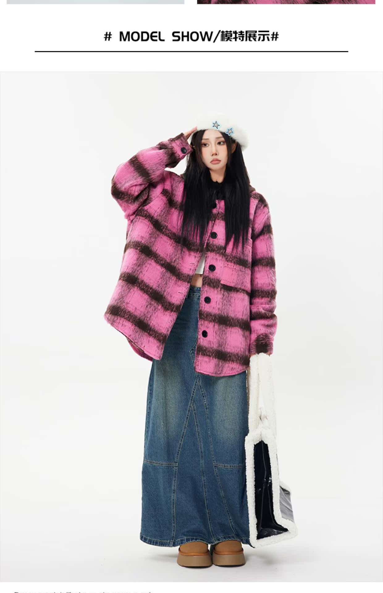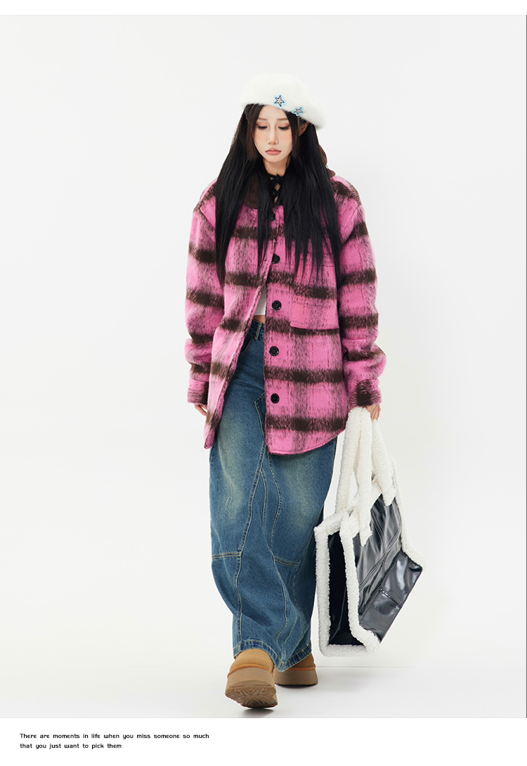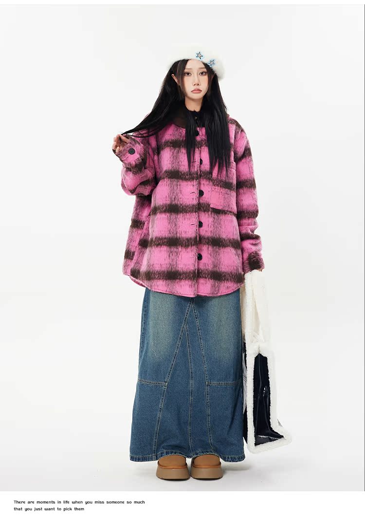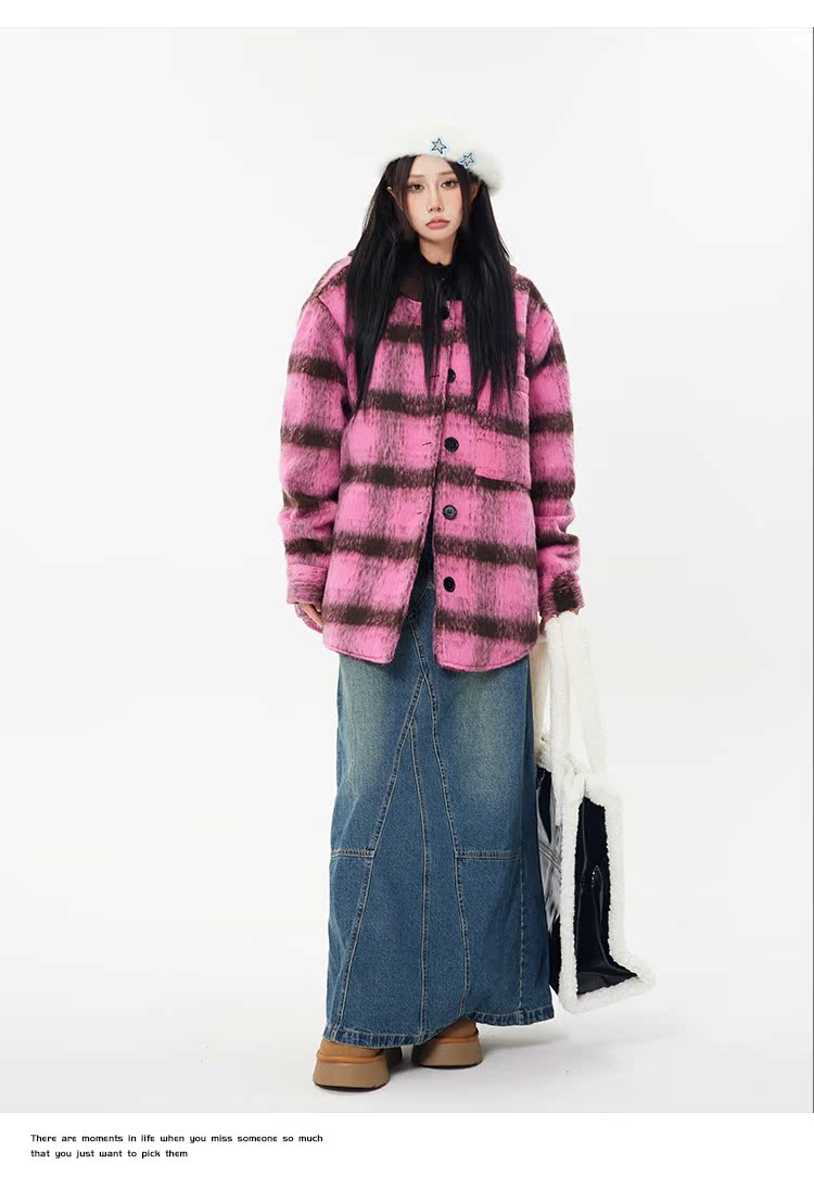ZHL STUDIO美式復古格子毛呢夾棉保暖外套男女款休閒情侶連帽鋪棉外套