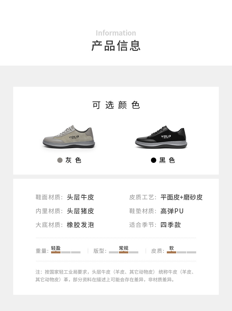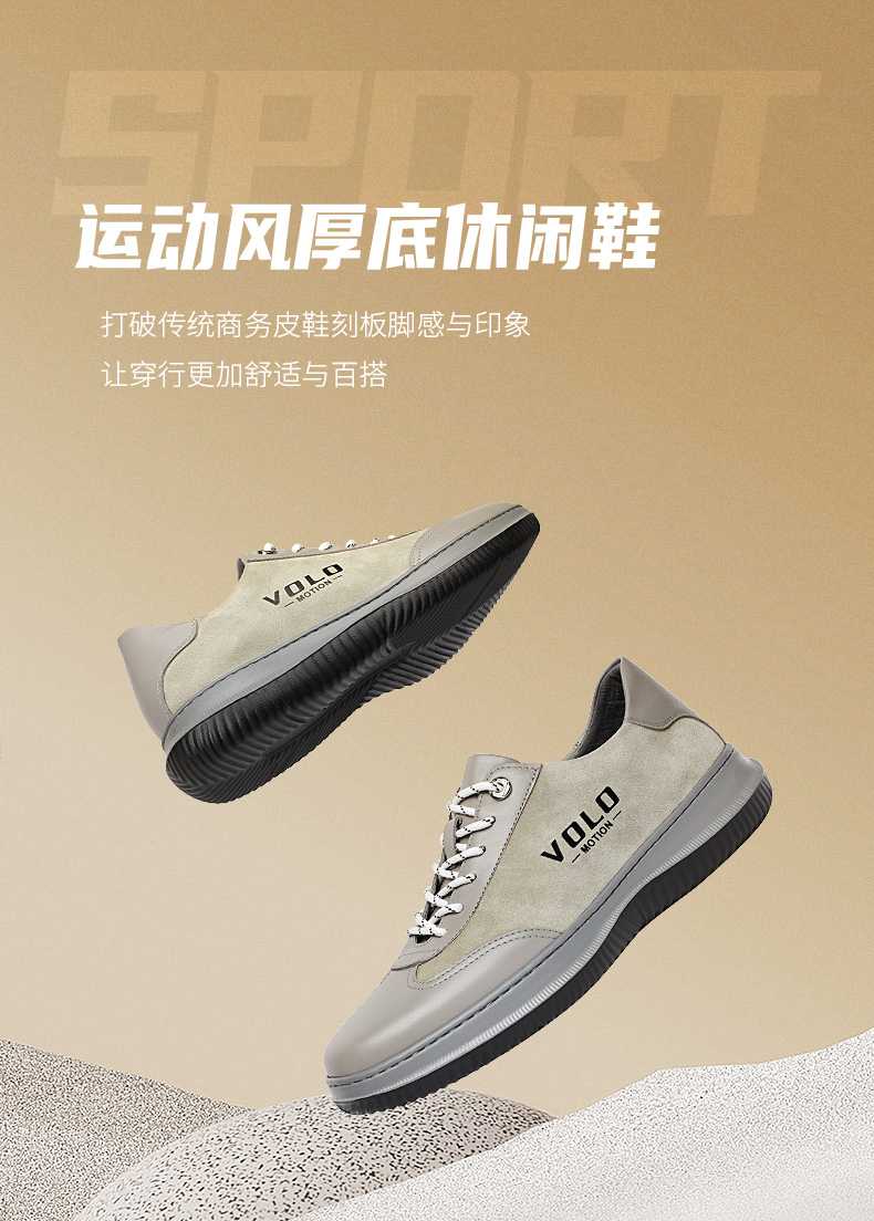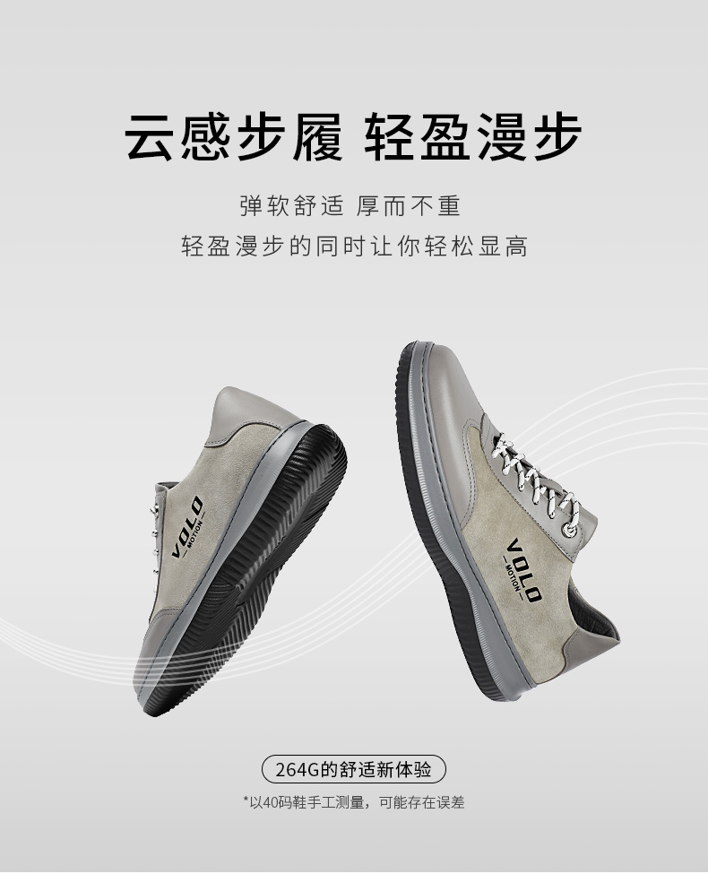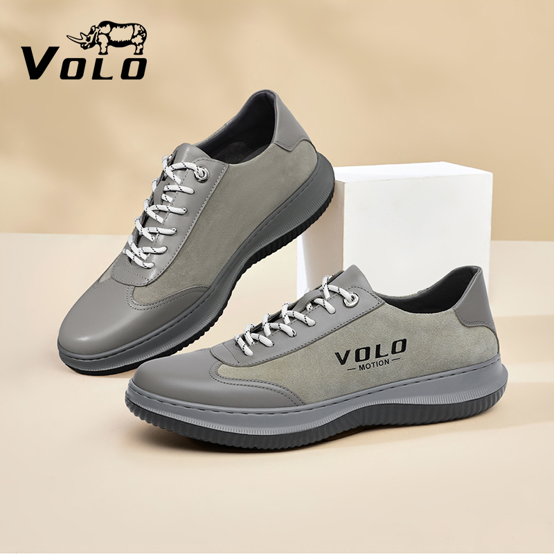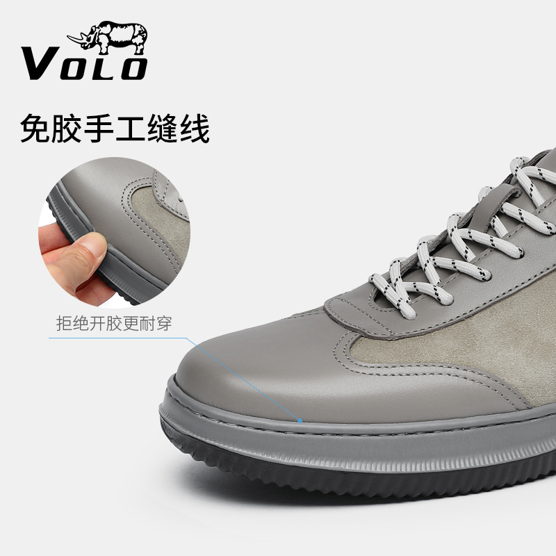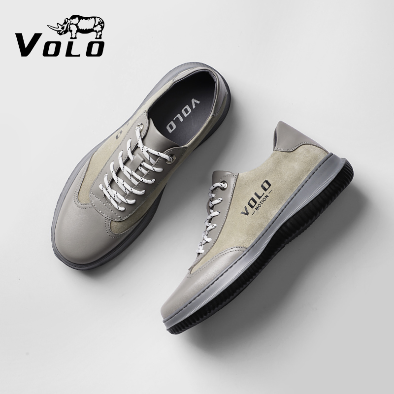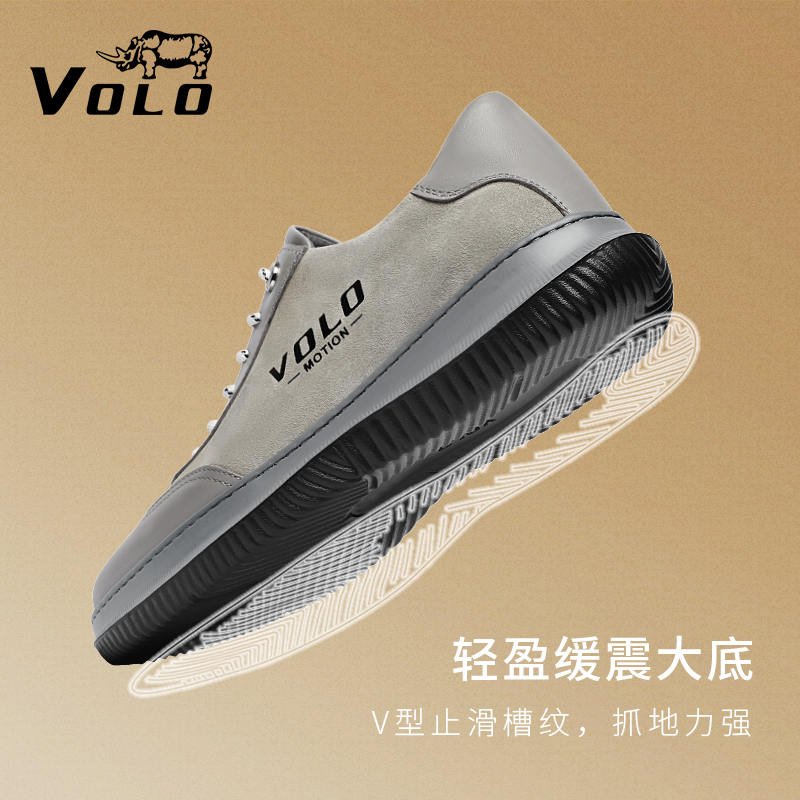 VOLO/犀牛軟底運動鞋男款秋季透氣休閒皮鞋真皮品牌男鞋牛皮厚底