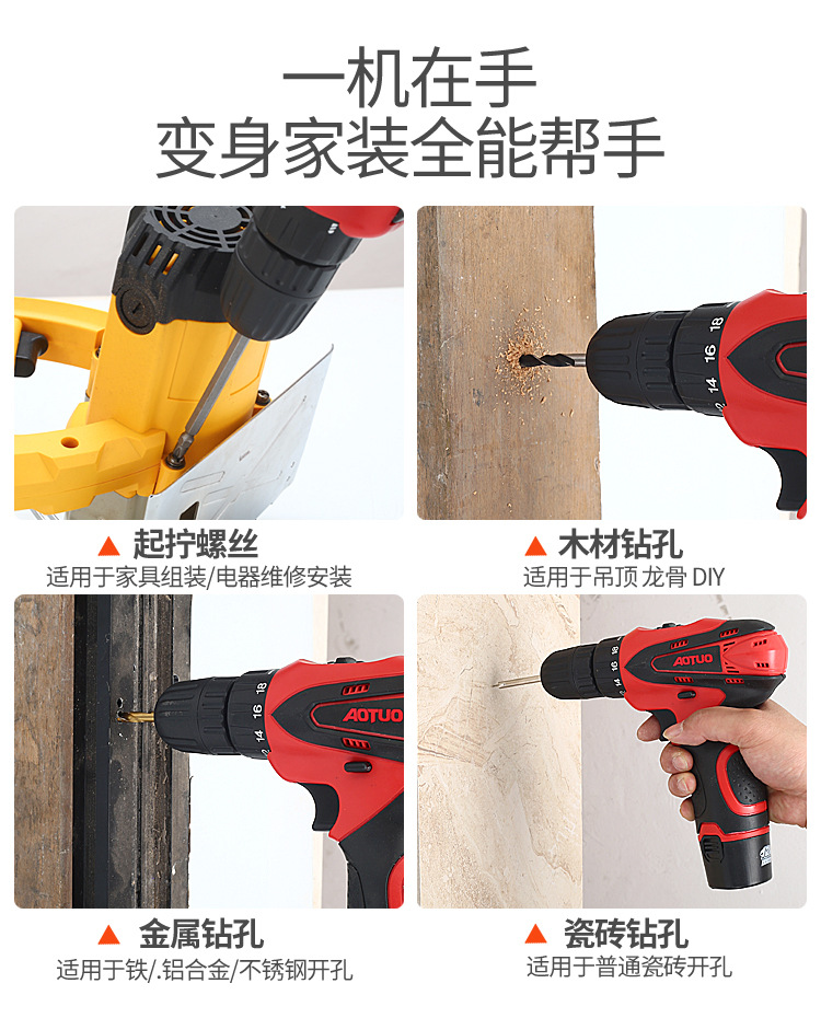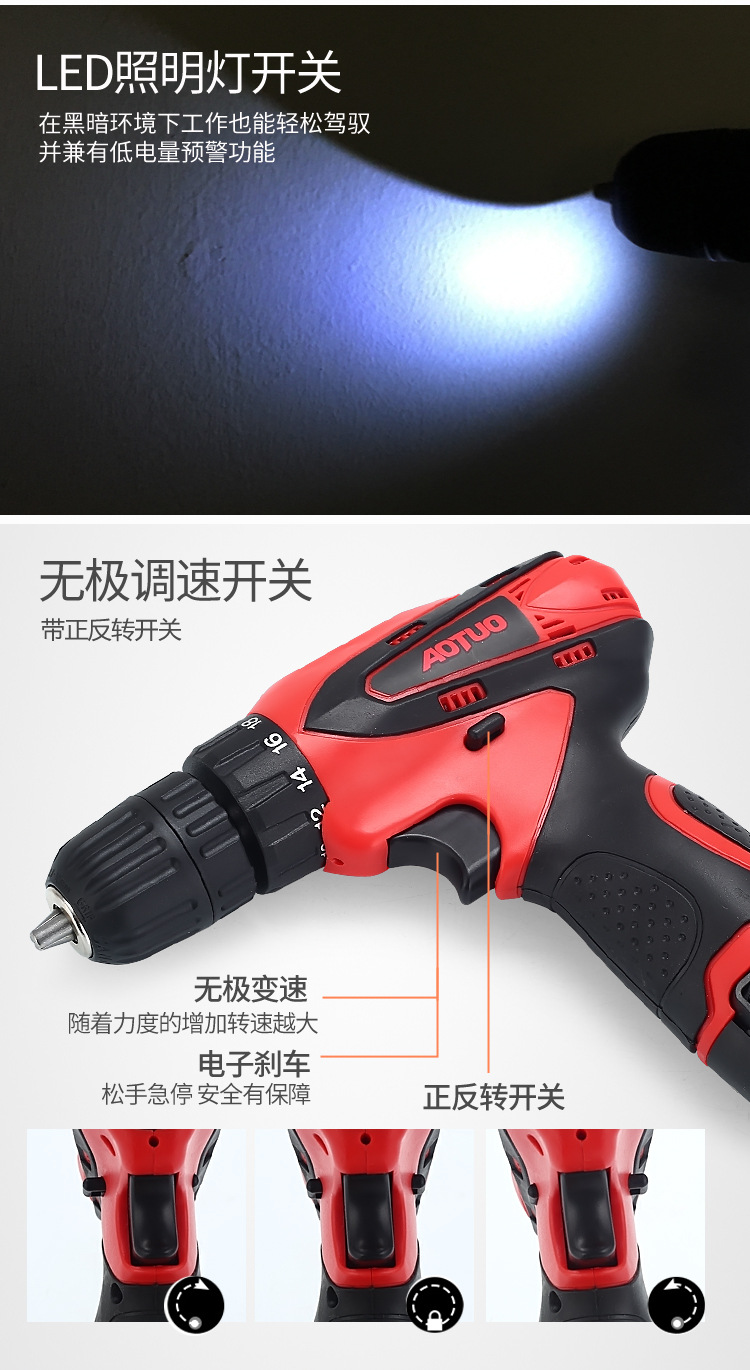 12V电动螺丝刀套装 锂电充电钻 电动螺丝刀起子机 手枪钻批发
