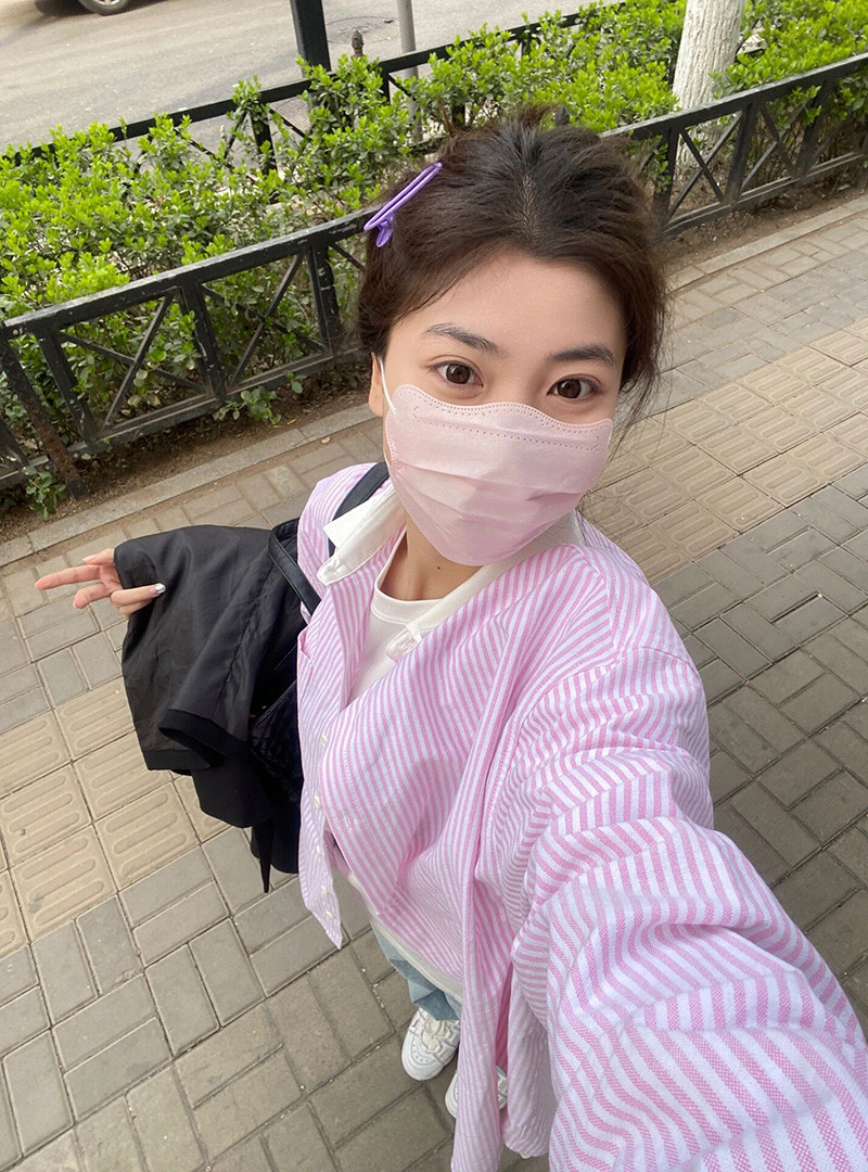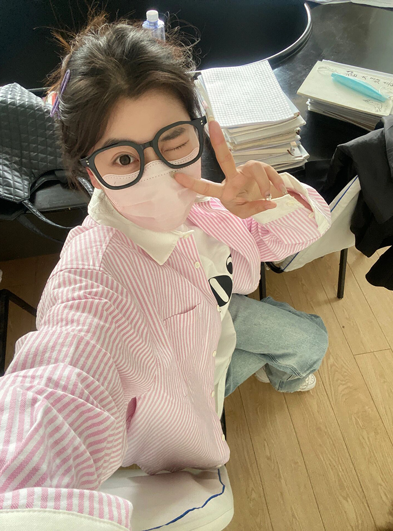 韓版hiphop粉色條紋長袖襯衫女春秋寬鬆慵懶風氣質休閒百搭襯衣潮