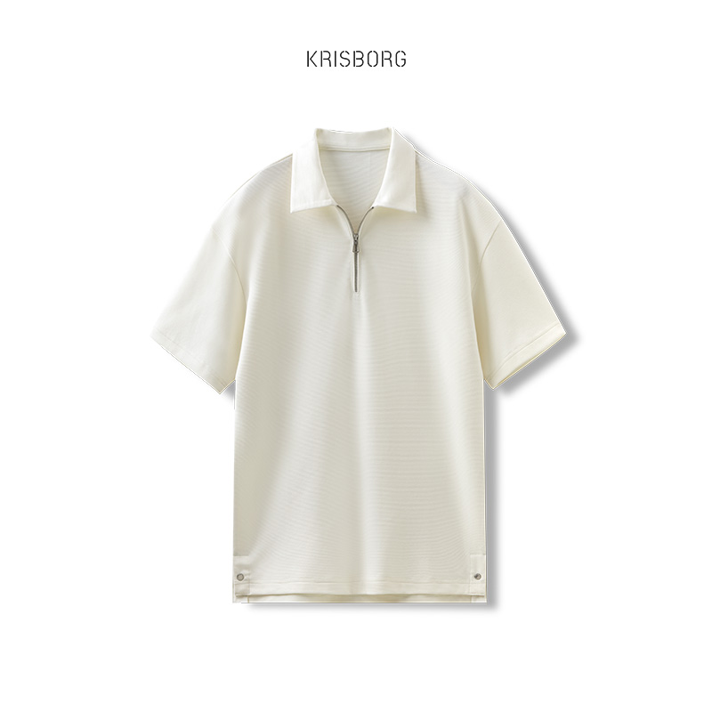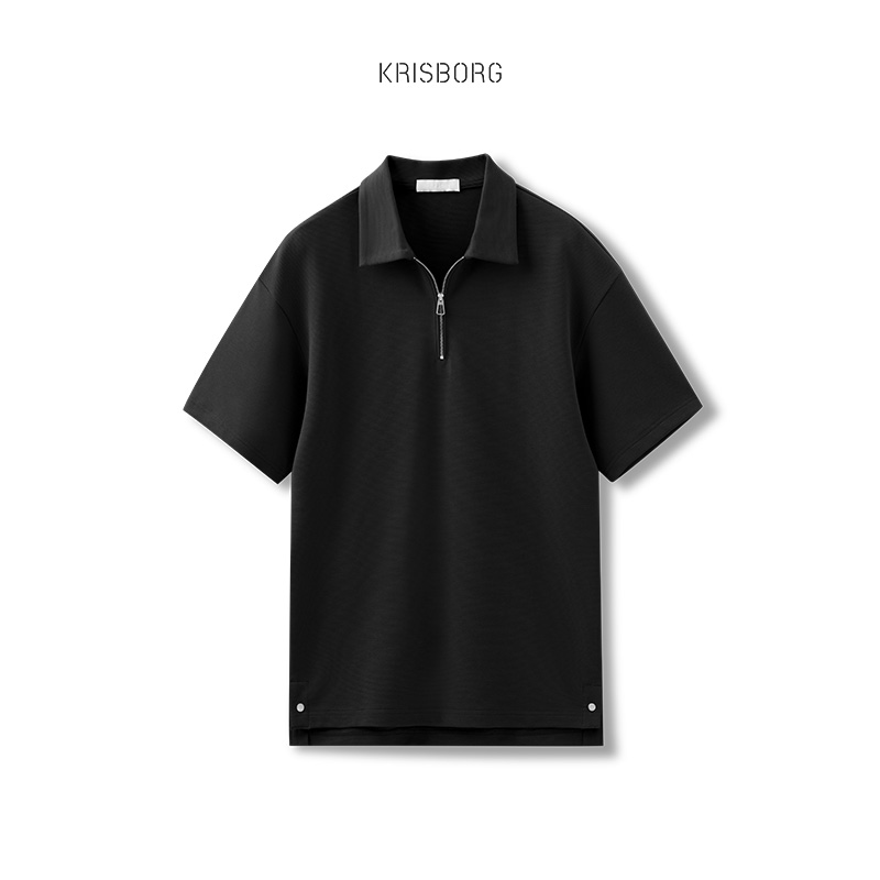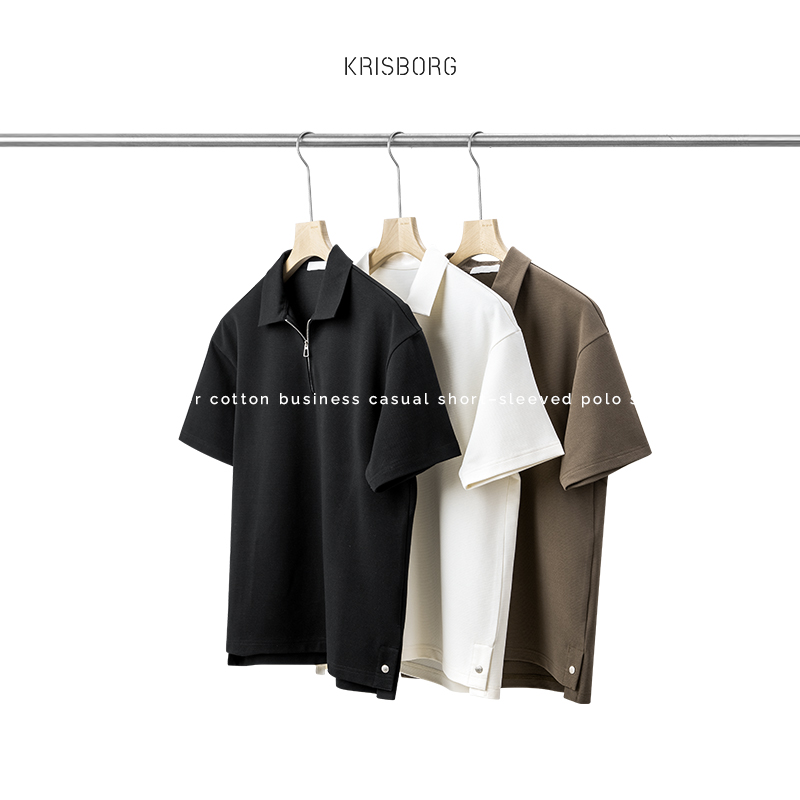 polo衫男夏季日系寬鬆純色高級感短袖男士商務休閒港風高端T恤