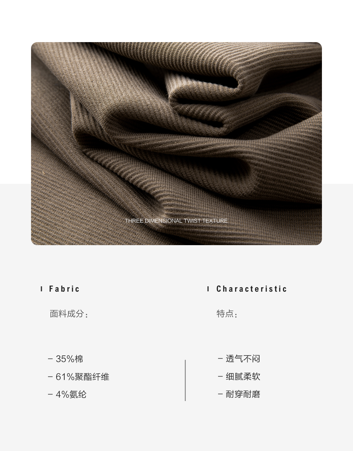 材質成分 聚酯纖維61% 棉35% 聚氨酯彈性纖維(氨綸)4%