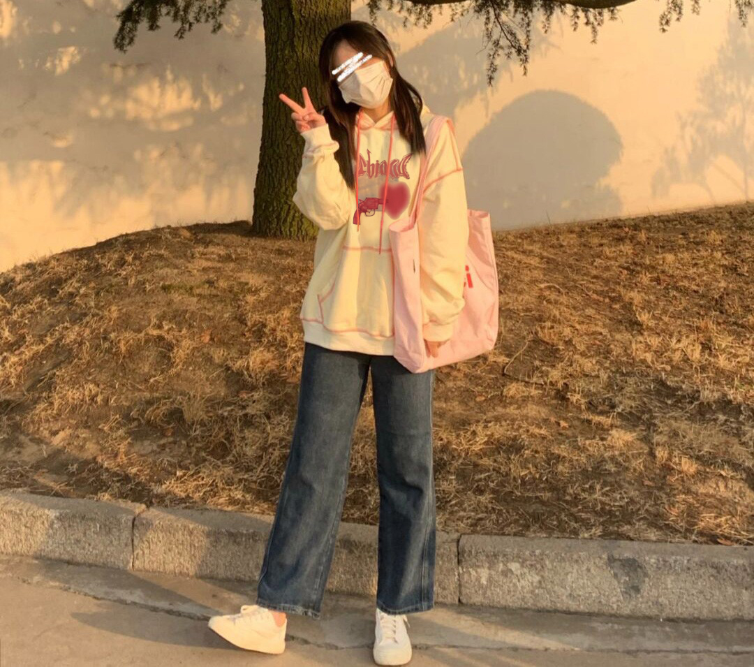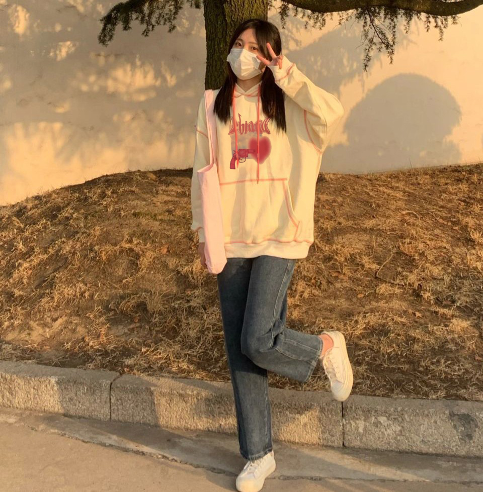韓版杏色連帽加絨衛衣秋冬女甜妹多巴胺穿搭慵懶風oversize外套潮