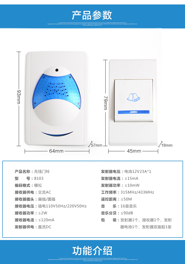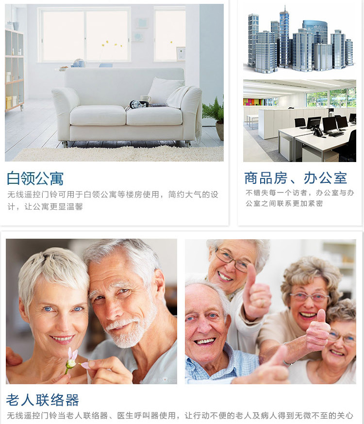 适用范围 家用商用无线遥控门铃