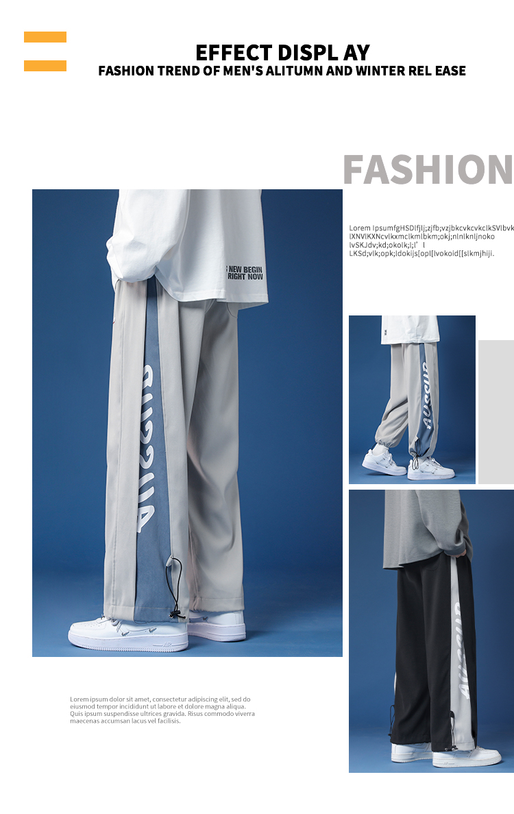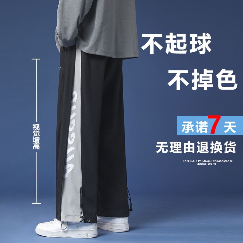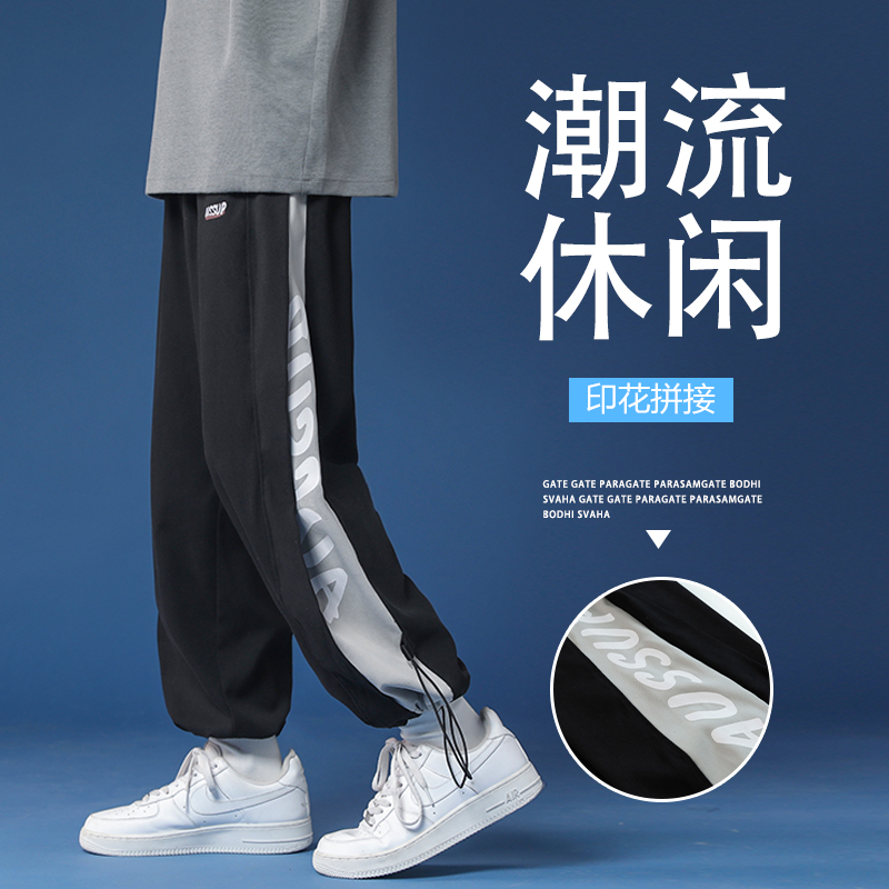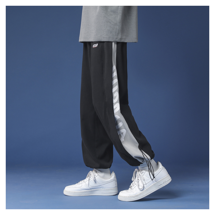 高街潮流抽繩束口褲子男款春夏季寬鬆直筒潮牌工裝褲大尺碼運動休閒