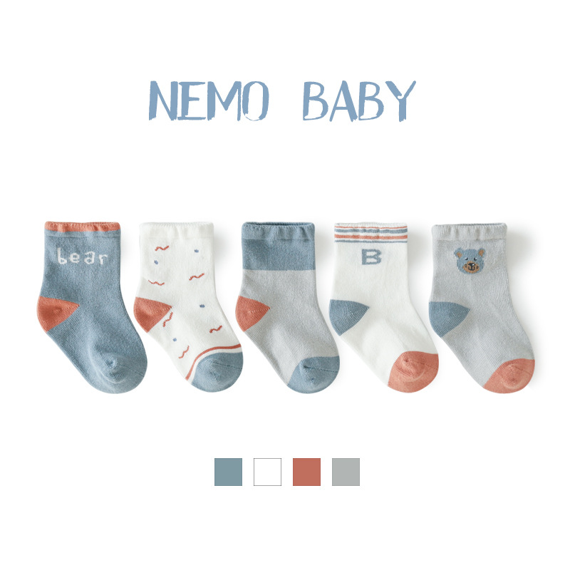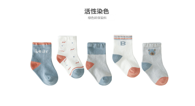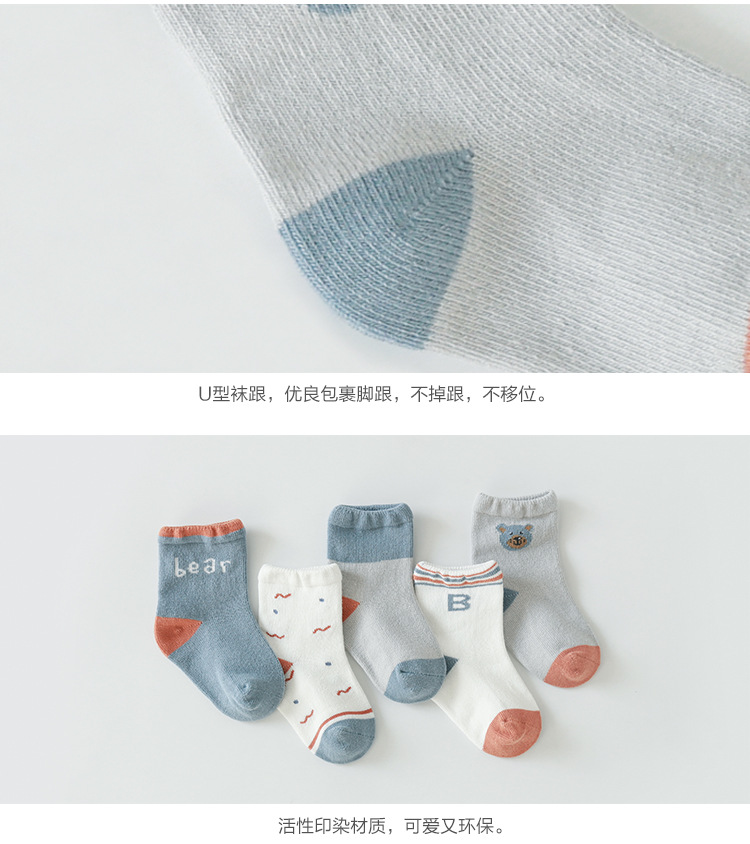 5双装儿童袜子秋季新款卡通精梳棉中筒袜宝宝袜新生婴儿短袜批发