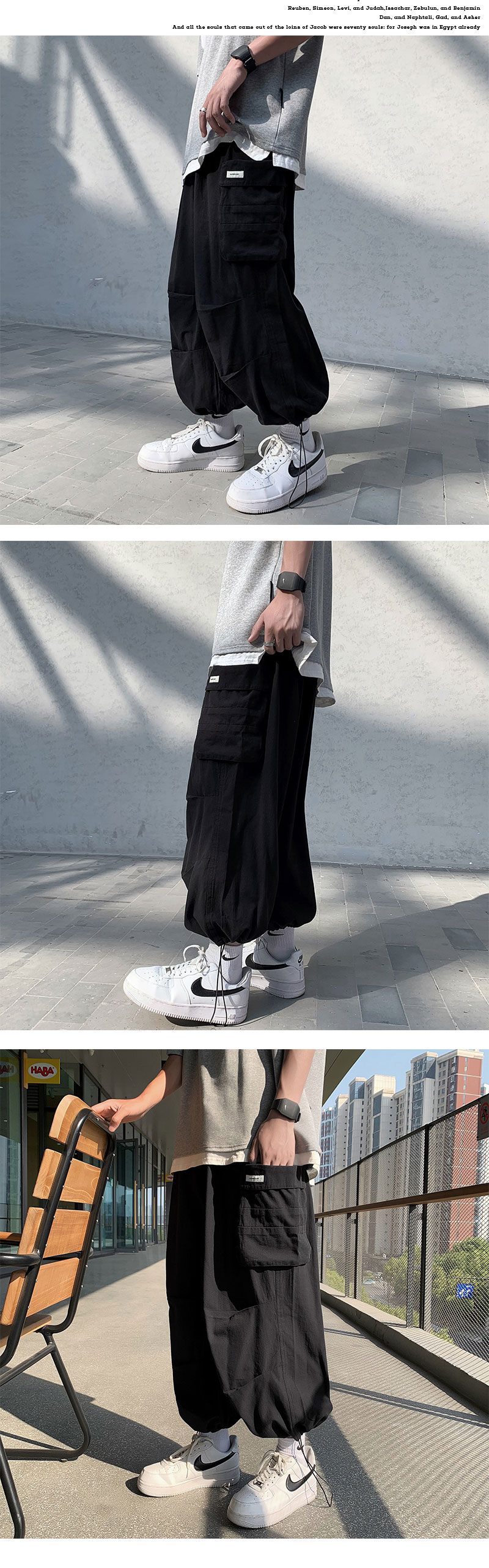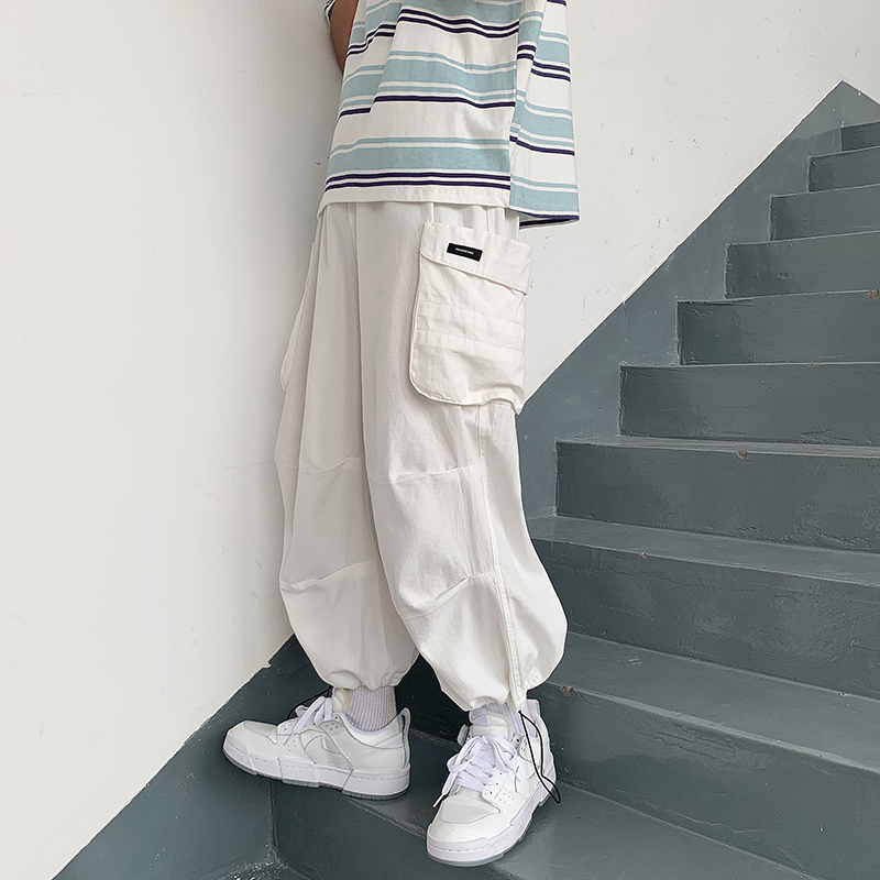 褲子男夏季休閒工作服褲高街ins潮牌春秋長褲韓版潮流寬鬆直筒百搭