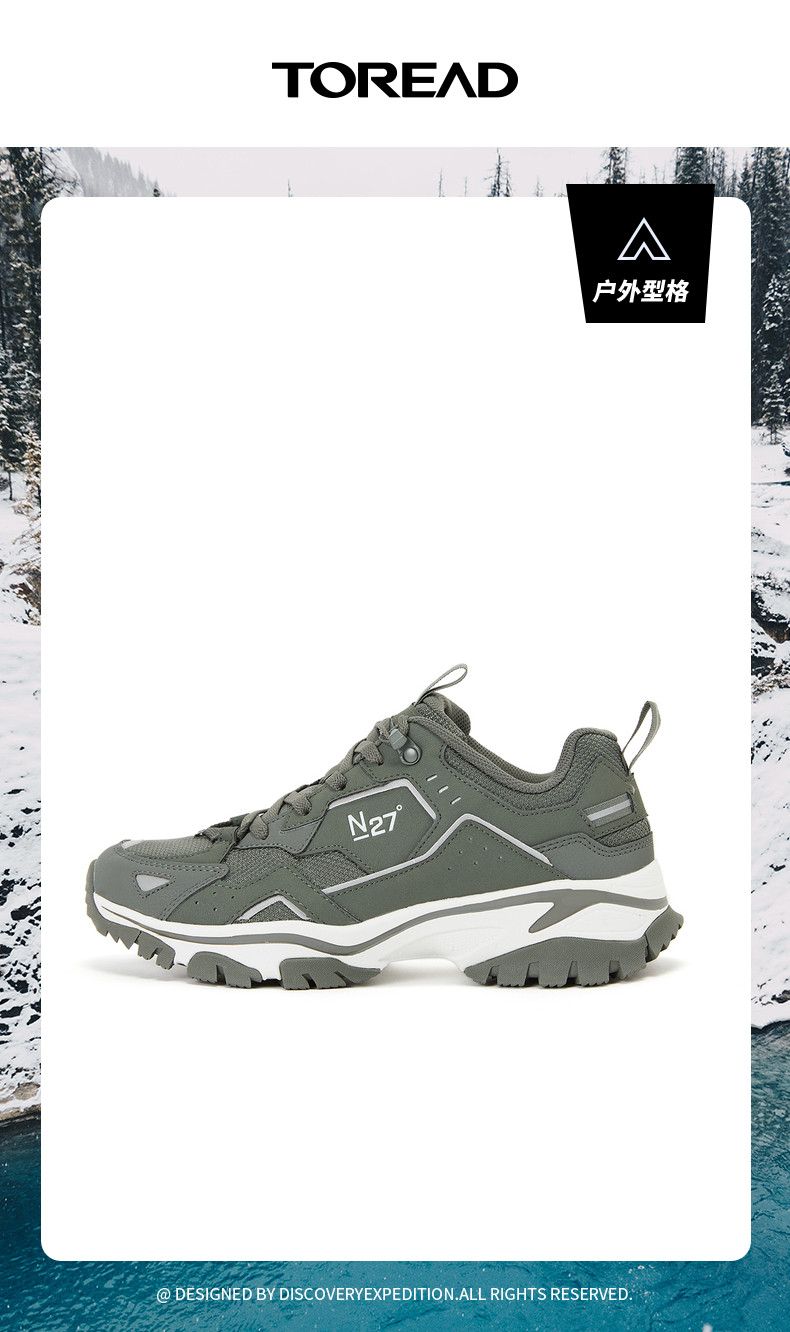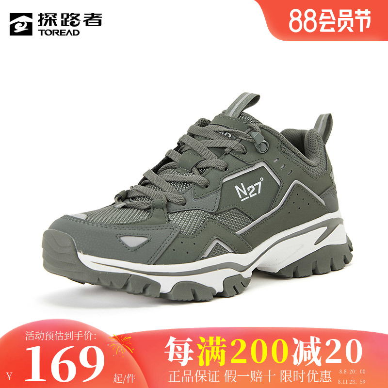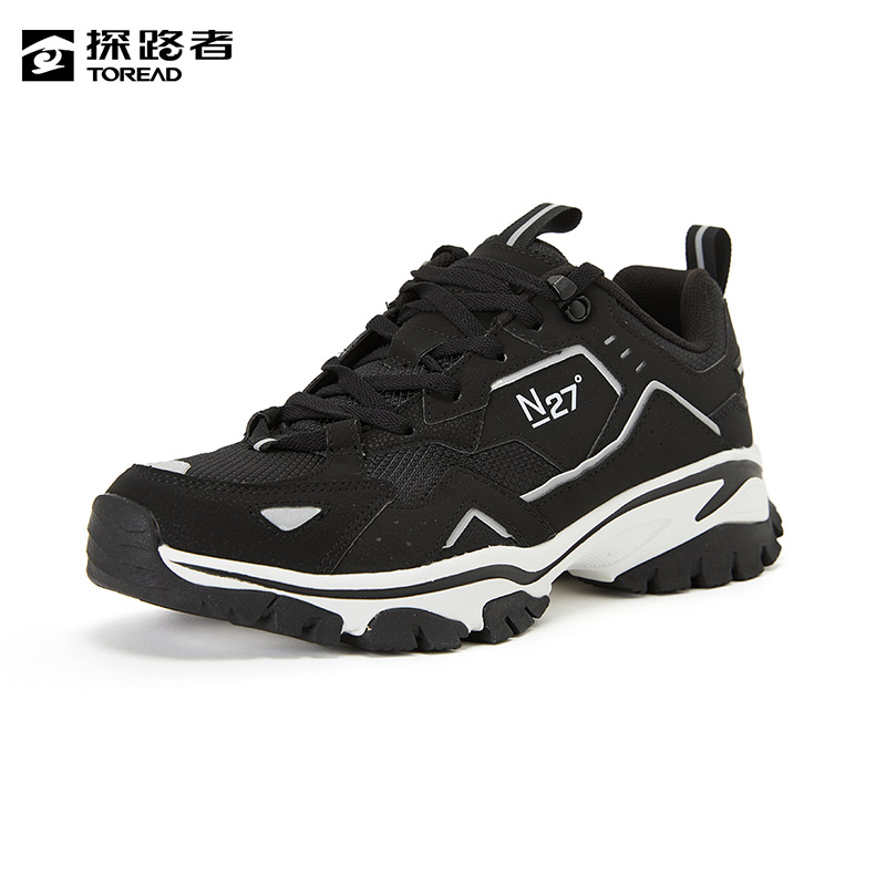 探路者男鞋秋冬季輕便透氣登山鞋新款戶外防滑低幫休閒拼色熊貓鞋