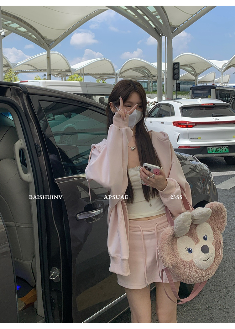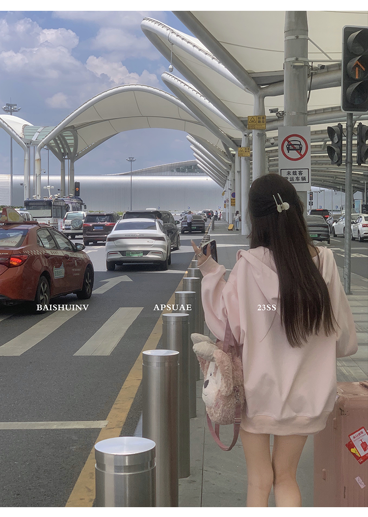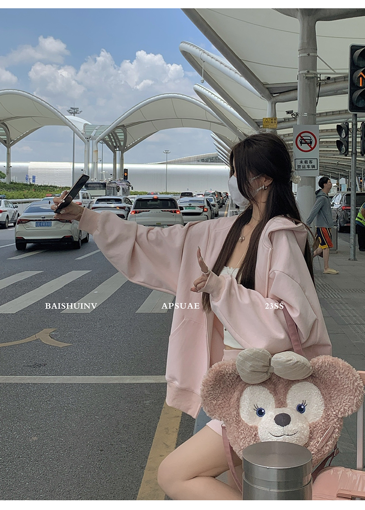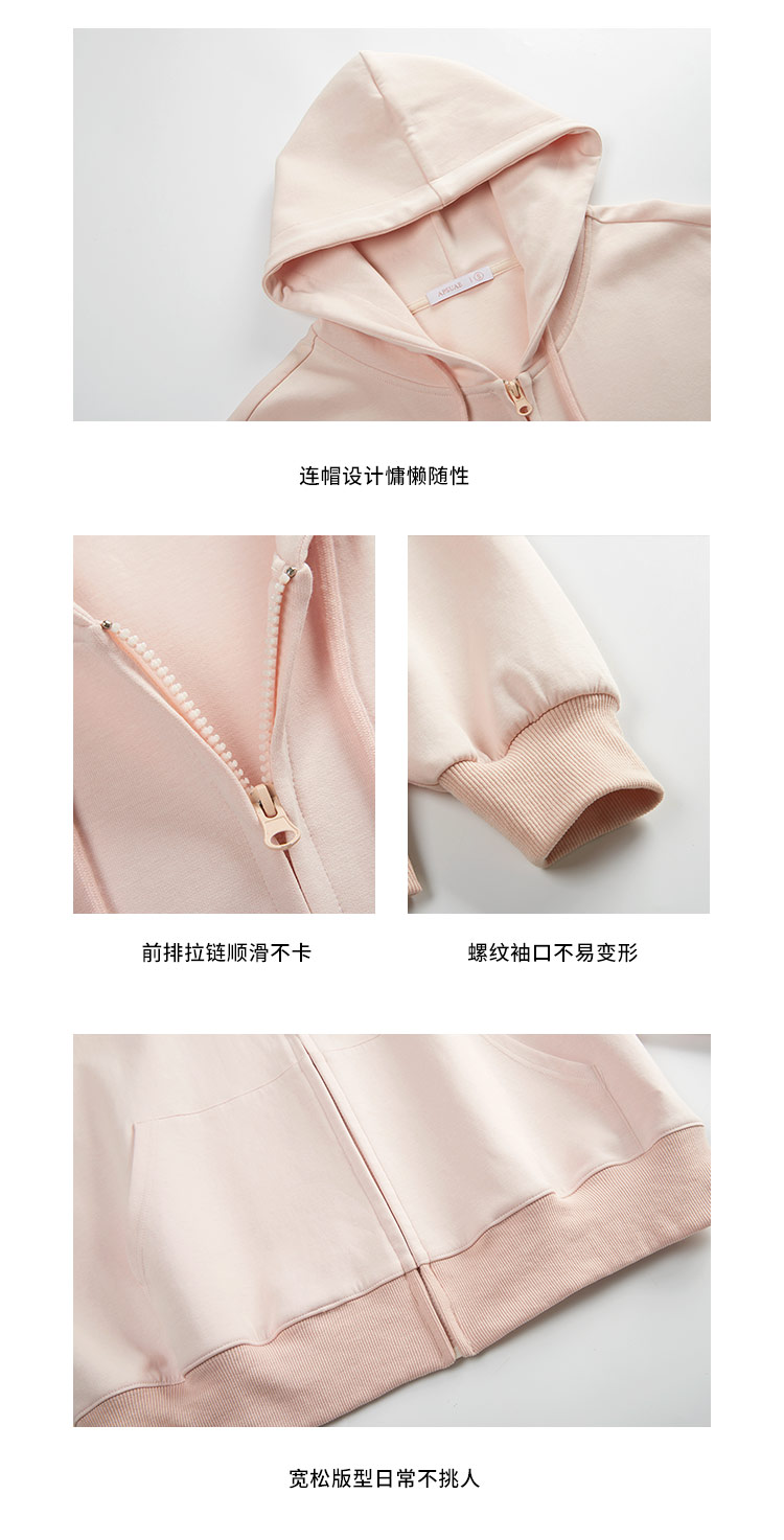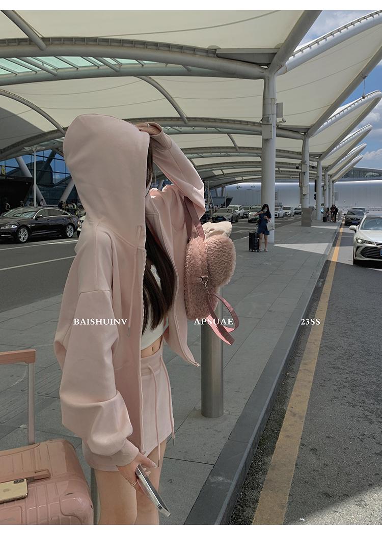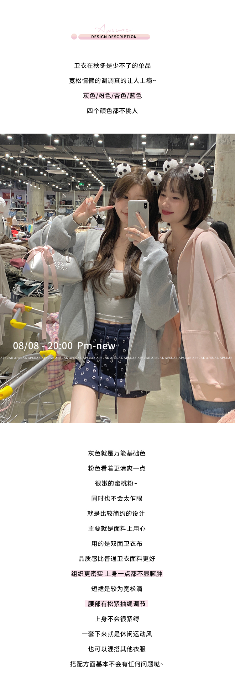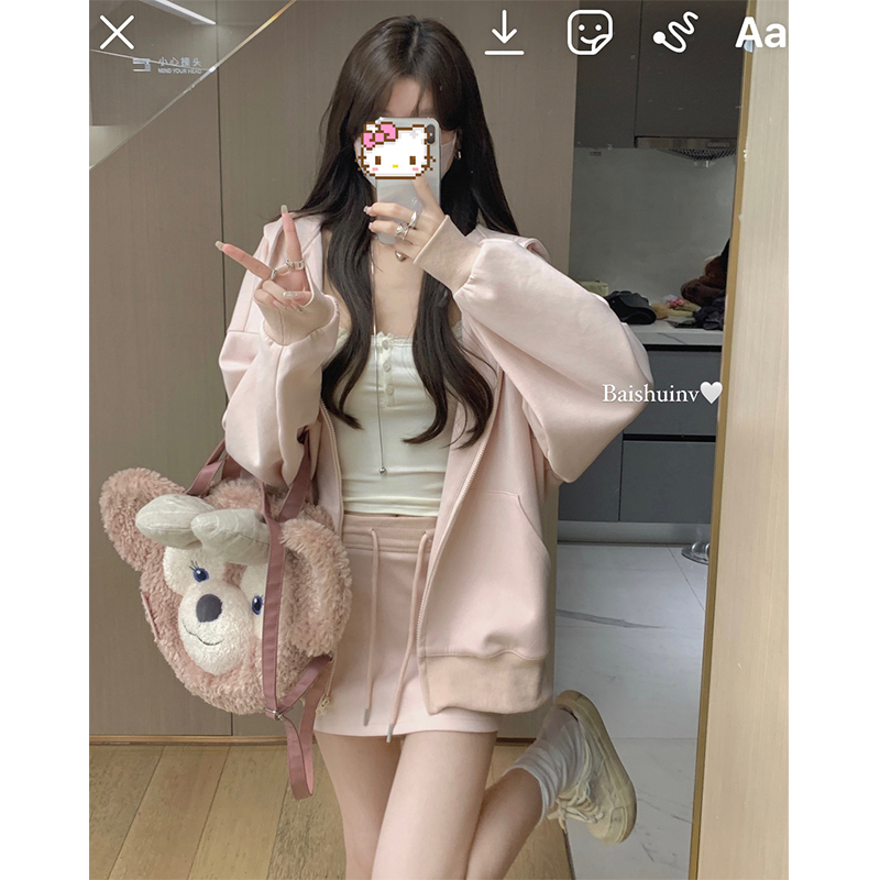 白水女【粉粉蜜桃套裝~】粉色衛衣女秋裝新款慵懶風連帽外套上衣
