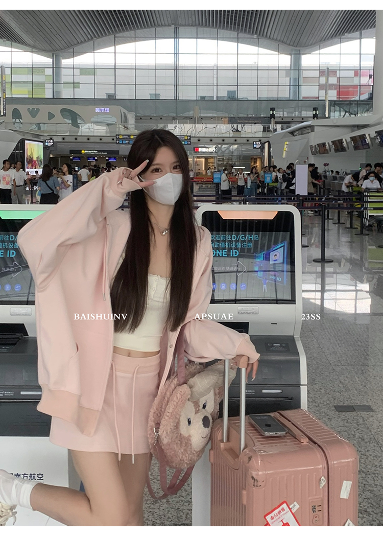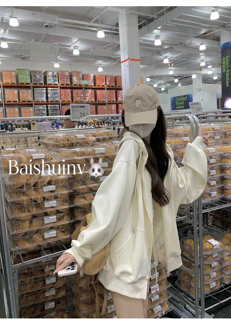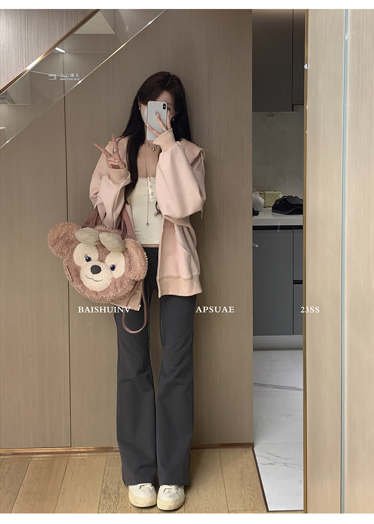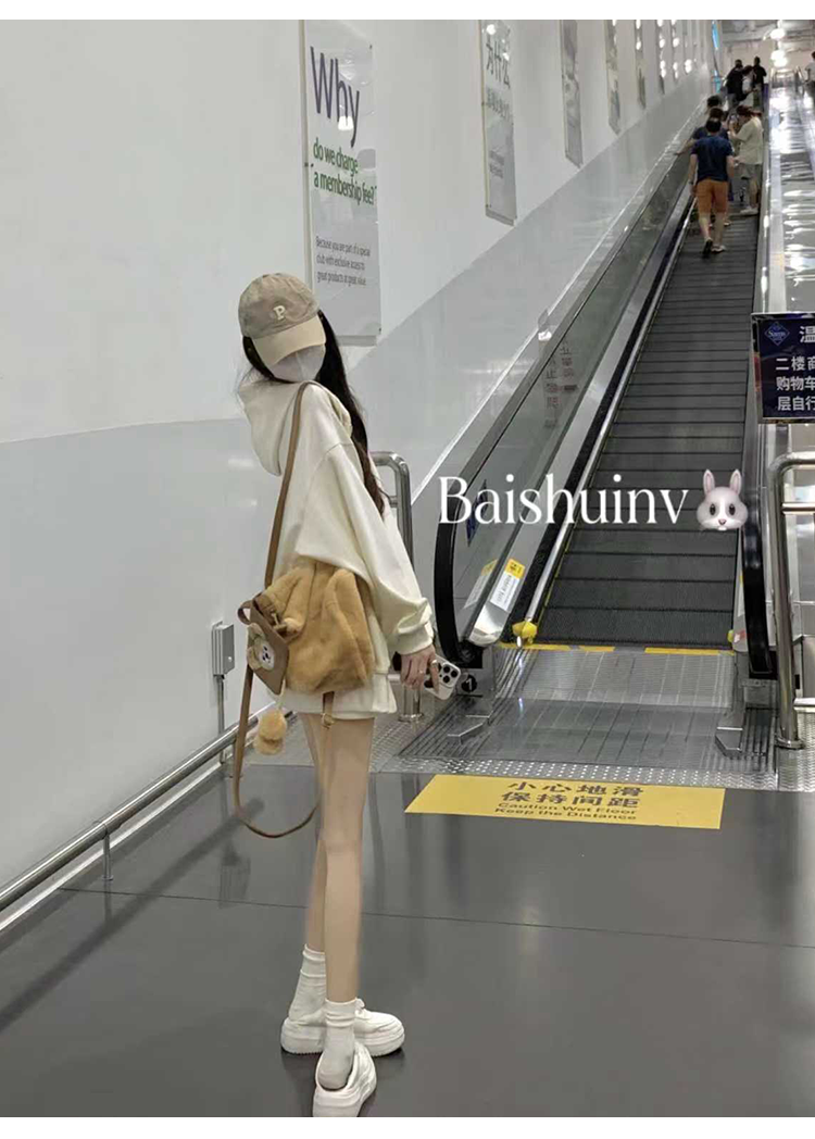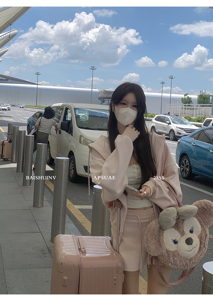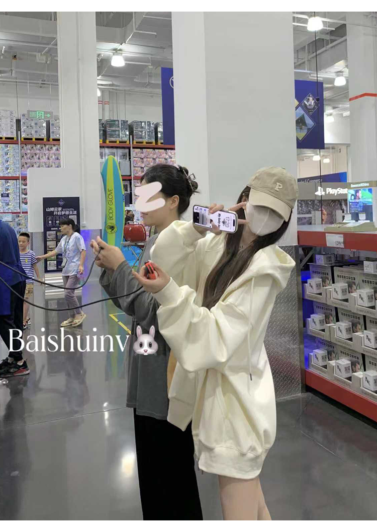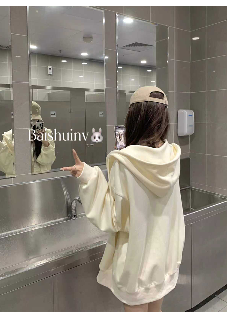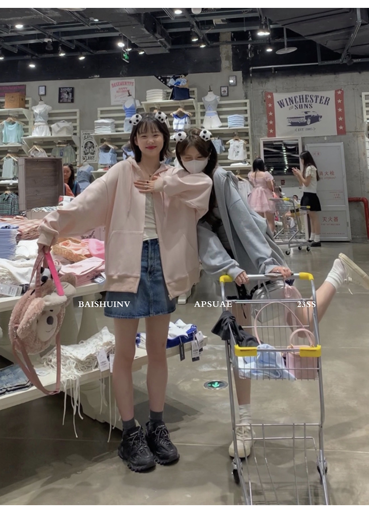 白水女【粉粉蜜桃套裝~】粉色衛衣女秋裝新款慵懶風連帽外套上衣