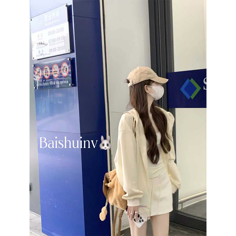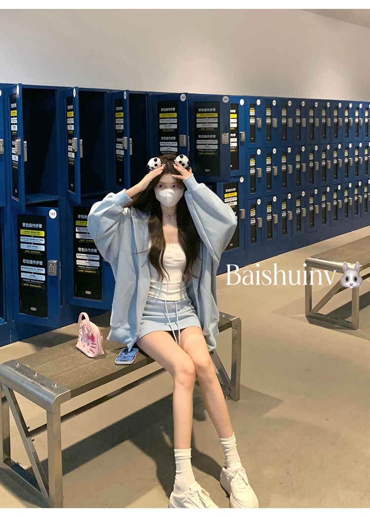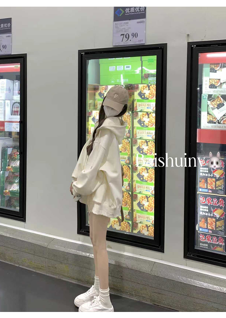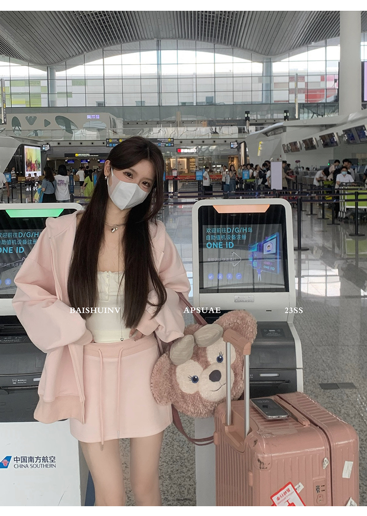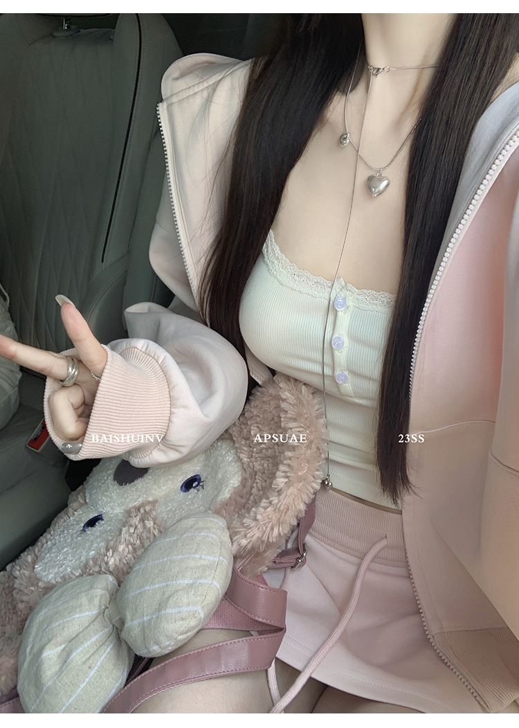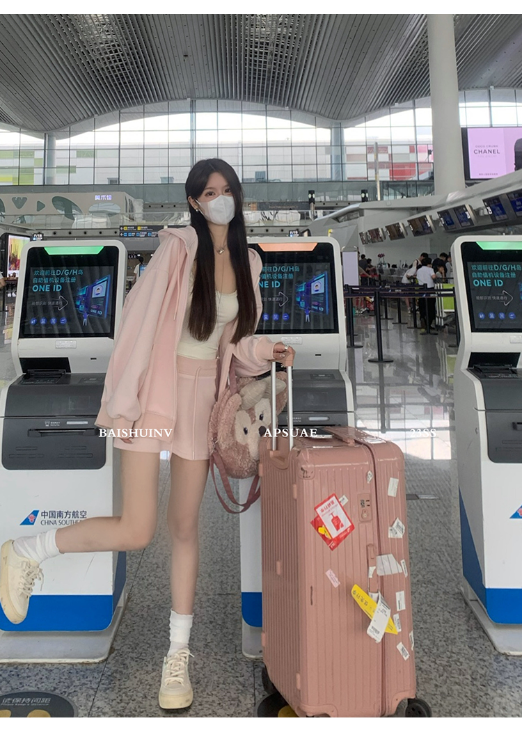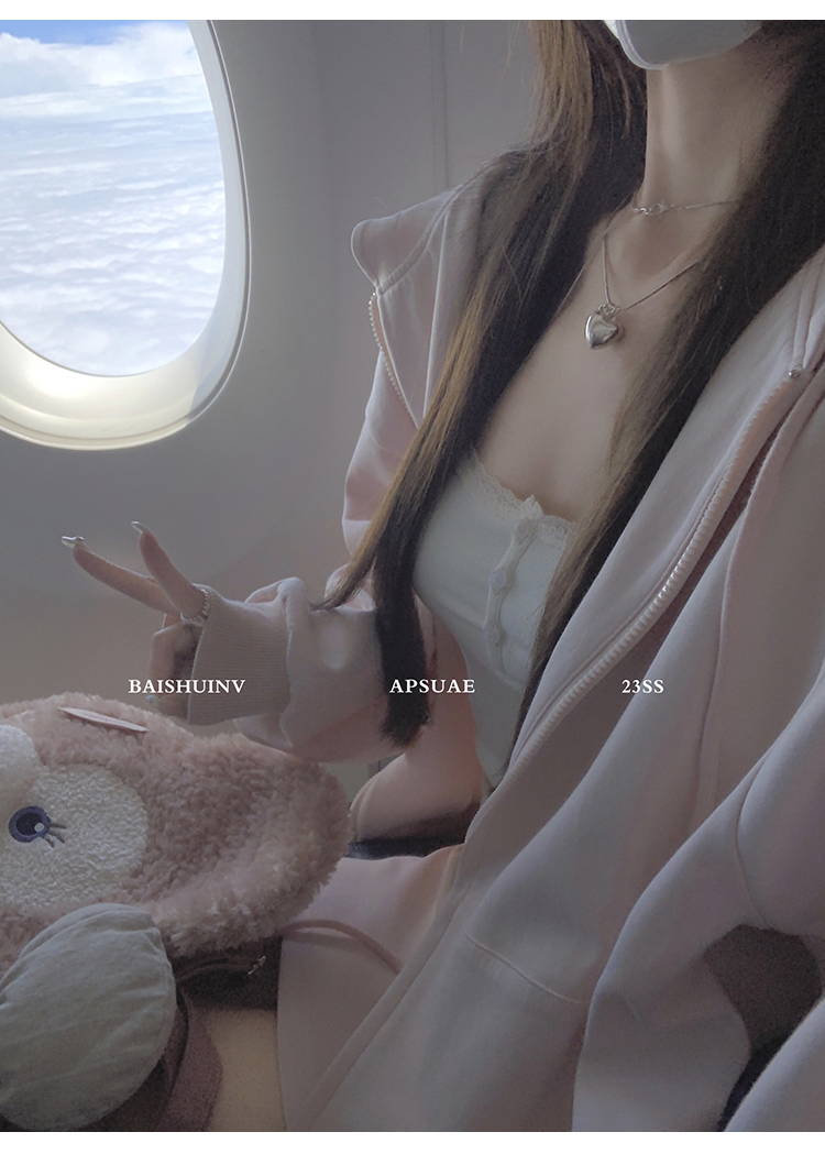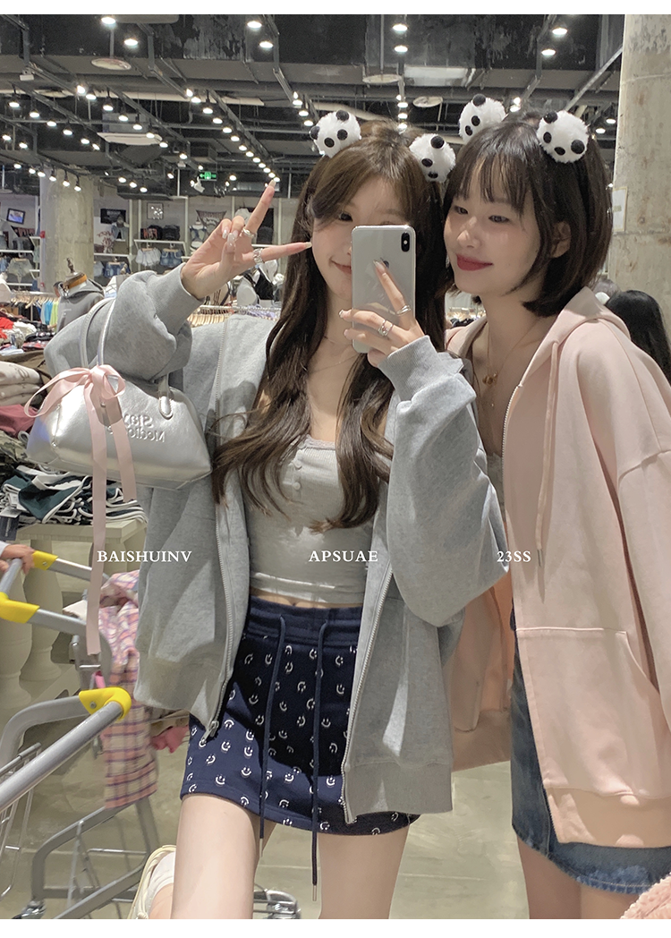 白水女【粉粉蜜桃套裝~】粉色衛衣女秋裝新款慵懶風連帽外套上衣