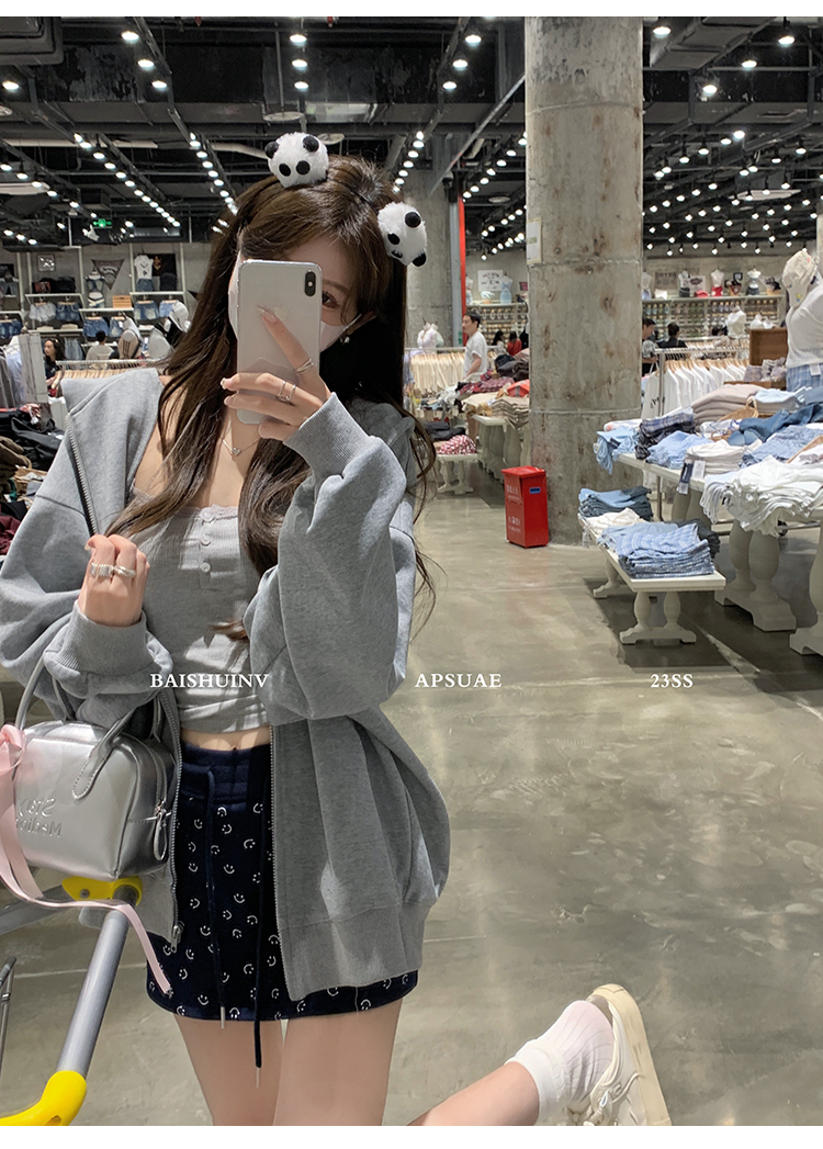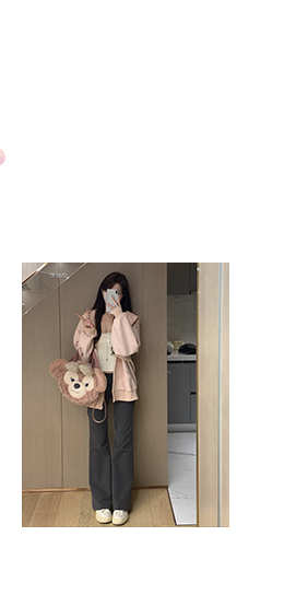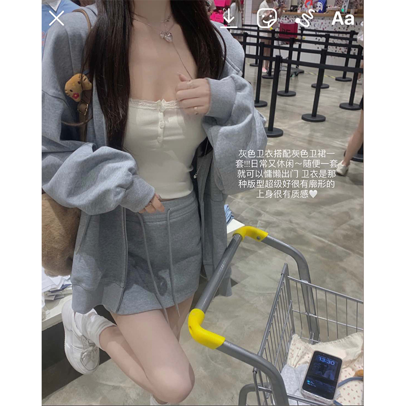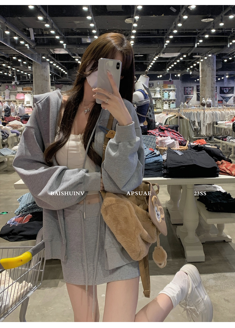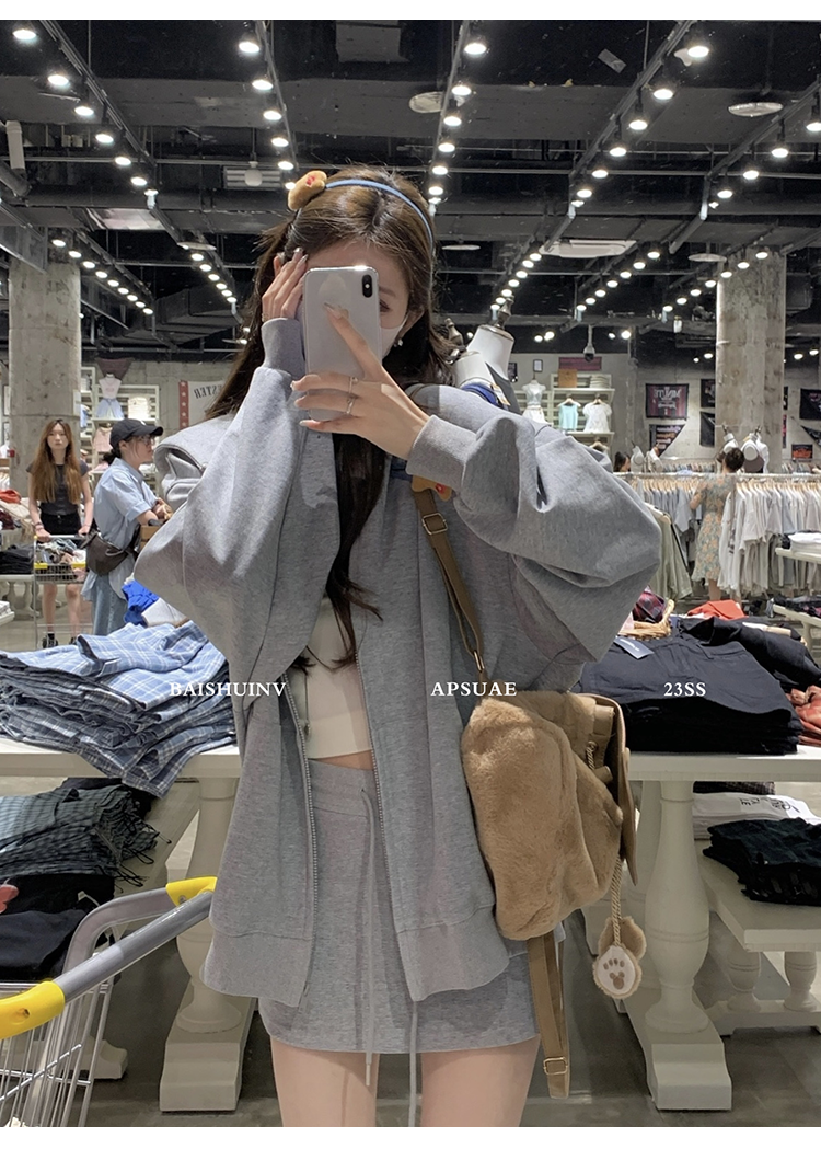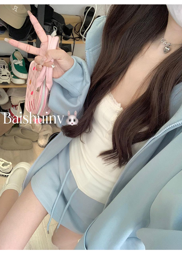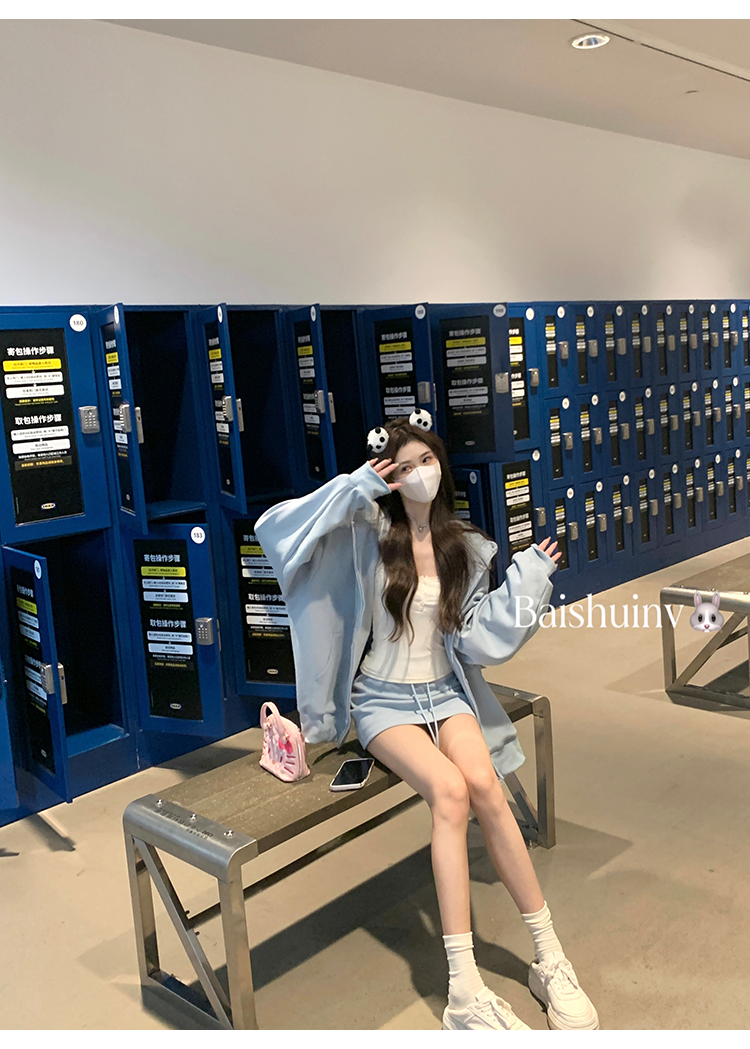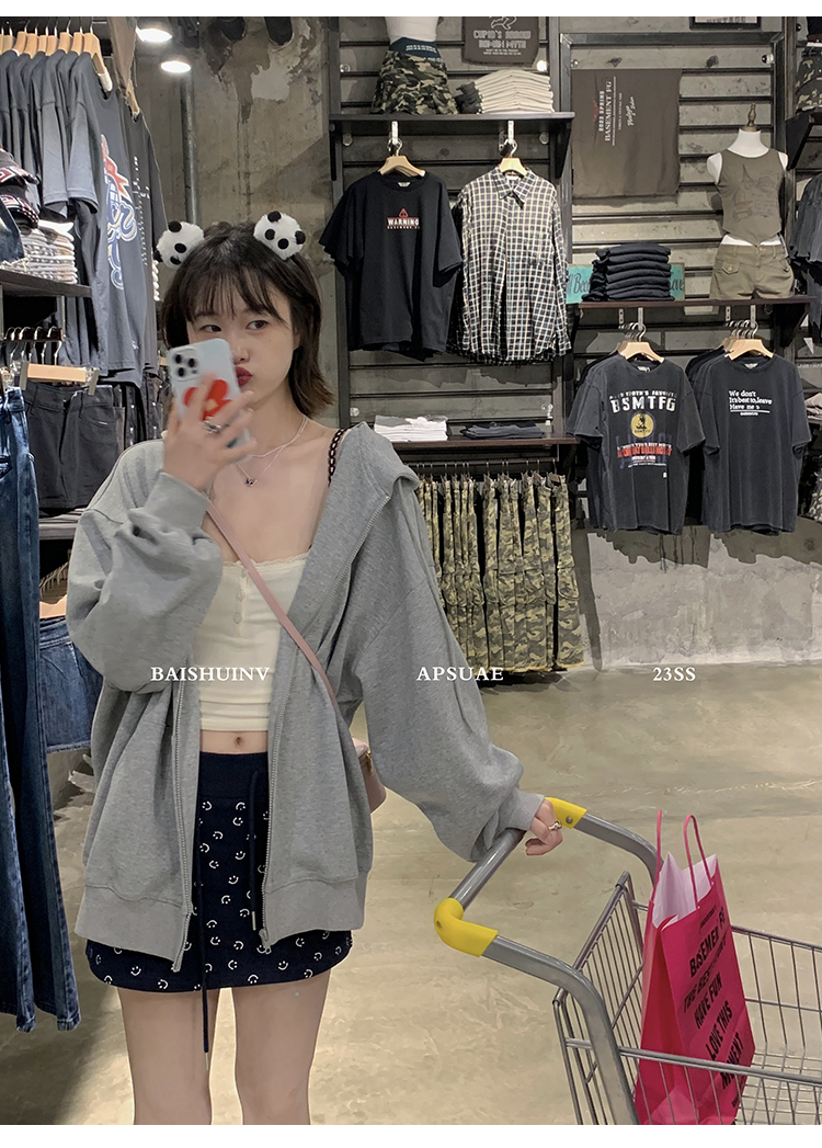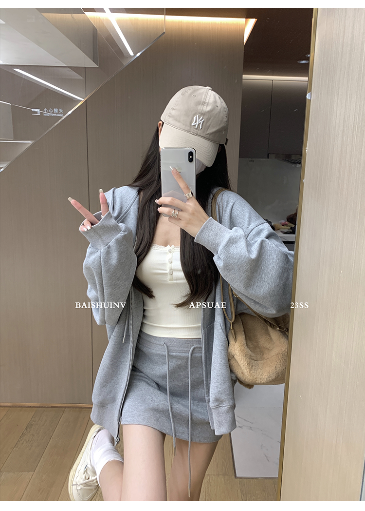 白水女【粉粉蜜桃套裝~】粉色衛衣女秋裝新款慵懶風連帽外套上衣