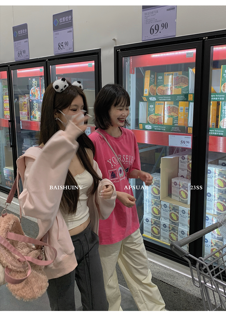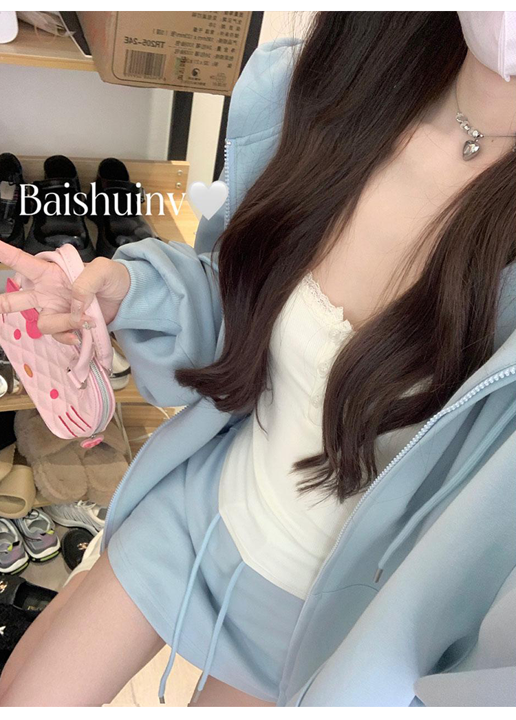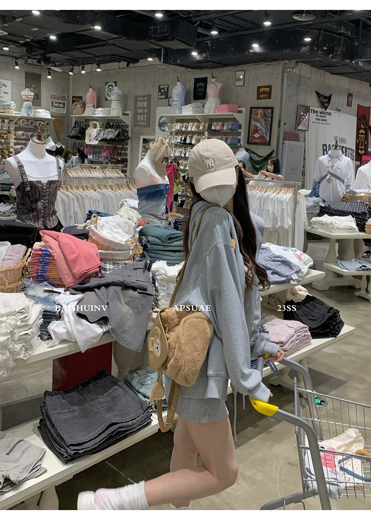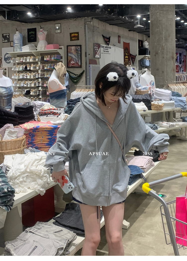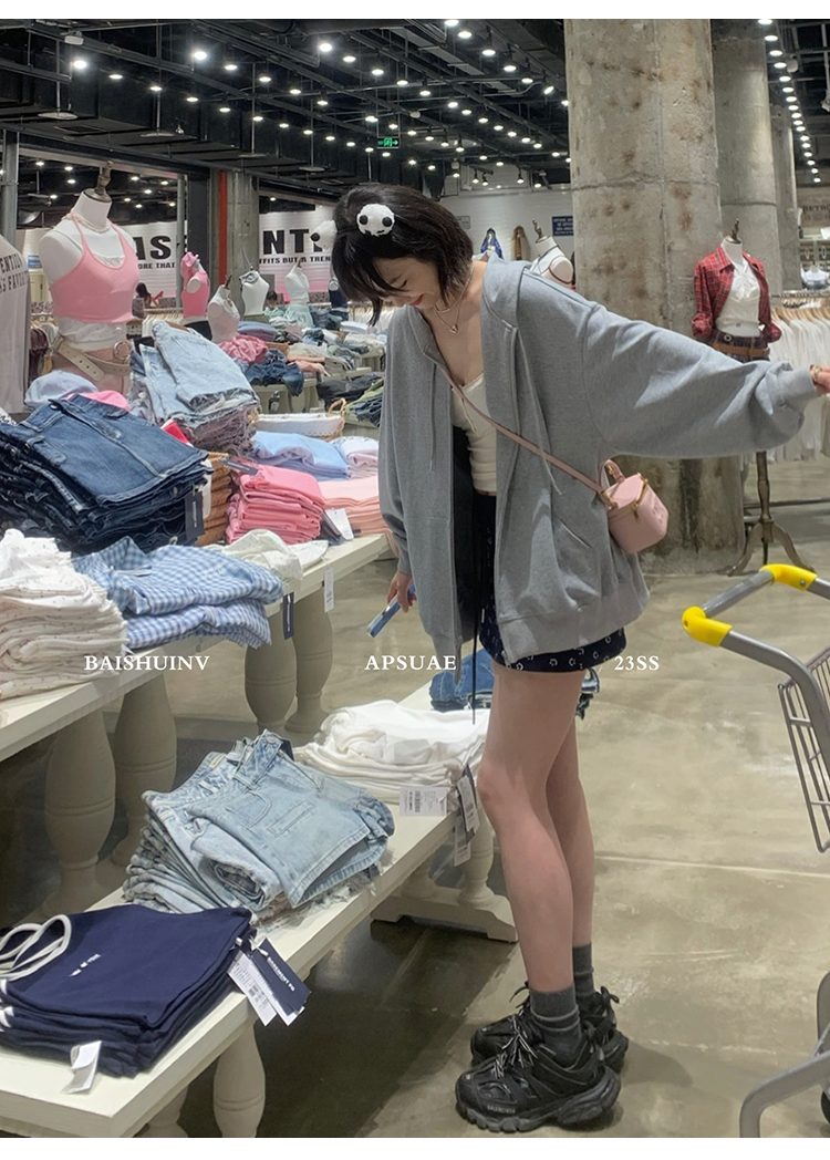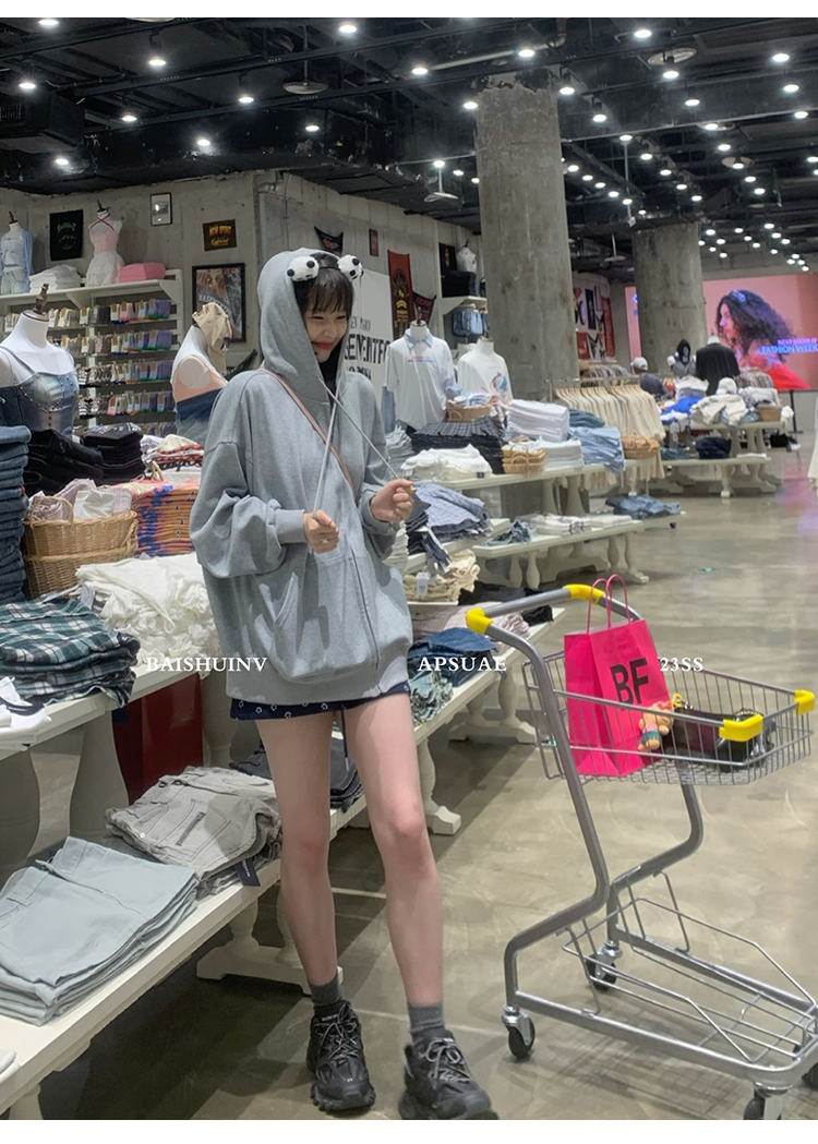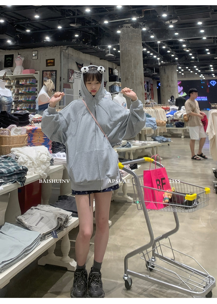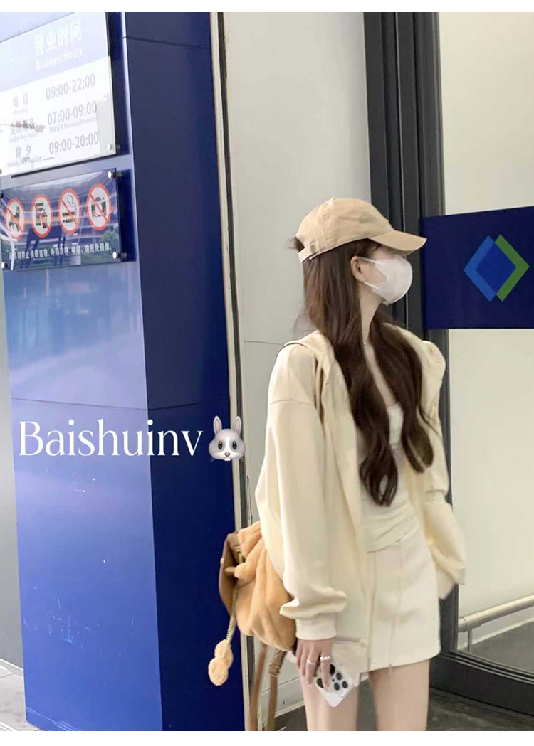 白水女【粉粉蜜桃套裝~】粉色衛衣女秋裝新款慵懶風連帽外套上衣