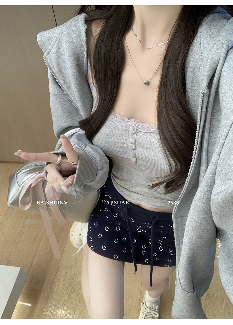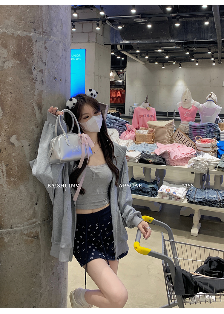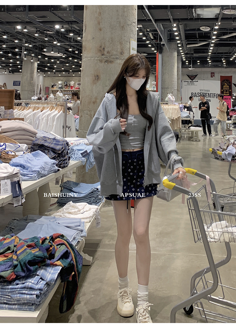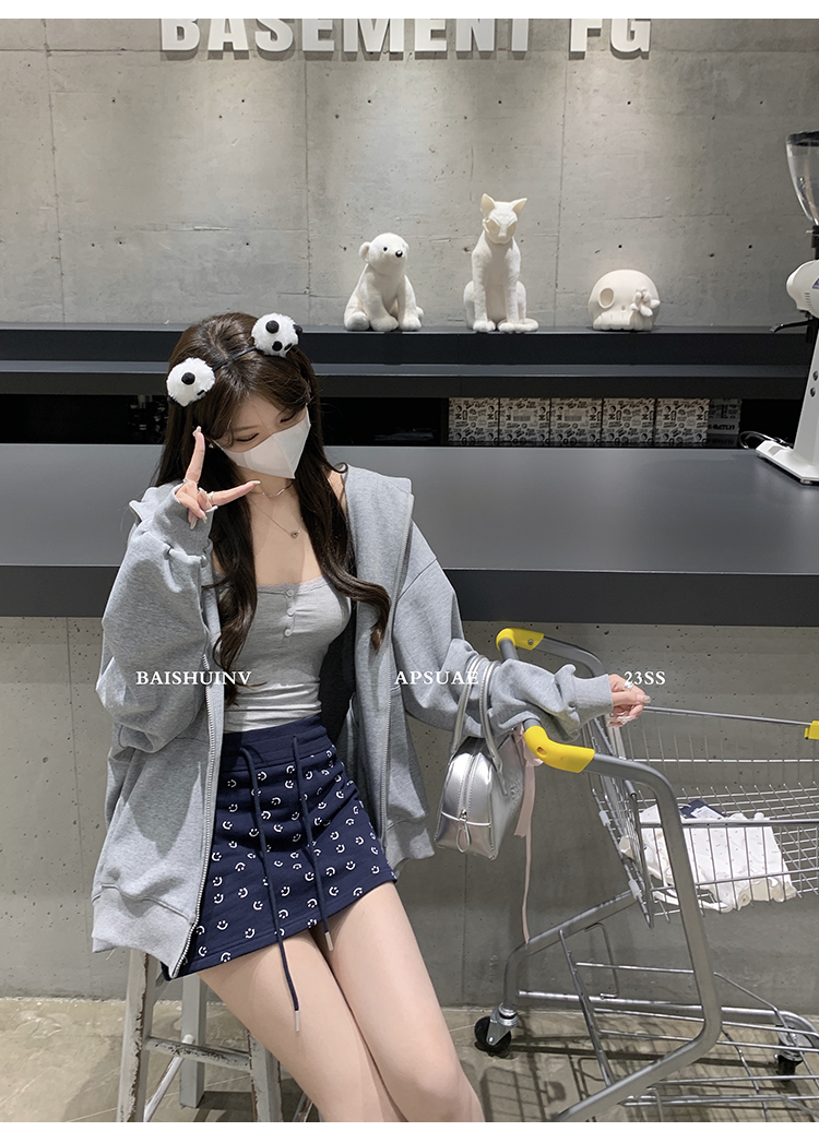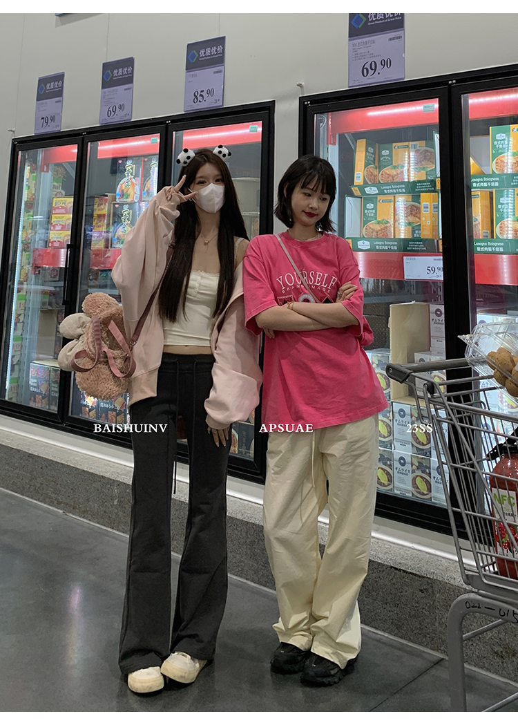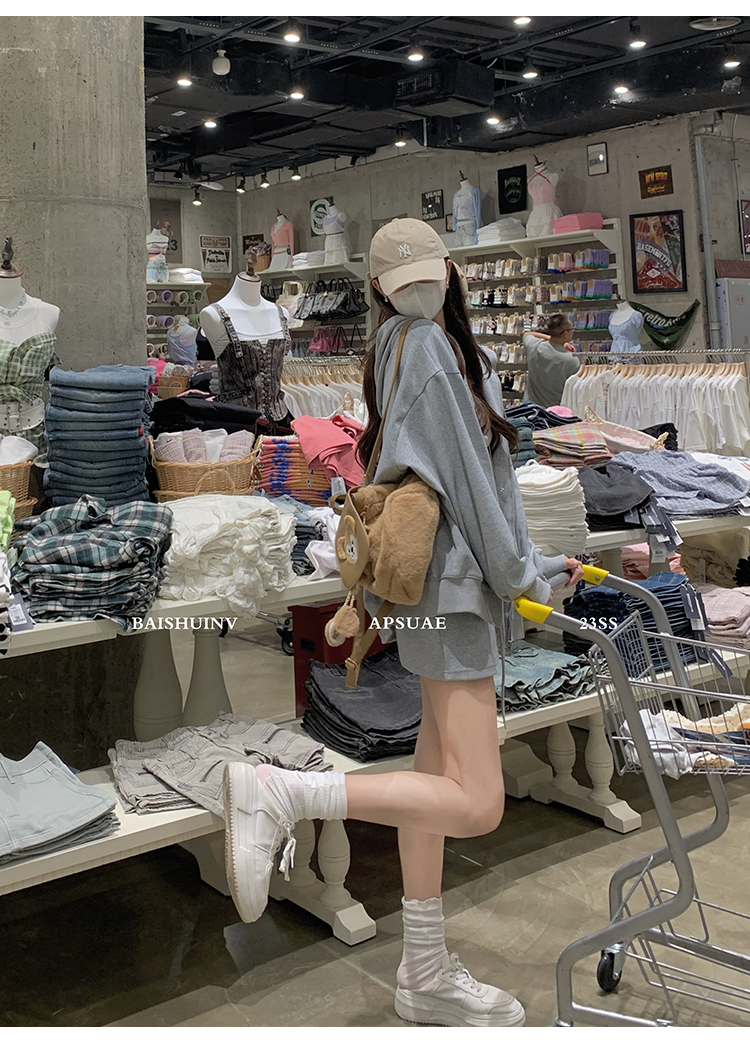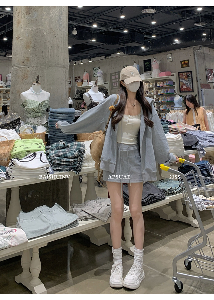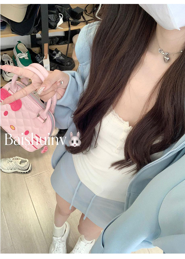 白水女【粉粉蜜桃套裝~】粉色衛衣女秋裝新款慵懶風連帽外套上衣