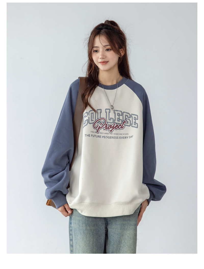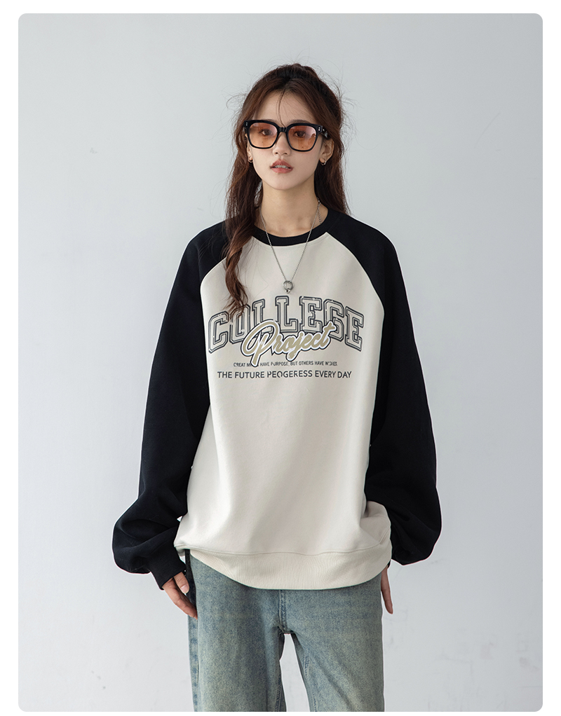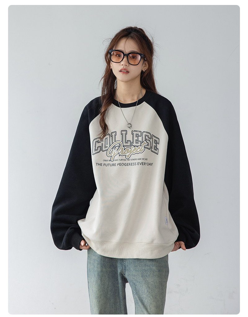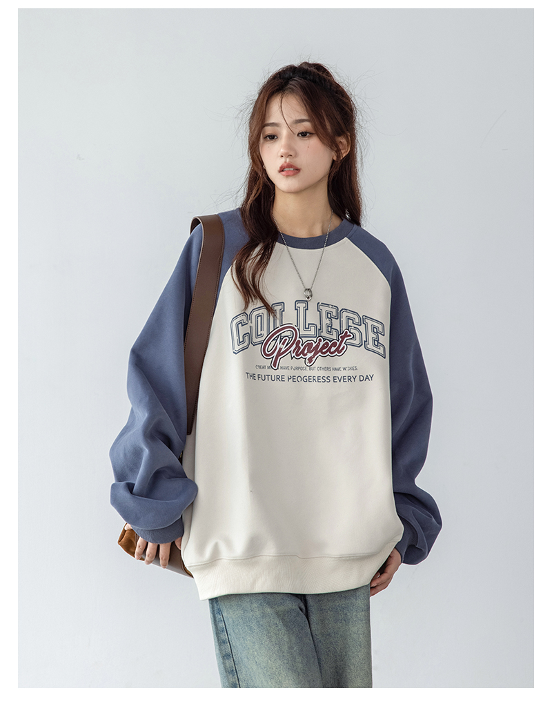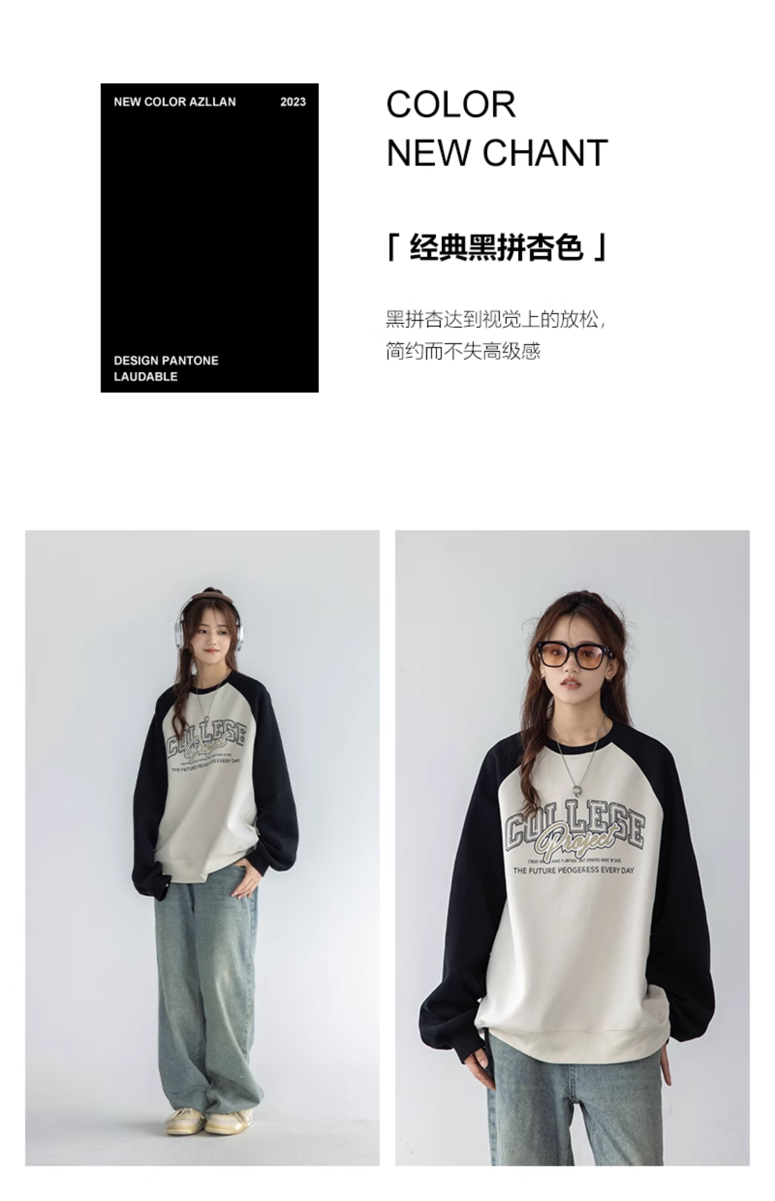 AzLan重磅380G美式復古插肩袖衛衣女春秋款寬鬆休閒圓領長袖上衣