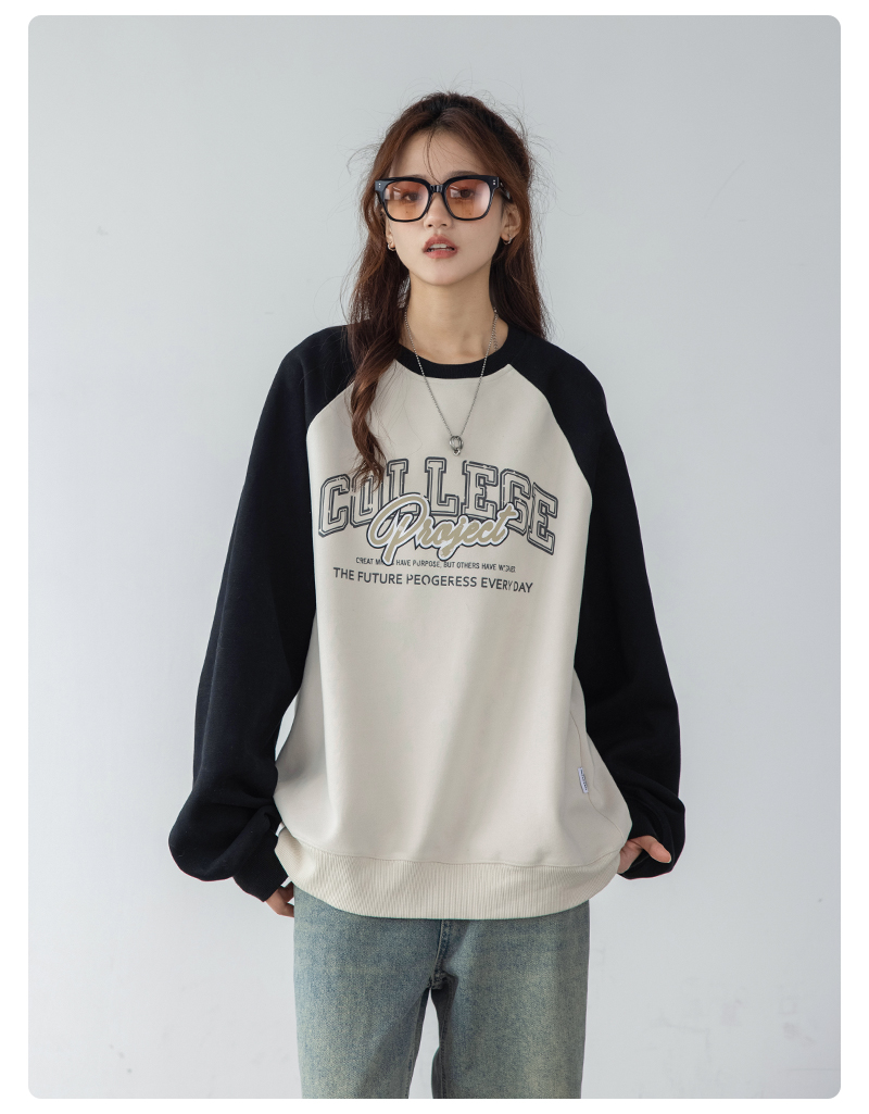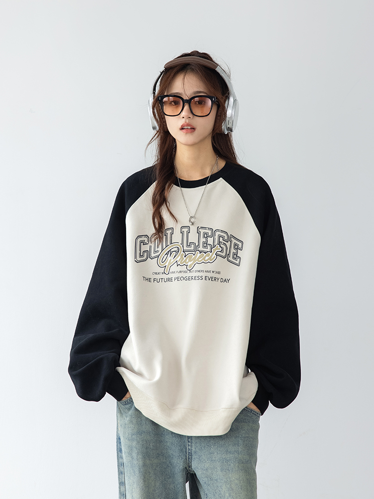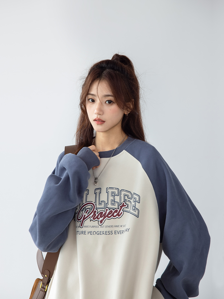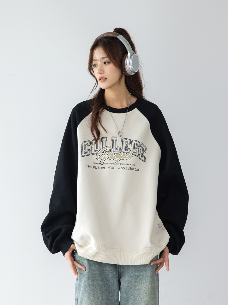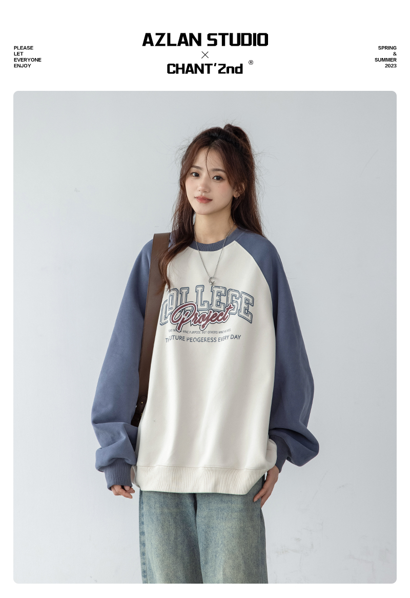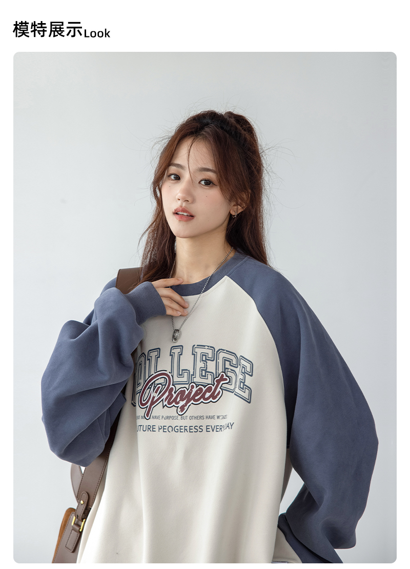 AzLan重磅380G美式復古插肩袖衛衣女春秋款寬鬆休閒圓領長袖上衣
