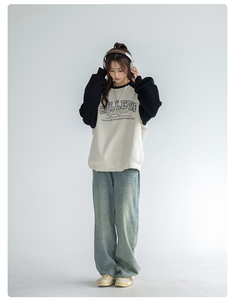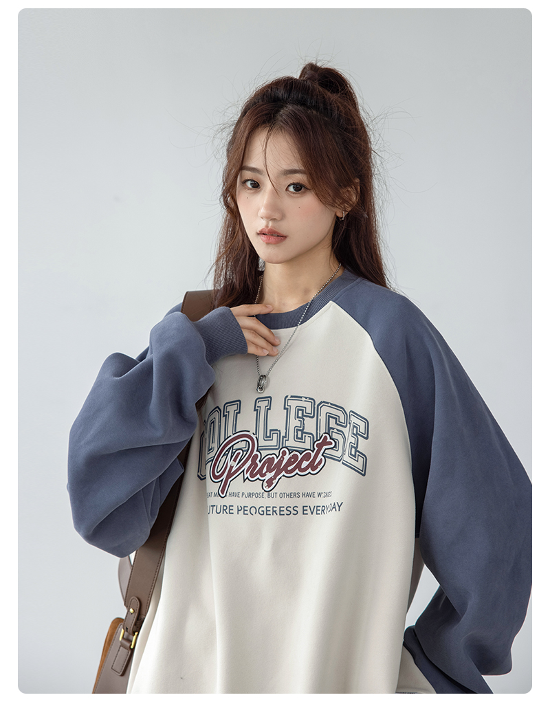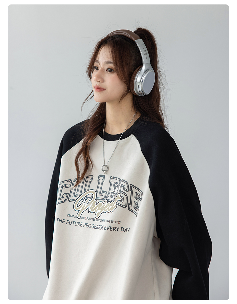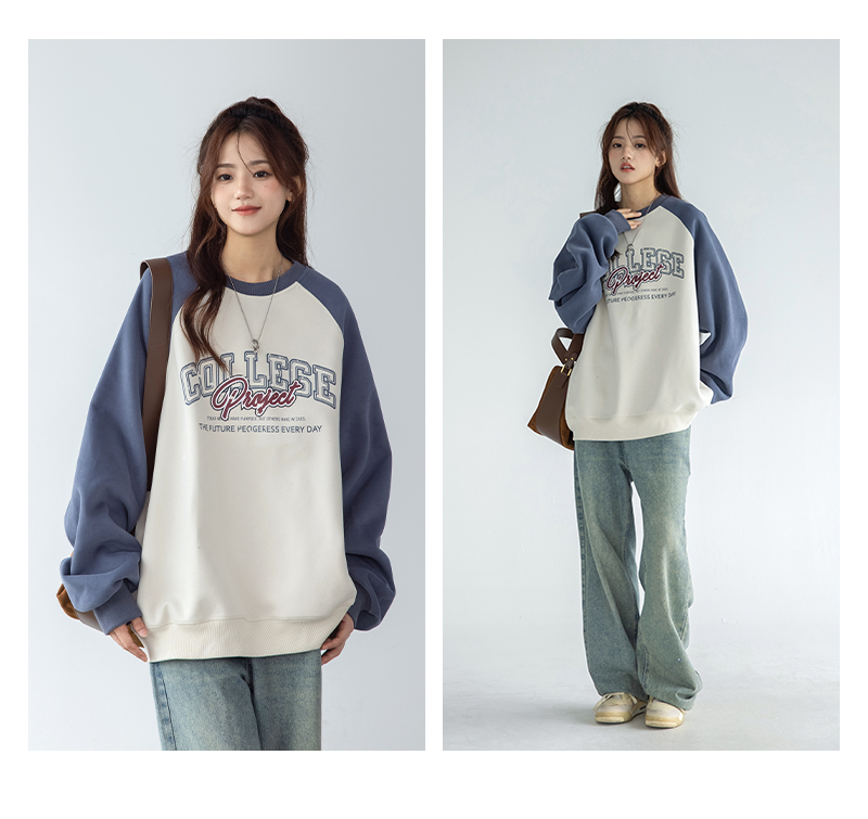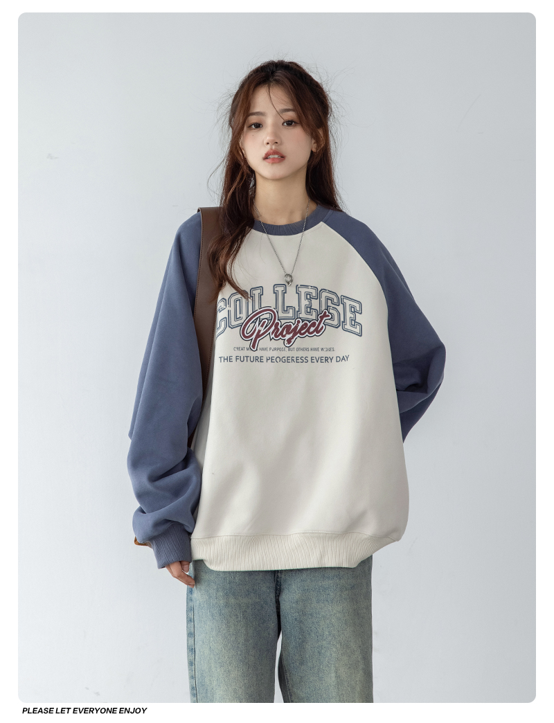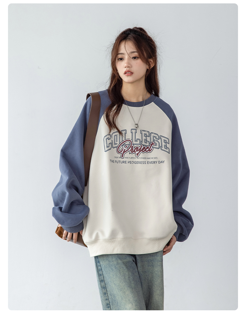 AzLan重磅380G美式復古插肩袖衛衣女春秋款寬鬆休閒圓領長袖上衣