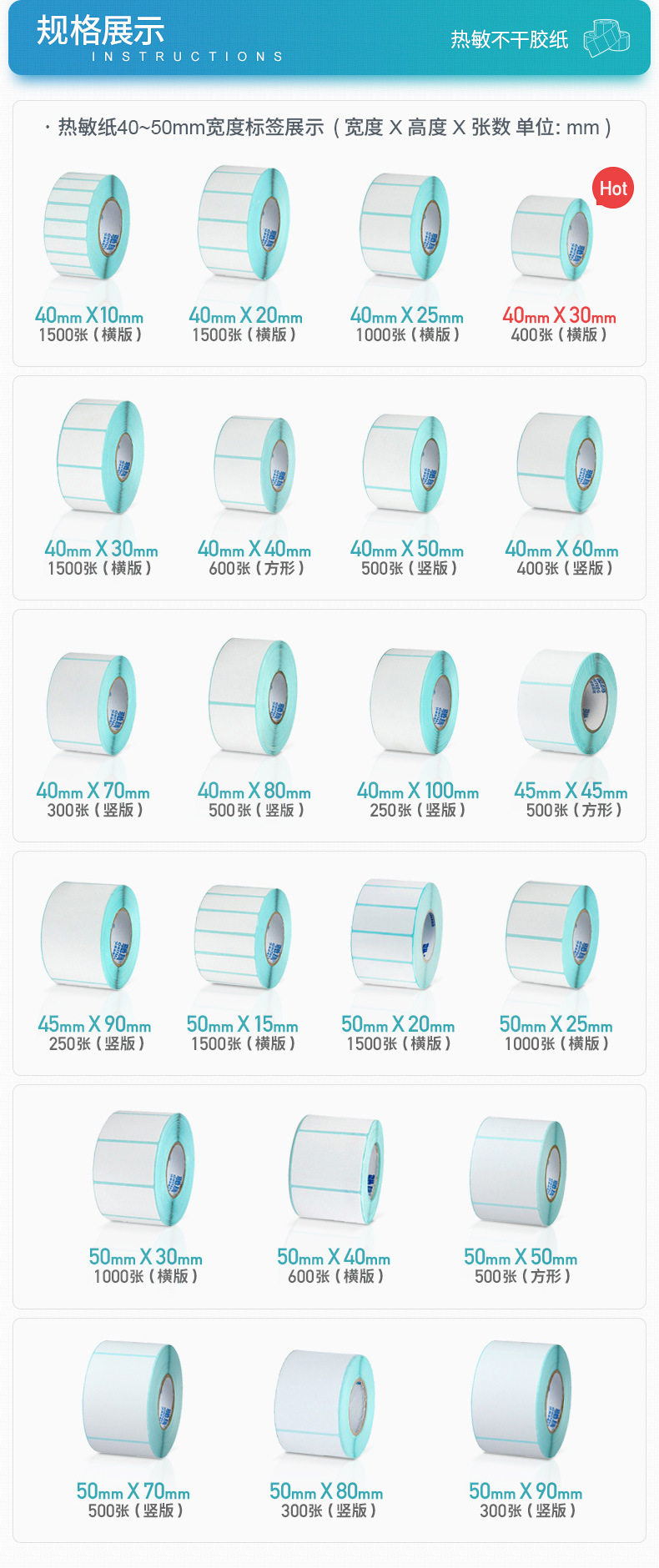 热敏纸40到50宽标贴纸 不干胶标签纸打印条码纸空白热敏价格贴纸