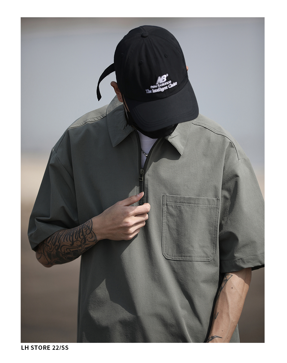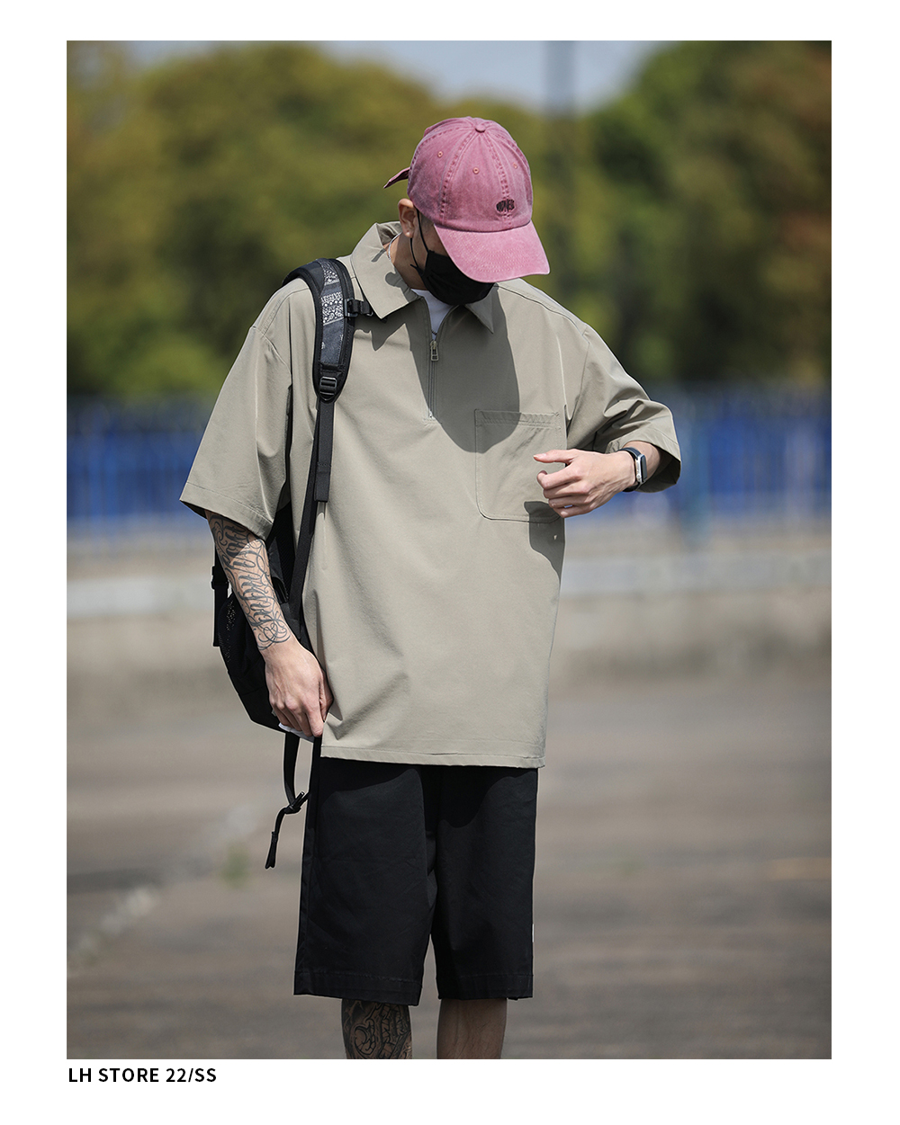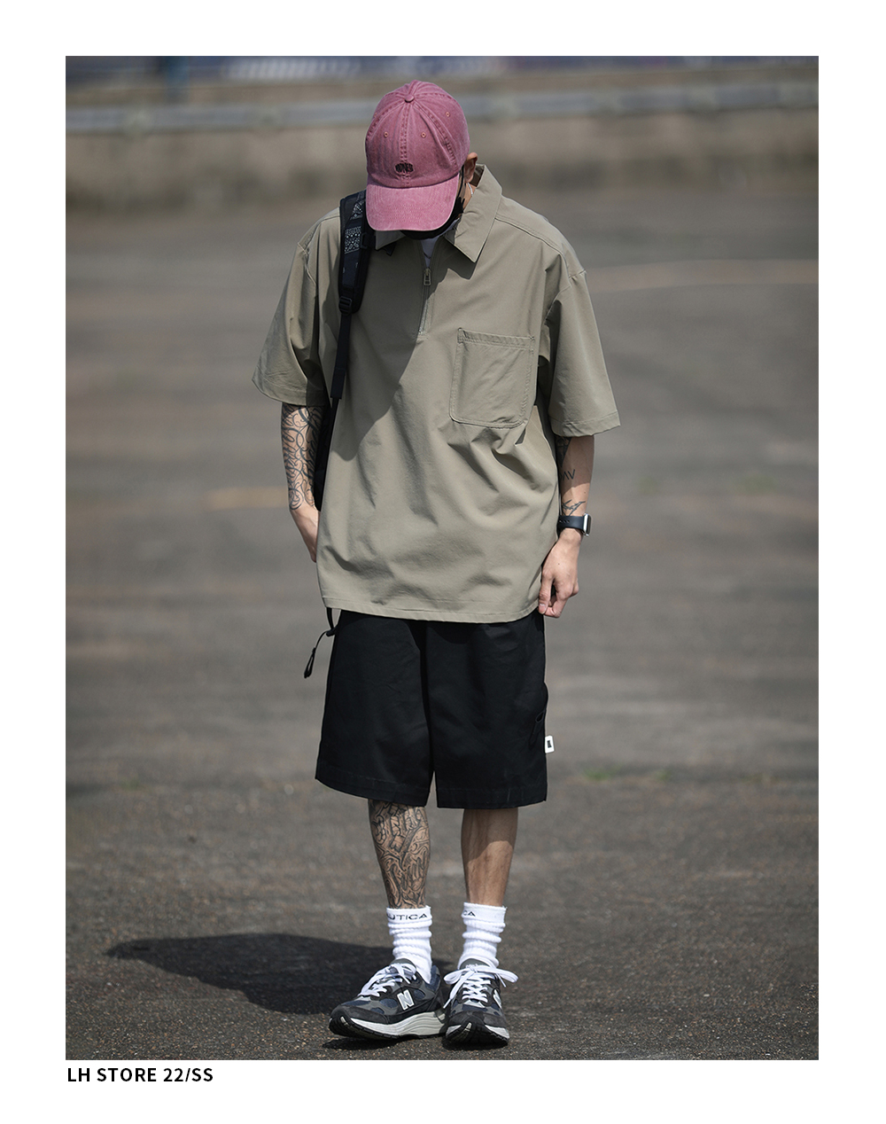 LH store2023SS日系戶外機能風短袖襯衫速乾抗皺舒適半拉鍊polo衫