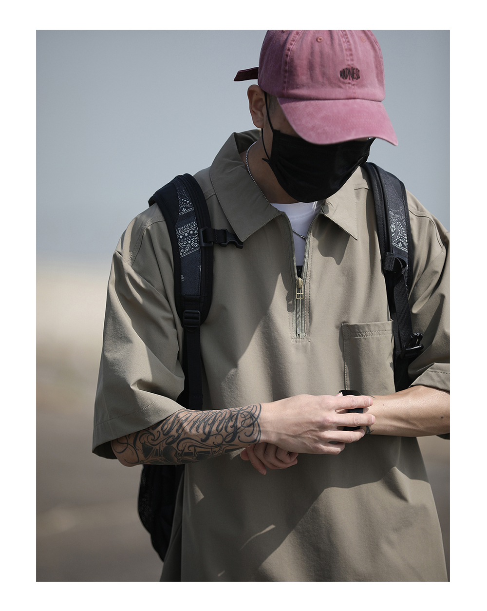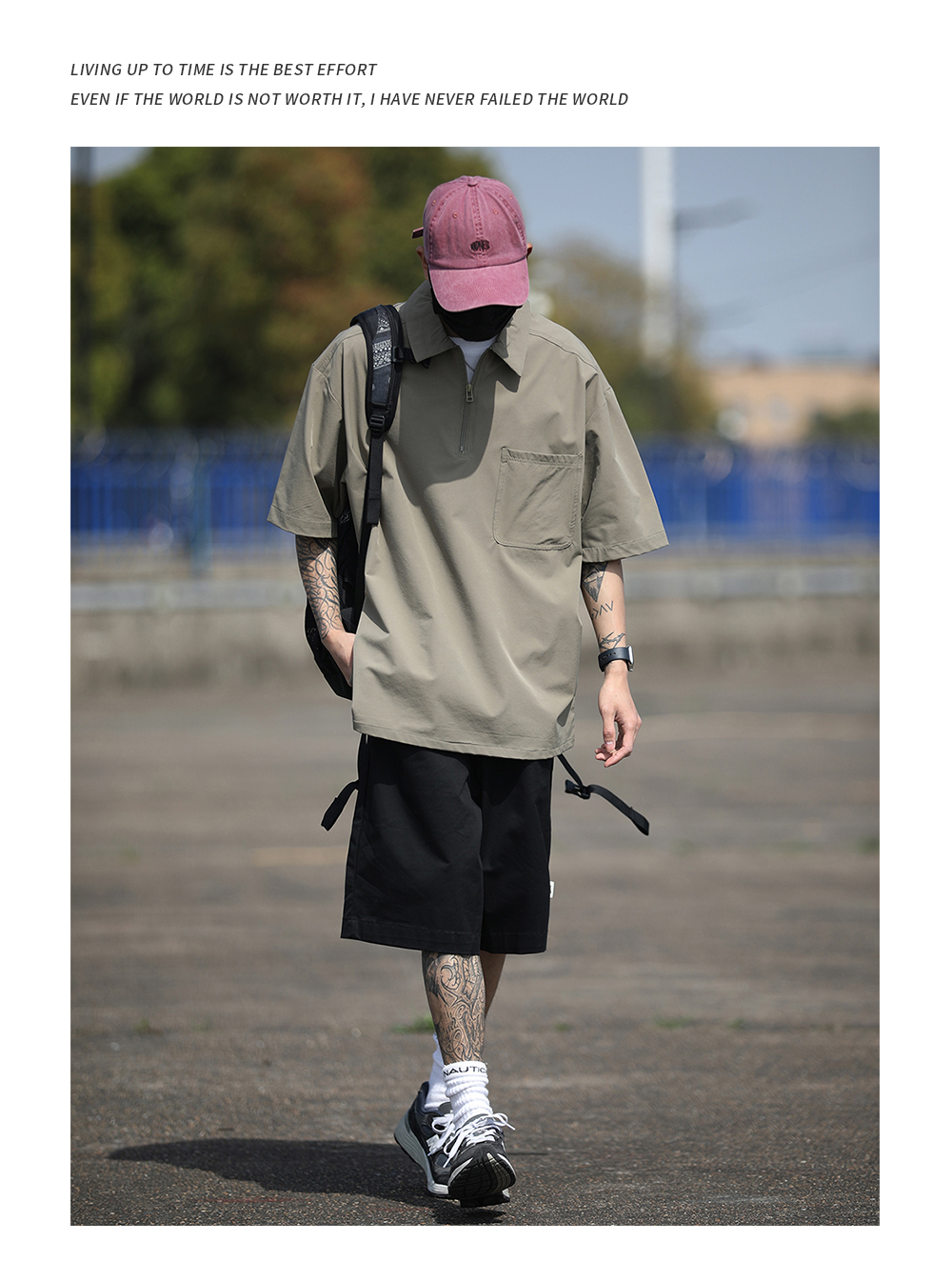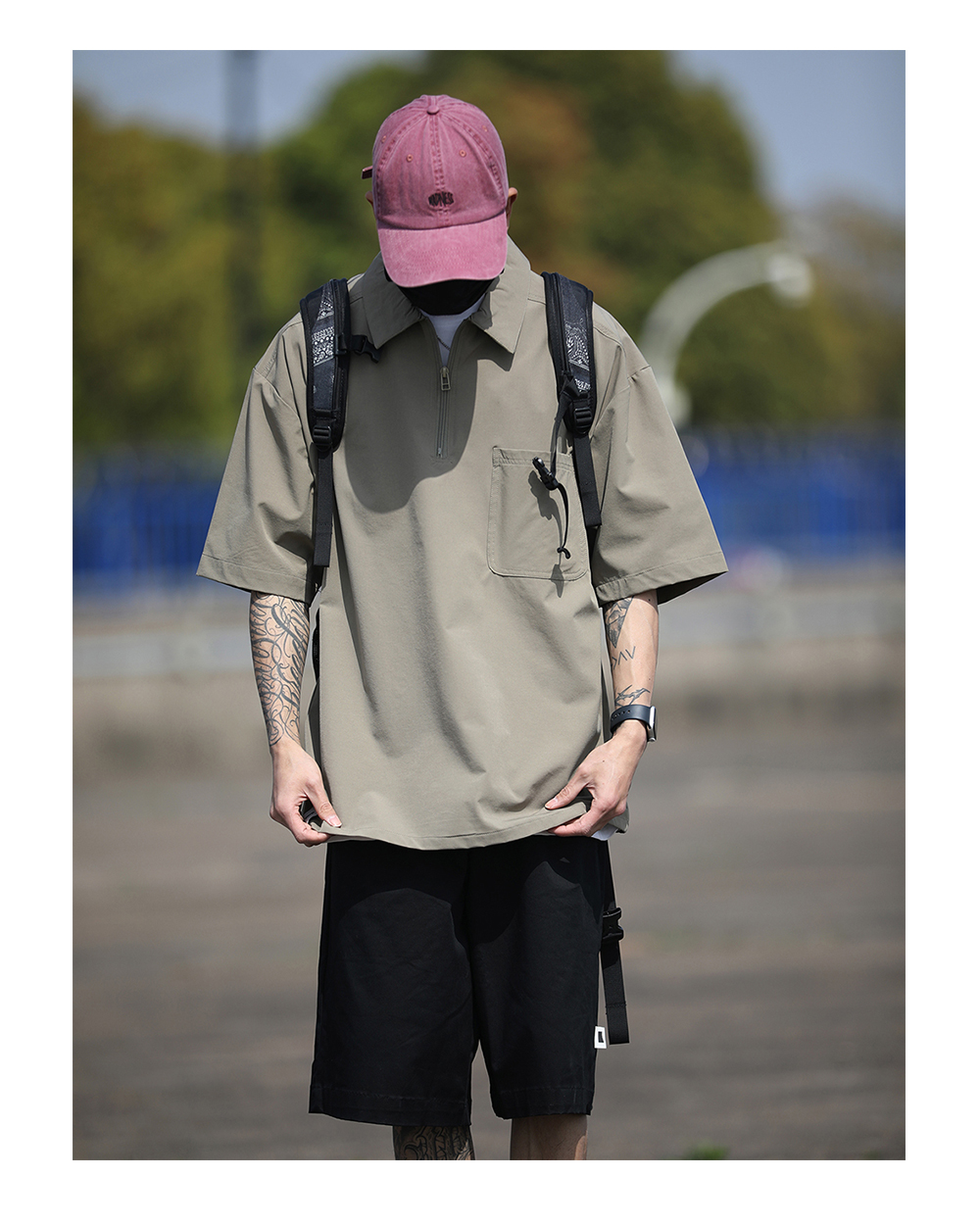 LH store2023SS日系戶外機能風短袖襯衫速乾抗皺舒適半拉鍊polo衫